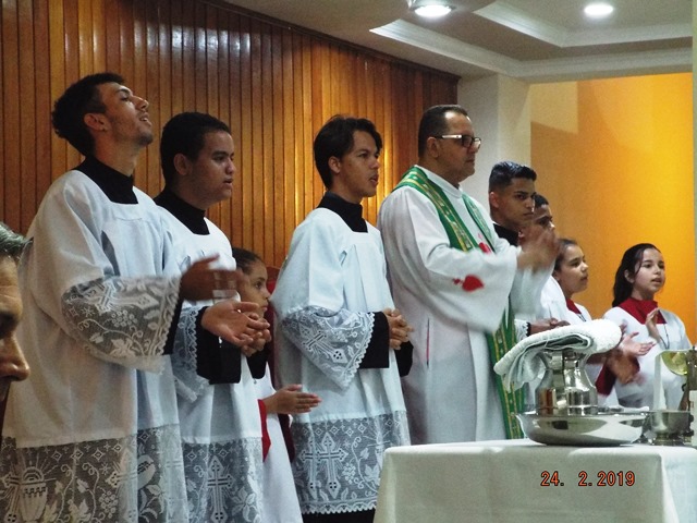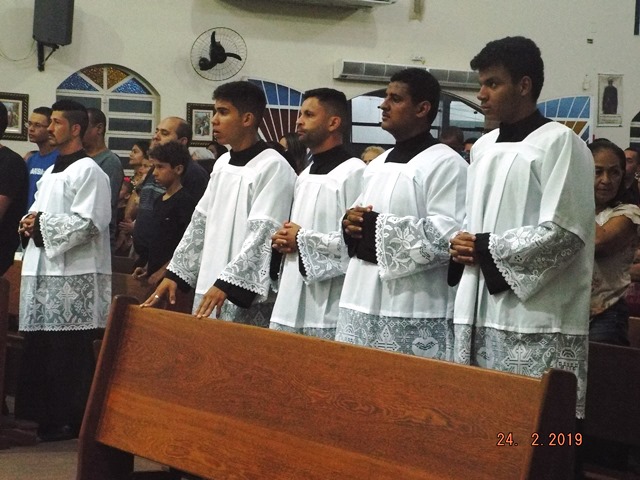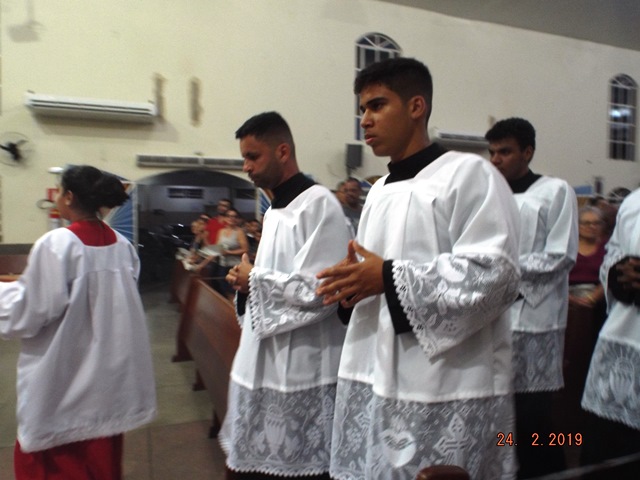 Em missas presidas pelos padres Hideraldo e Sérgio o ministério de acólitos da paróquia São Geraldo celebrou seus 2 anos de instituição no dia 25 de fevereiro de 2019.