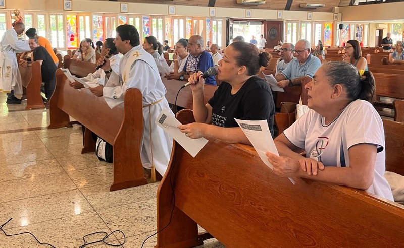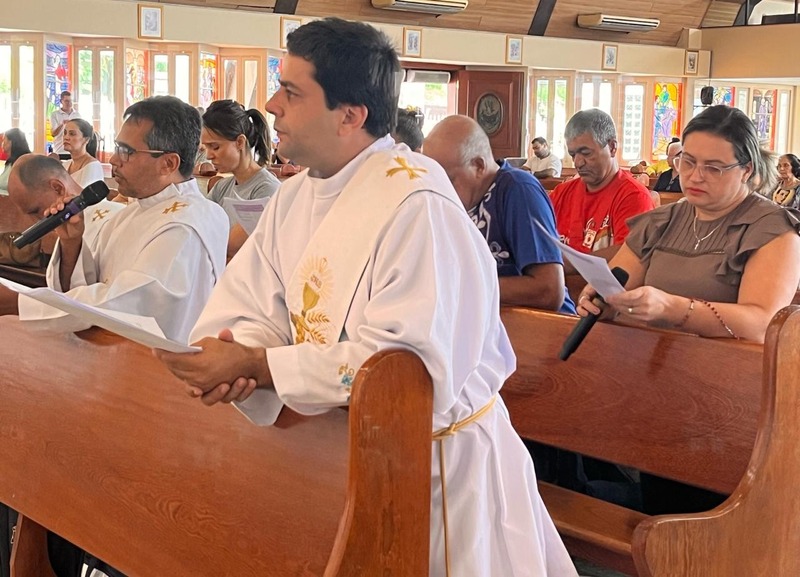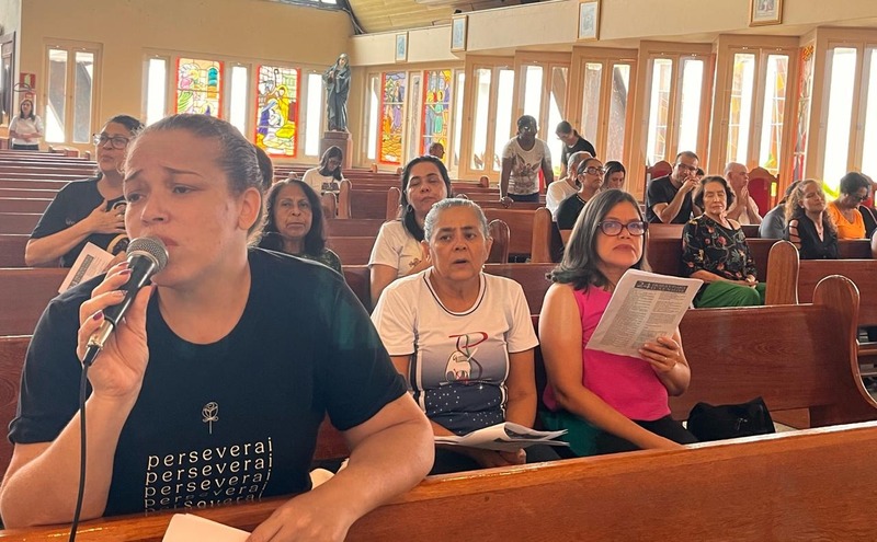 O momento da adoração iniciou-se com a mensagem que o Papa Leão XIV fez à Igreja no mundo inteiro: “A Quaresma é o tempo em que a Igreja com solicitude maternal, nos convida a recolocar o mistério de Deus no centro da nossa vida, para que a nossa fé ganhe novo impulso e o coração não se perca entre as inquietações e as distrações do cotidiano”.