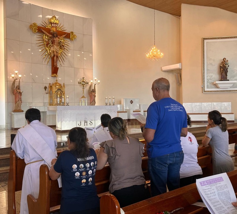 A Adoração ao Santíssimo Sacramento foi conduzido pelos Diáconos Henrique Armstrong Carvalho Rodrigues e Diácono Márcio Rogério Vieira Honorato, ambos da Paróquia São Geraldo Magela e Diácono Flávio Pena Pereira da Paróquia Cristo Libertador.