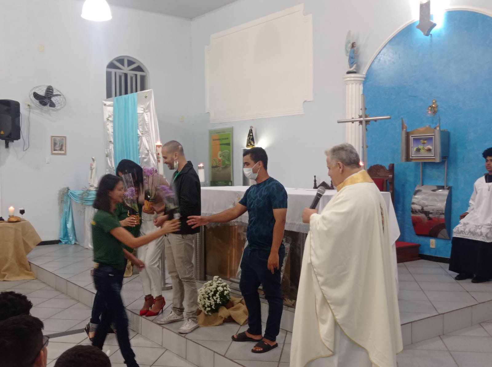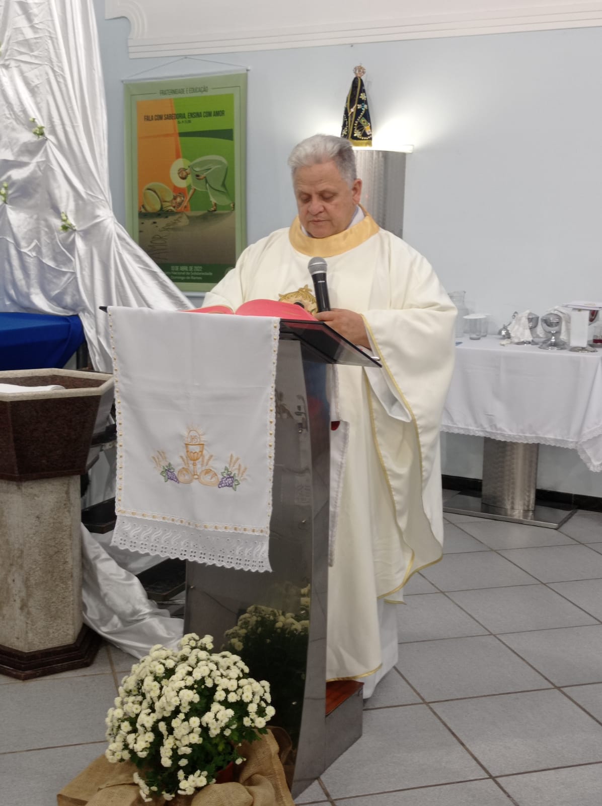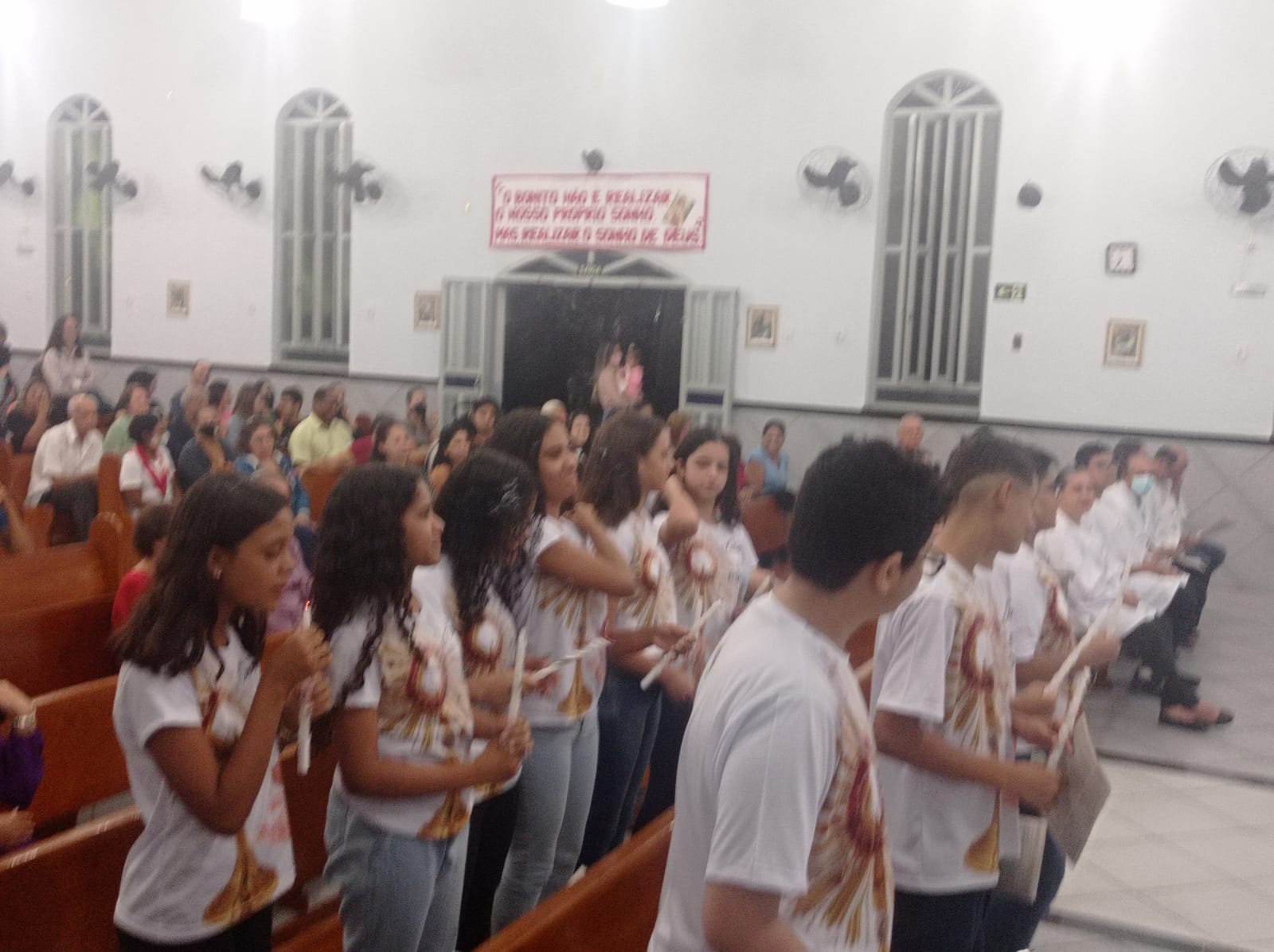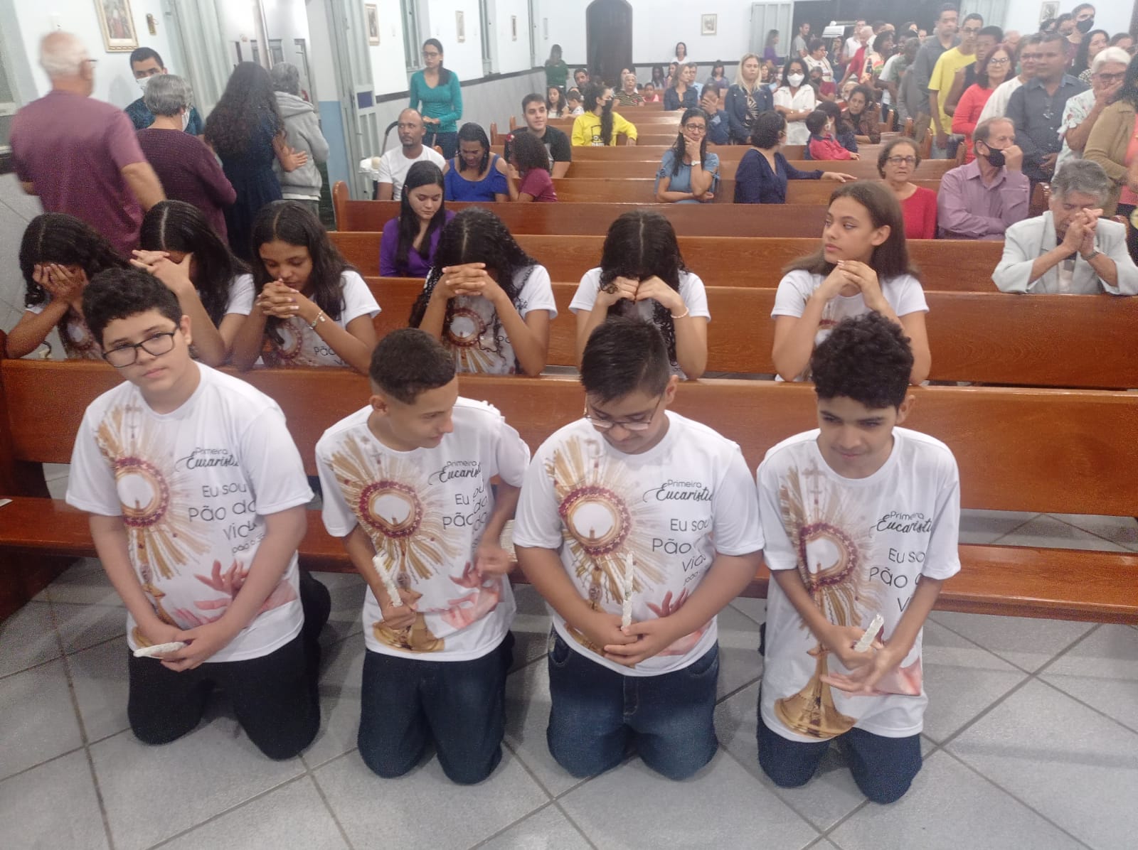 Em seguida, às 18h, o nosso pároco Padre Aloísio Vieira presidiu a Missa da Primeira Eucaristia dos catequizandos da Comunidade Nossa Senhora Aparecida.