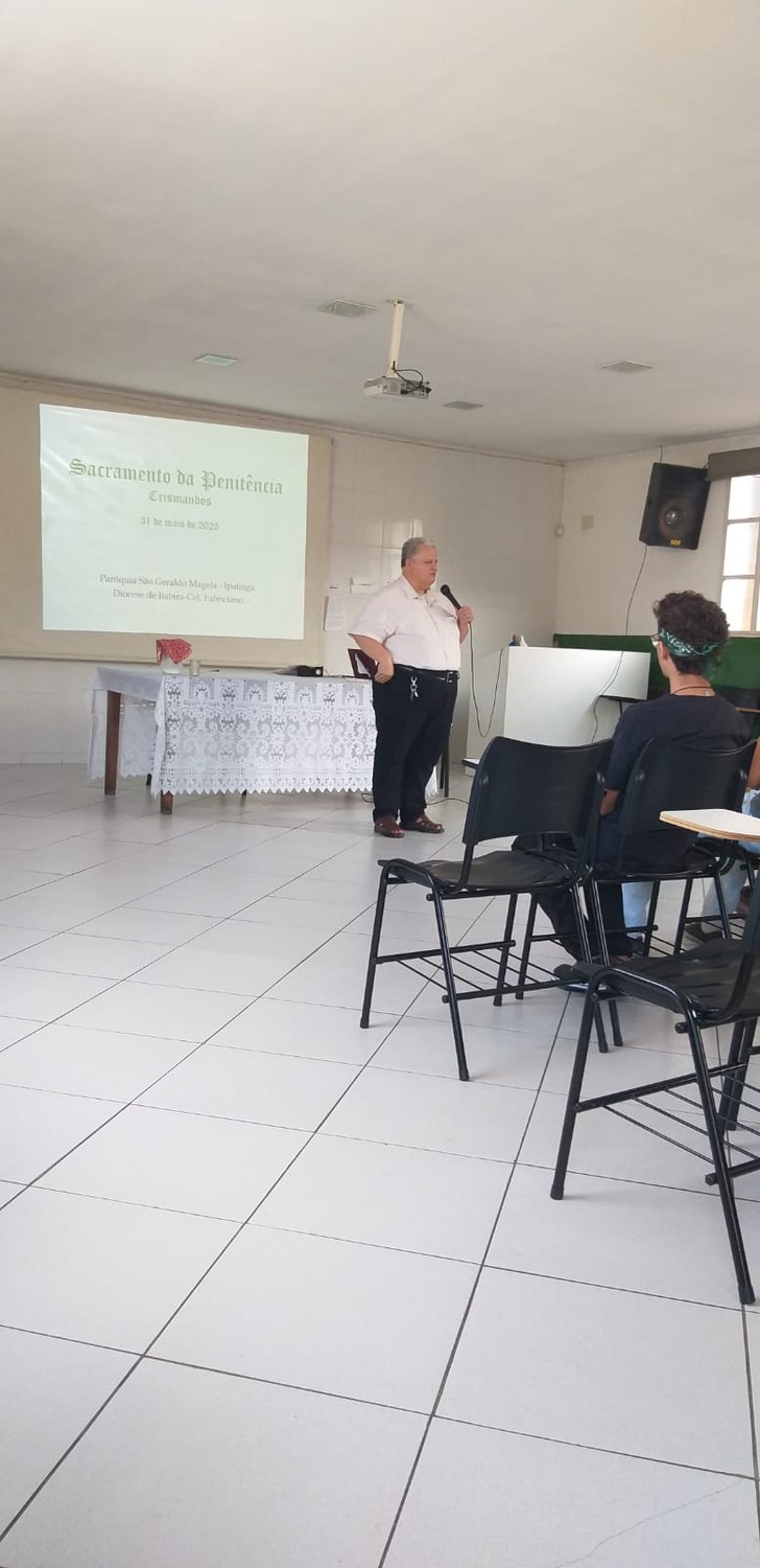 No dia 31 de maio de 2025 às 14h no Centro Pastoral João Paulo II os crismandos da paróquia São Geraldo Magela participaram do encontro sobre Sacramento da Penitência ministrado pelo Pároco Pe. Aloísio Vieira, entre as suas primeiras falas destacou que somos imagem e semelhança de Deus, falou sobre a importância de cada sacramento em nossas vidas em especial o sacramento da penitência, com uma dinâmica os crismandos foram divididos e refletiram sobre as 5 coisas importantes para uma boa confissão, depois foi feita a exposição de ideias de cada grupo e o encerramento do encontro.