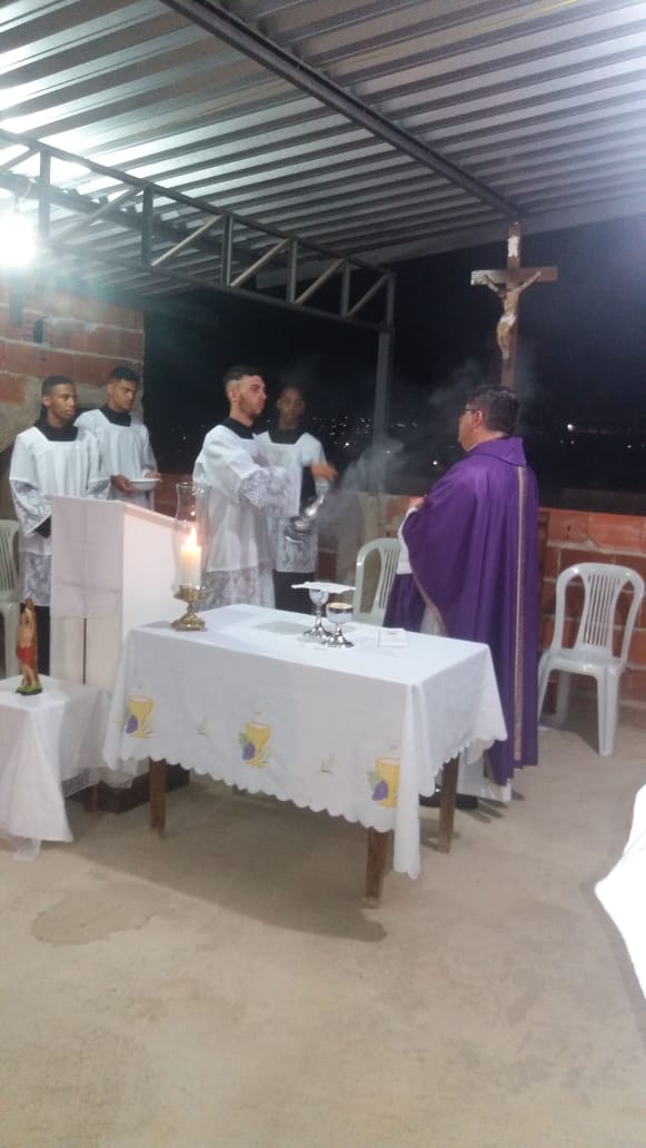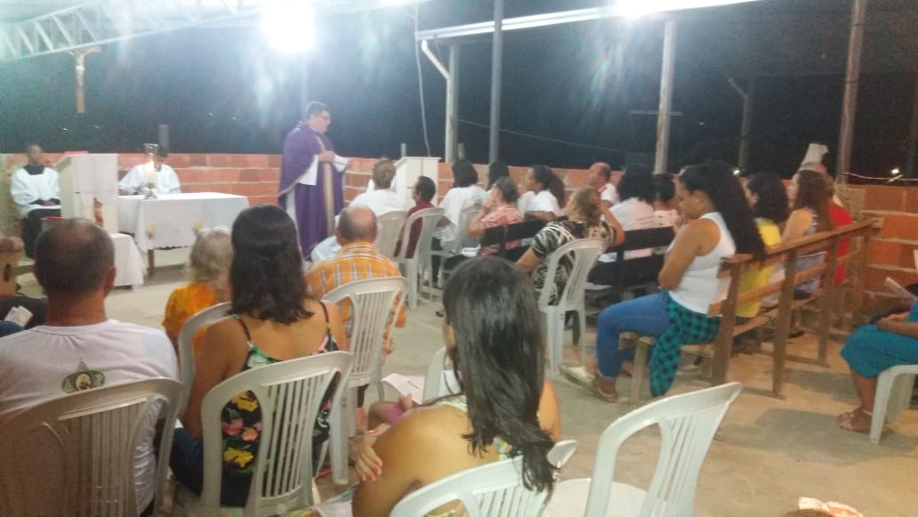 No último sábado dia 06 de abril, aconteceu a Missa em ação de graças pelo 6º aniversário de instituição da Comunidade São Sebastião na rua Estônia- B. Bom Jardim, onde celebram atualmente até a conclusão das obras do templo. Missa presidida pelo Pe. Sérgio Henrique com colaboração da equipe de liturgia da comunidade Nossa Senhora Aparecida. Momento festivo e de agradecimento a Deus por estes seis anos de caminhada e missão. Presença especial de Ana Francisca, mãe do Pe. Sérgio. Após a missa houve barraquinha de galinhada e refrigerante.