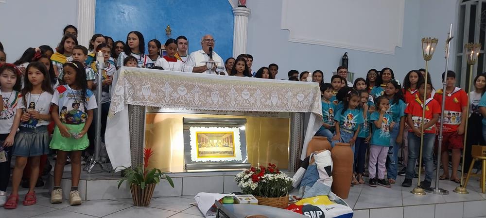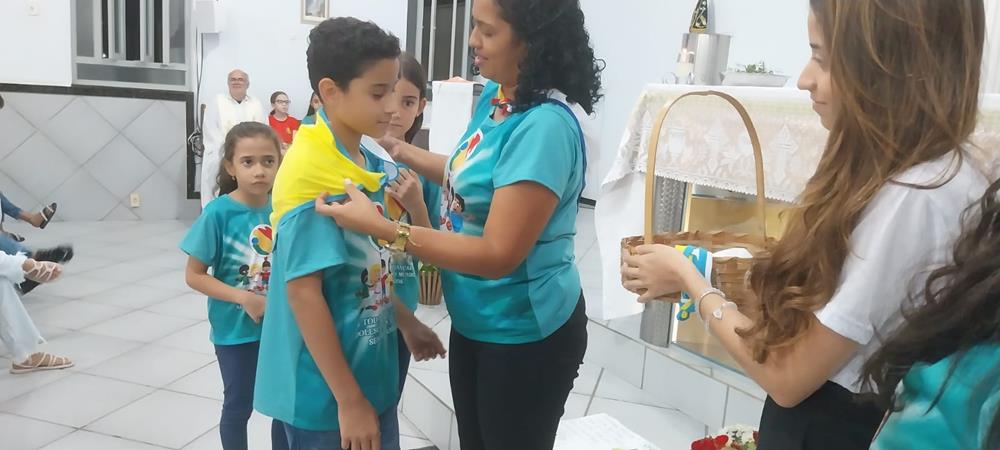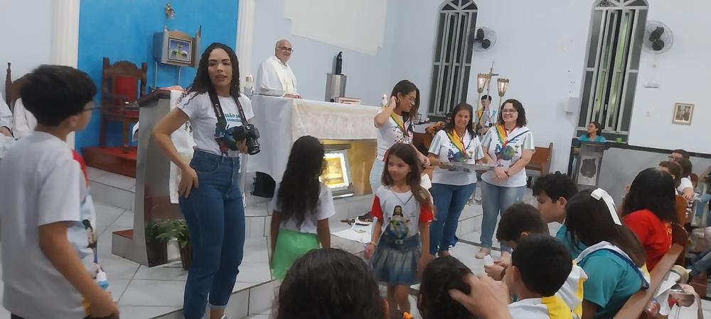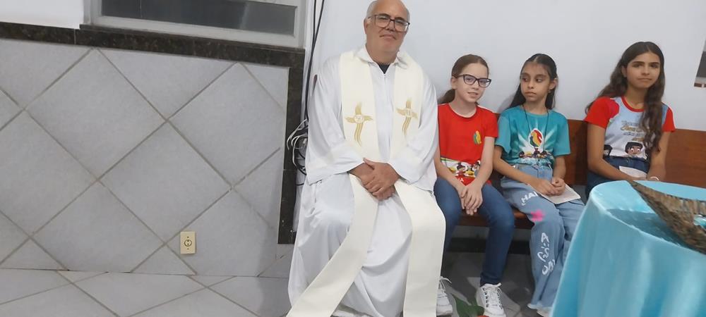 A Missa foi presidida pelo Vigário Paroquial, Padre Geraldo Morini que parabenizou os coordenadores, participantes e os pais que levaram seus filhos, para que ainda bem cedo eles comecem a assumirem o compromisso de ser missionário.