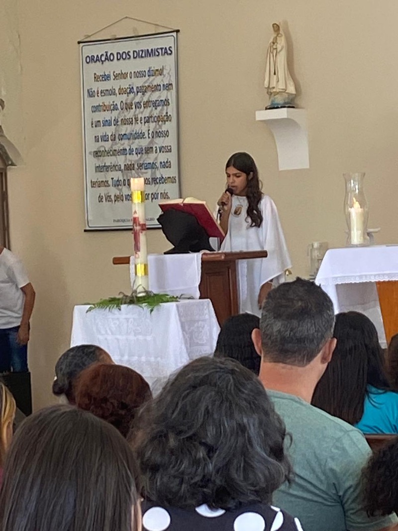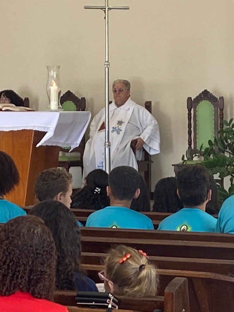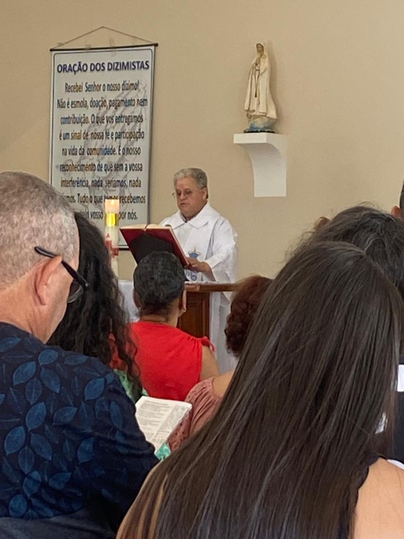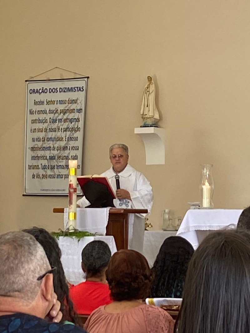 A Missa foi celebrada pelo pároco, padre Aloísio Vieira que em sua homilia dirigida em especial para as crianças refletiu sobre vários tipos de amor. Mas antes de tudo que tenhamos uma relação de intimidade com Jesus.  “Pois o sentido da vida consiste em amar. Sem amor, a vida é triste e a existência uma mentira. Por isso Jesus insiste com os discípulos sobre a necessidade de uma vida autêntica, no amor. Nos lembrou ainda que até aquelas pessoas que estão vivendo um estilo de vida de amor estéril, amor interesseiro, amor que usa o outro, amor baseado na atração sexual, amor que, na verdade, não é mais amor! Essas pessoas são convidadas pelo próprio Cristo a saírem desses contextos e entrarem no coração de Jesus” finalizou.
