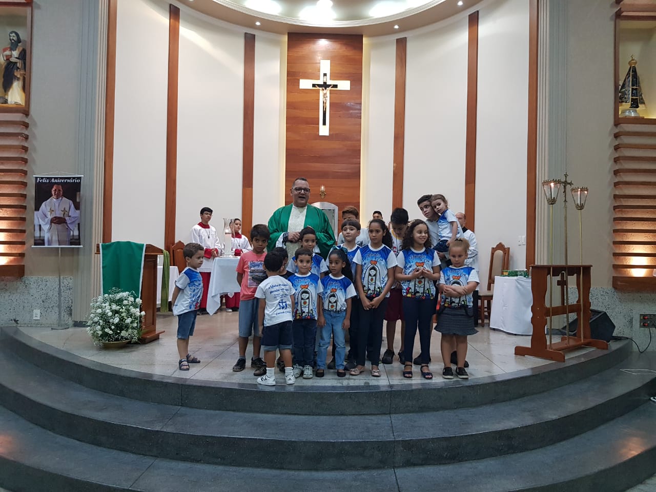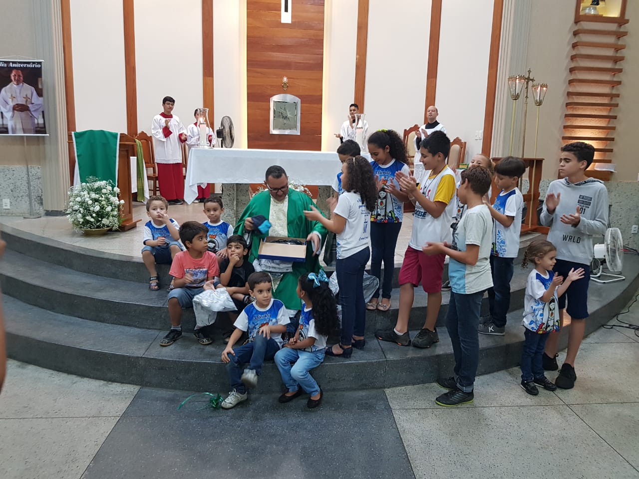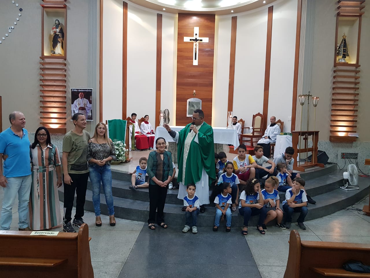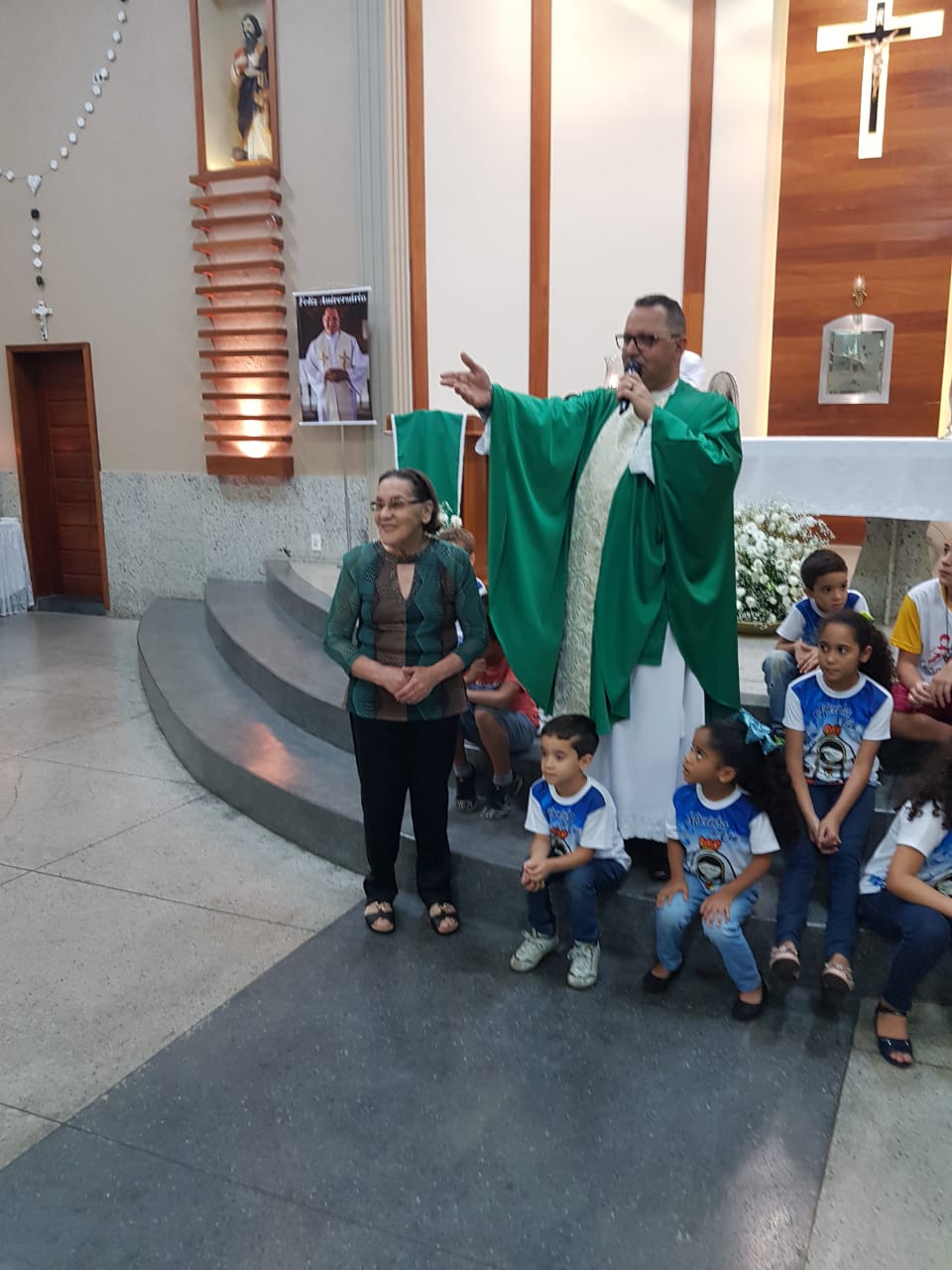 Ao final da Santa Missa o Cenáculo das Crianças do Movimento Sacerdotal Mariano fez uma linda homenagem ao padre, rezando por sua vida. Após os parabéns todos os presentes saborearam uma deliciosa galinhada e bolo.