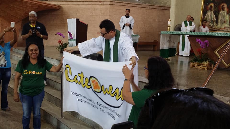Pe. José Wilker destacou em sua homilia a beleza de ser catequista e os desafios da vocação, a importância do catequista para a Igreja e a necessidade dele para a comunidade. O tema foi “O Mestre esta aqui e te chama”, que nos proporcionou uma belíssima reflexão durante a Santa Missa que foi presidida por Pe. José Wilker , juntamente com Pe. Geraldo Ildeo Franco, Pe. Ronaldo Tôrre e Pe. Eugenio Ferreira de Lima.