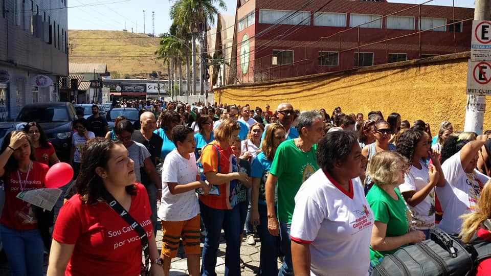 Fomos recebidos , cerca de 1100 catequista pela Paróquia São Sebastião de Coronel Fabriciano. Iniciamos com uma calorosa acolhida no clube Casa de Campo, onde tomamos café da manhã e nos alegramos com musicas e sorteio de brindes. Os catequistas presentes ouviram palavras de carinho, incentivo , agradecimento pela bonita e importante missão desempenhada, palavras de nosso Bispo Dom Marco através de um áudio enviado a todos os catequistas , do nosso assessor diocesano e regional de catequese Pe. Ronaldo Torre e também do Pe. José Wilker que nos acolheu com muito carinho. Saímos em procissão para a Co-Catedral para participarmos da Santa Missa.