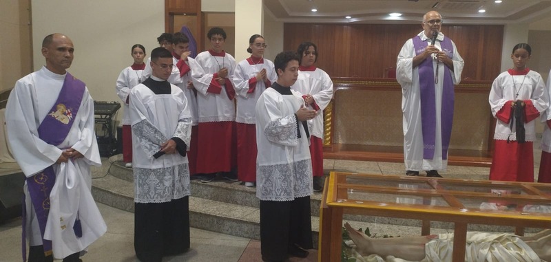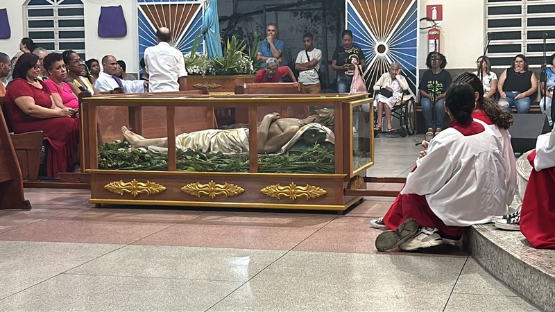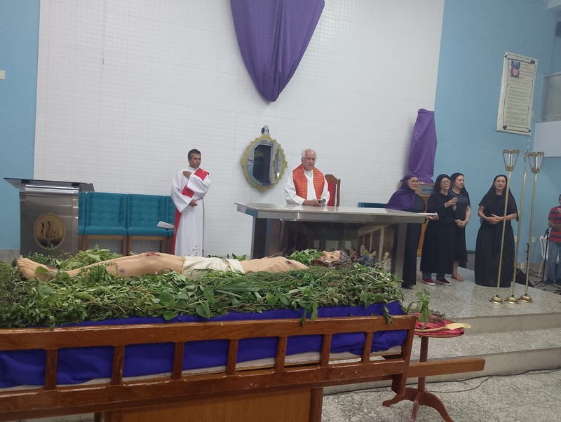 Na Sexta-Feira Santa do dia 29 de março de 2024, as comunidades da Paróquia São Geraldo Magela do Bairro Bom Jardim e Esperança, reuniram-se para Adoração da Santa Cruz às 15 horas e às 19 horas para o Sermão das 7 Palavras e Procissão do Enterro do Senhor Morto. Um dia de silêncio, reflexão e dor, para lembrar que Jesus sofreu e morreu pela humanidade.