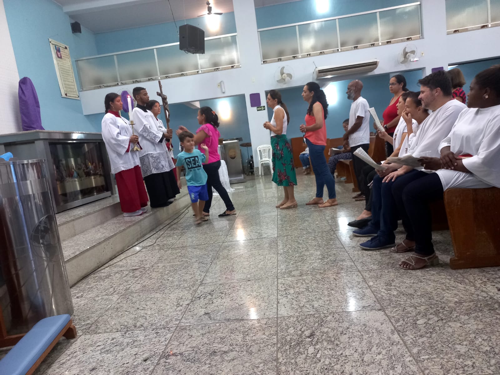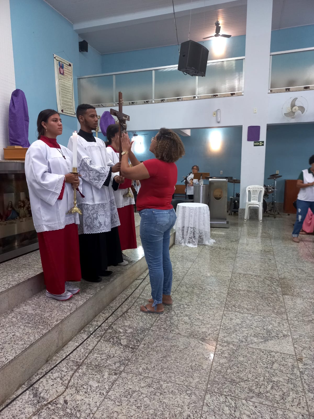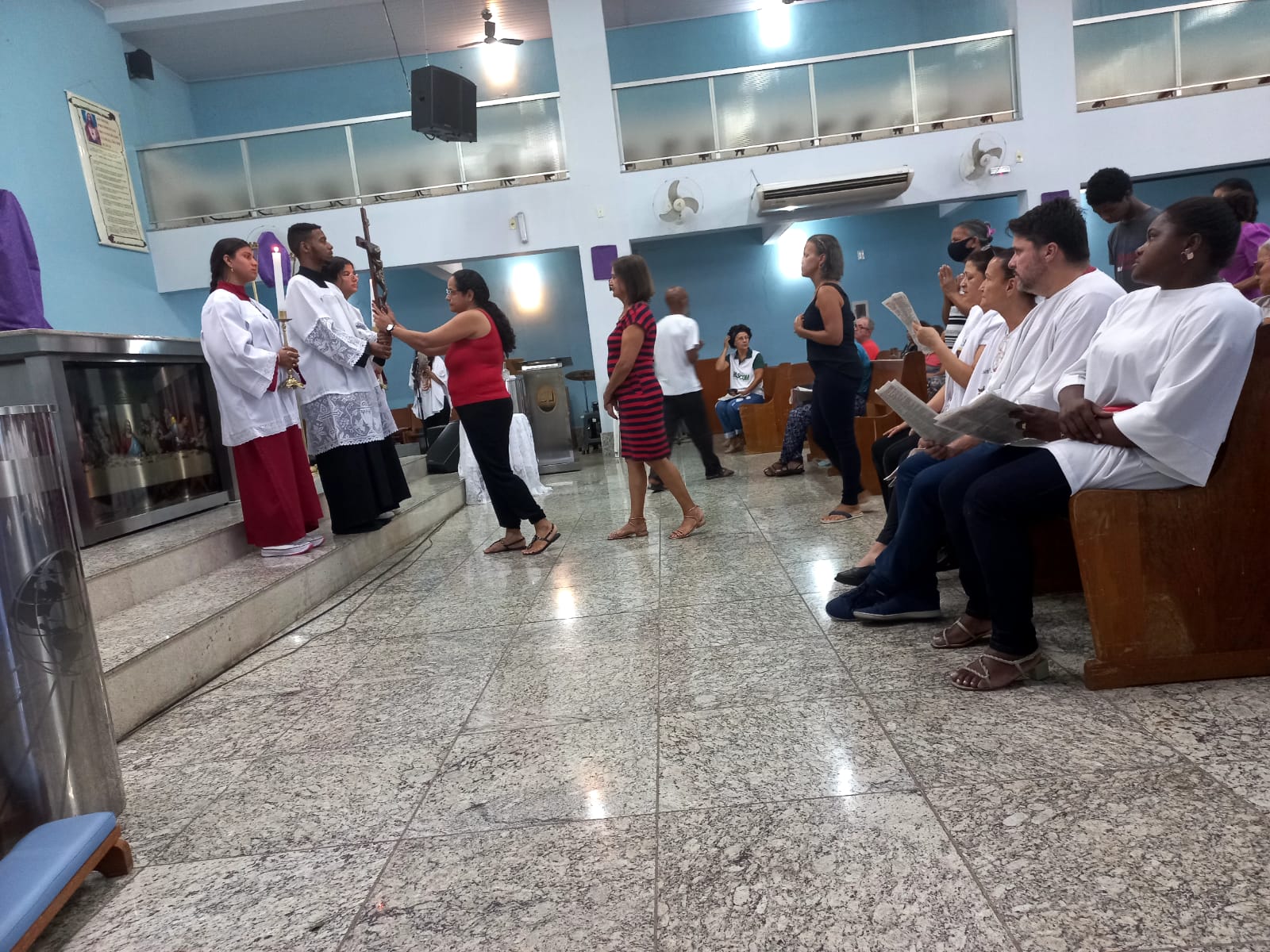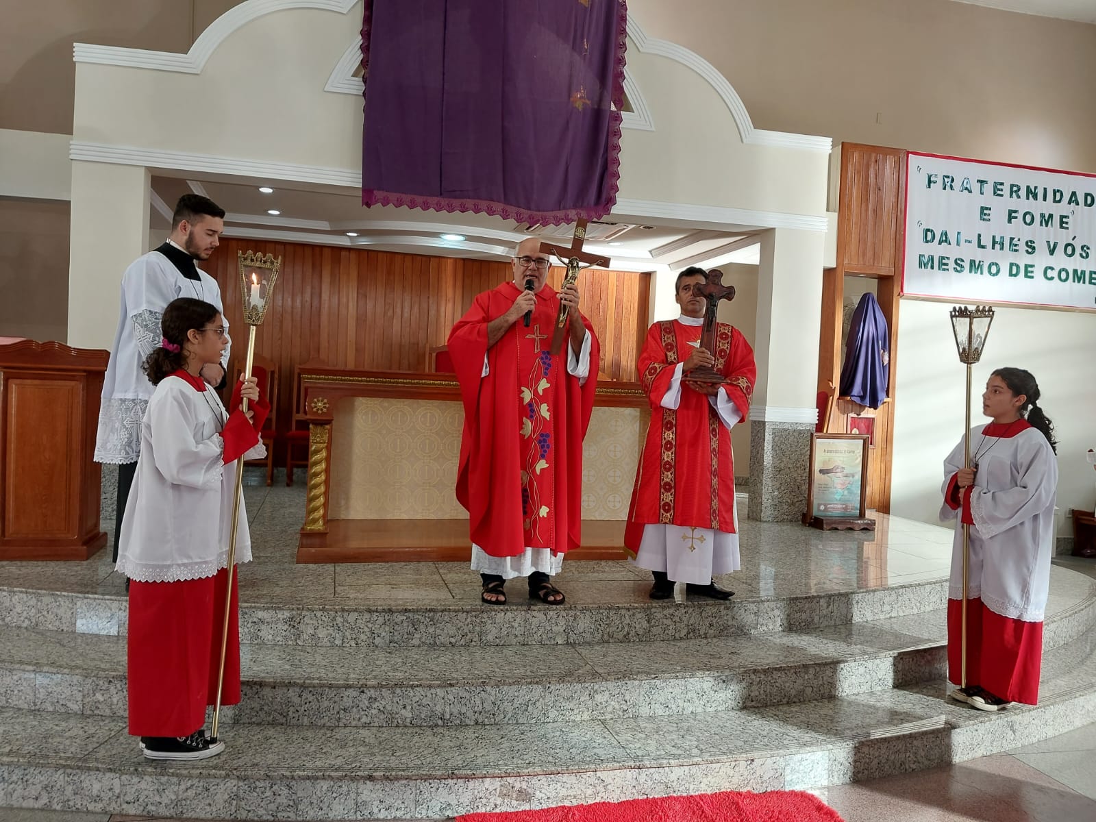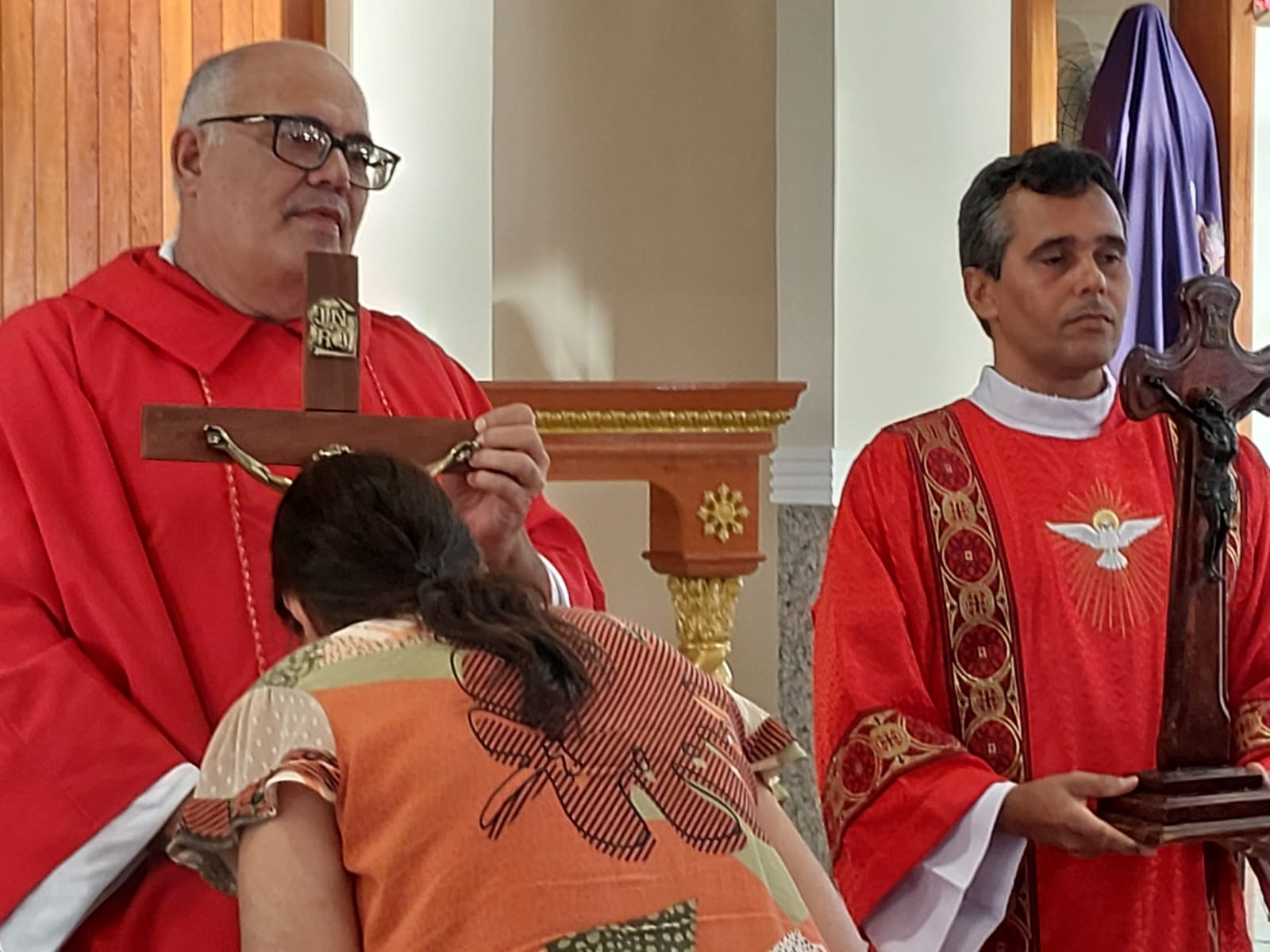 A Celebração da adoração da Santa Cruz na Sexta – Feira Santa foi celebrada pelo Padre Geraldo Morini e assistência do Diácono Rogério na Matriz São Geraldo Magela no bairro Bom Jardim, e na Comunidade Nossa Senhora das Graças, no bairro Esperança, pelo Pároco Padre Aloísio Vieira e assistência do Diácono Henrique.
