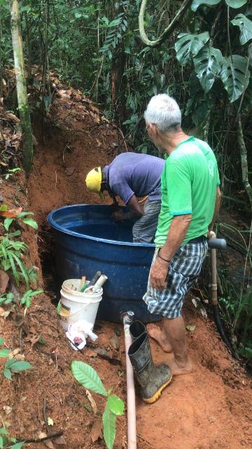 A água utilizada na irrigação é de uma nascente que esta sendo revitalizada pelos voluntários da ASAS numa mata anexo a horta.