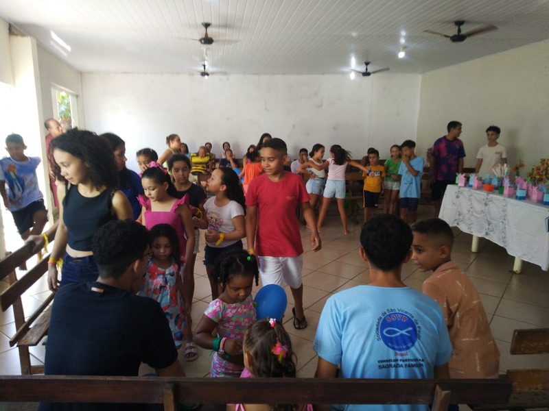 No dia 07/04/2024 aconteceu na comunidade São Francisco de Assis que fica localizada na Rua C, número 301, bairro Esperança uma tarde animada com as crianças e adolescentes das Conferências Anjo Gabriel e Menino Jesus vinculadas ao Conselho Particular Sagrada Família da Sociedade São Vicente de Paulo. Teve o início às 14:00 horas. Sendo realizada pela Comissão de Jovens do Conselho Sagrada Família e com a presença da Coordenadora Claudiana e Maria Arminda.
