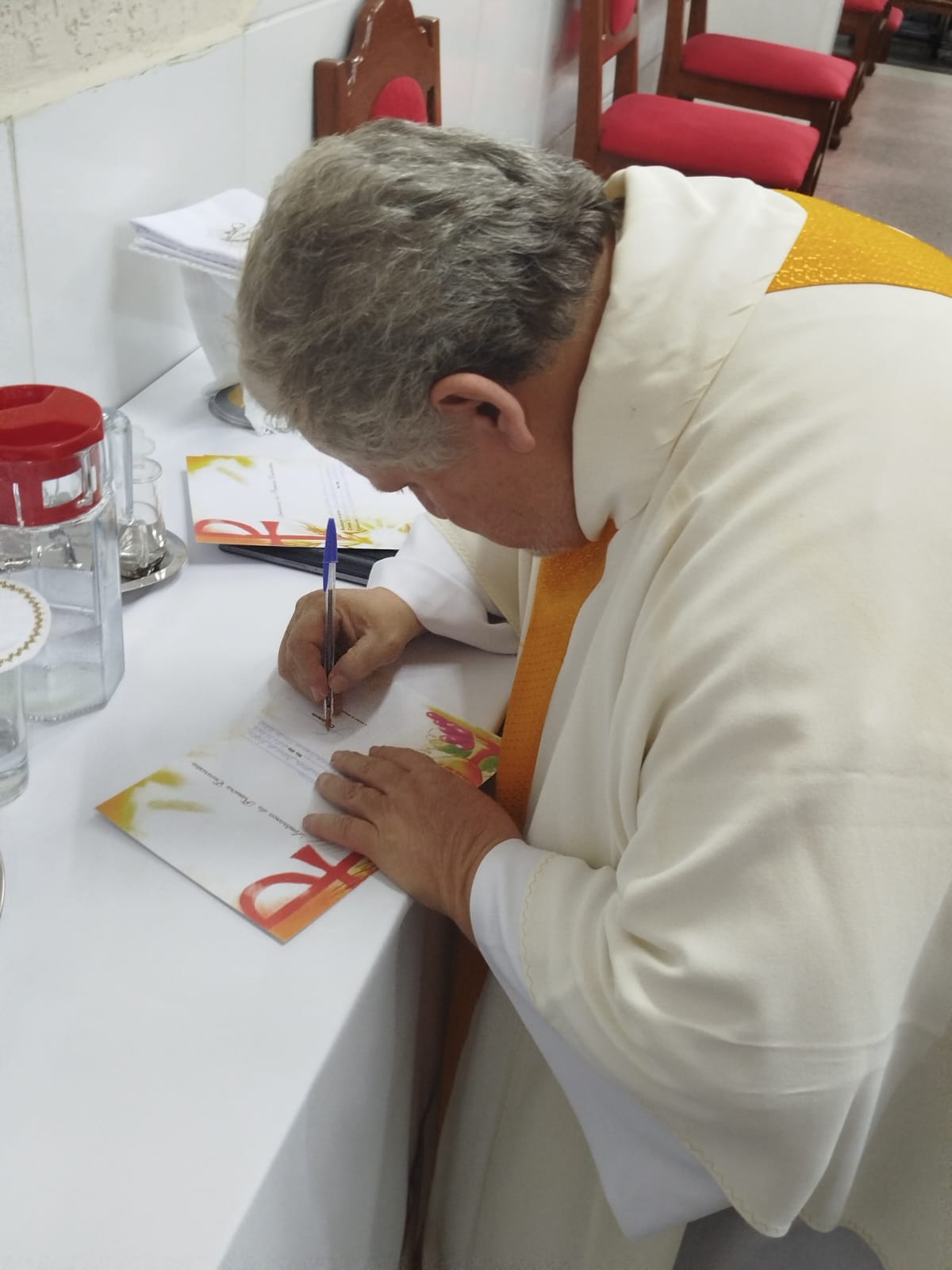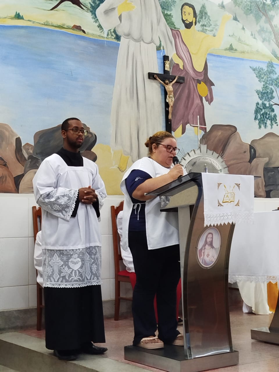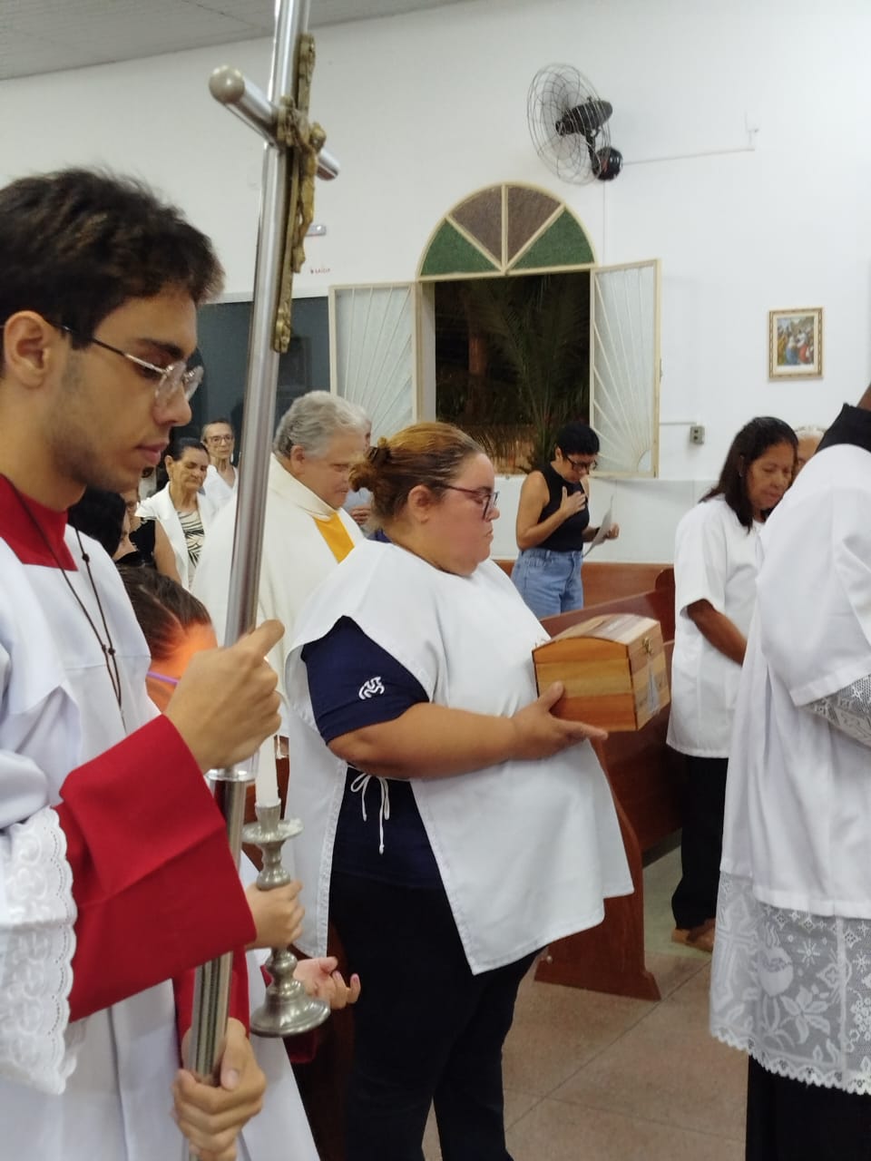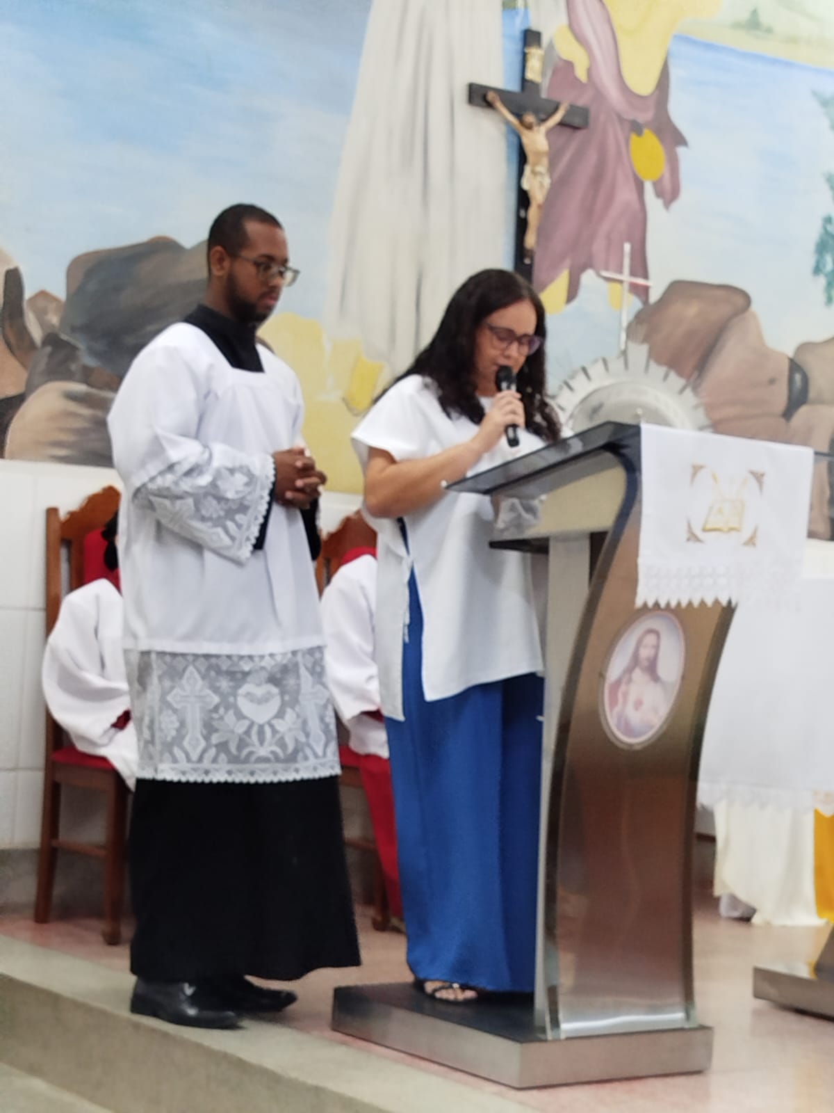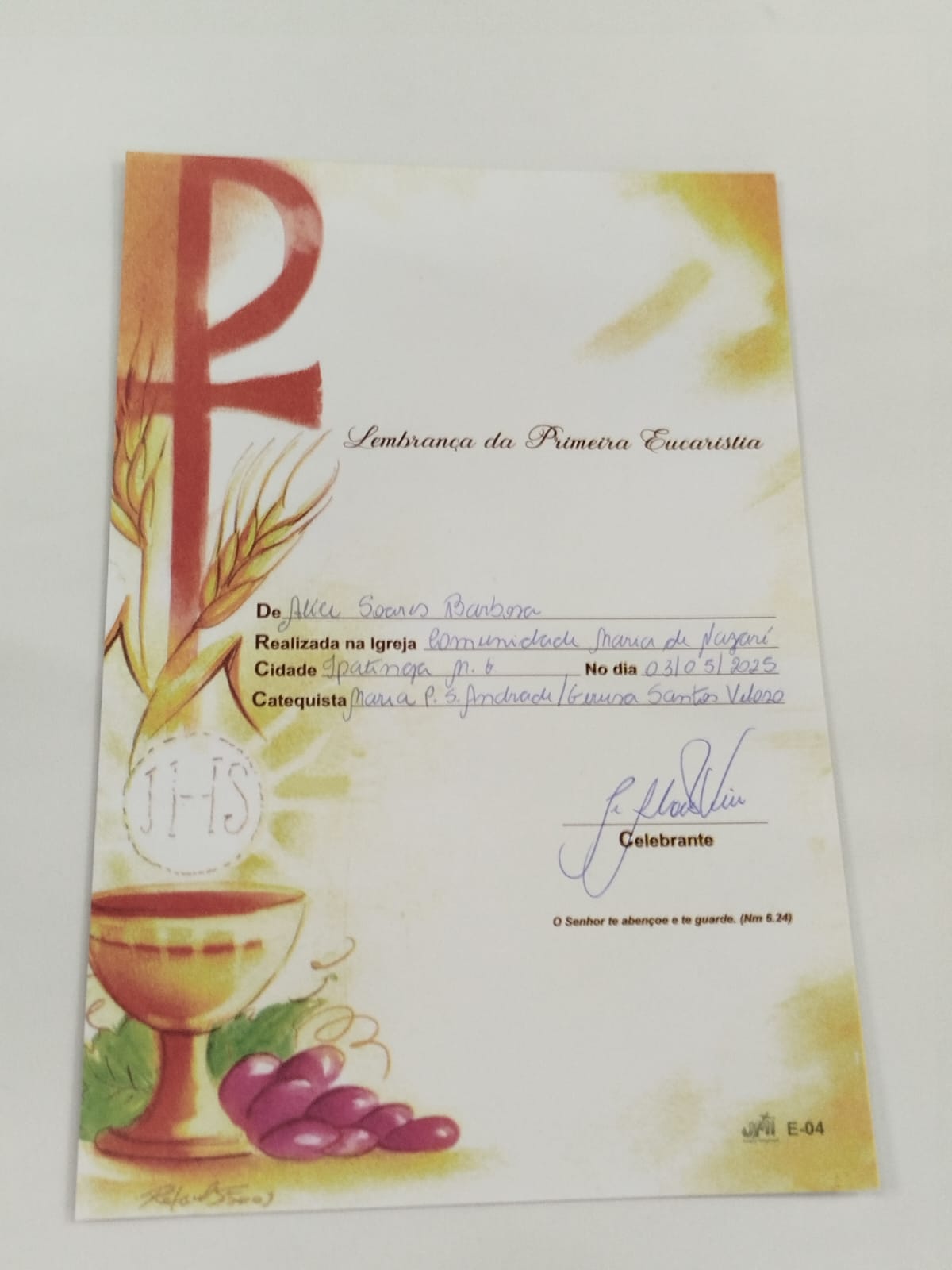 No dia 3 de maio às 18h na comunidade Maria de Nazaré situada na rua Francisca Constâncio 65 Bom jardim foi celebrada a missa da primeira eucaristia presidida pelo Pároco Pe. Aloísio Vieira, em sua reflexão ressaltou a importância desse sacramento na vida do adolescente e que essa primeira experiência seja constante na vida cristã, os catequizandos acendendo a vela no Ciro Pascal e diante de toda comunidade professaram sua fé rezando a oração do Creio, na hora da comunhão os catequizando foram até o altar e receberam Jesus eucarístico das mãos do pároco, aos catequizandos Alice Soares, Tiago dos santos, Kauã Oliveira a comunidade se sente muito alegres por mais um sacramento realizado na vida de vocês, aos familiares que Deus possa continuar iluminando para que seja exemplo e as catequistas Maria Perpétua e Gerusa Santos agrademos por acompanhar esses adolescentes e contribuir para a formação cristã de cada um deles e esperamos que a caminhada desses adolescentes possam chegam até ao sacramento da crisma para finalizar esse processo da catequese que faz com que os jovens possam ter a maturidade cristã e fazer parte da vida da comunidade.