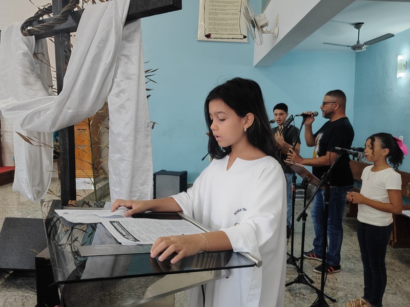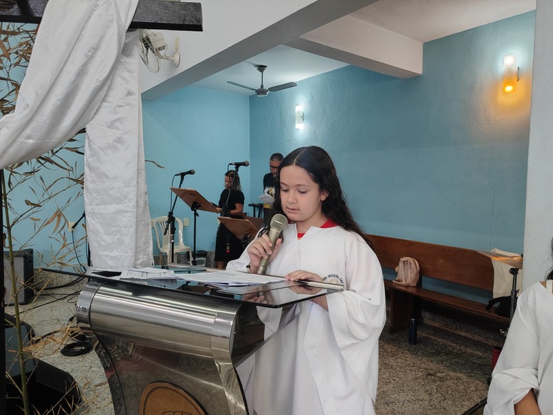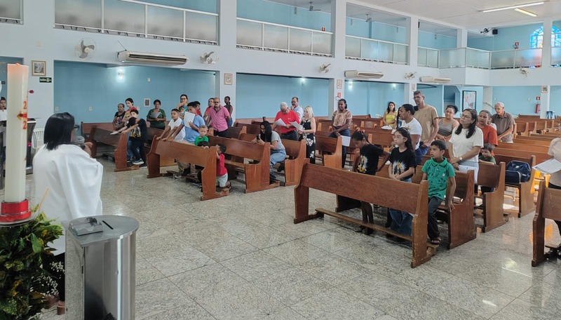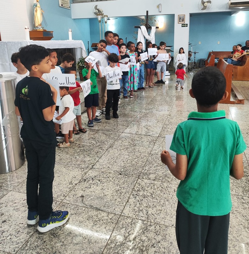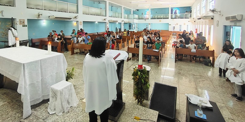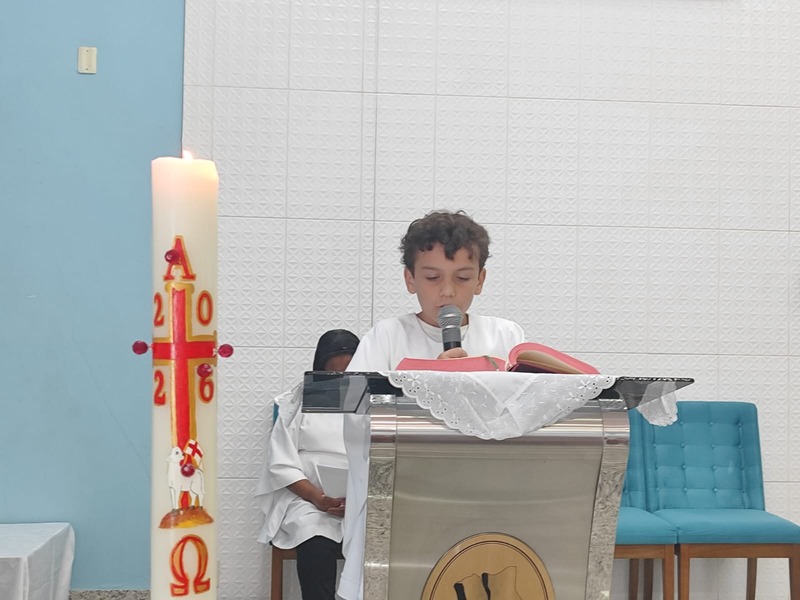 A Comunidade Nossa Senhora das Graças do bairro Esperança realizou na manhã de domingo do dia 26 de abril de 2026 às 9 horas, a celebração com as crianças. A celebração foi conduzida pela Ministra Extraordinária da Palavra, Eudes, com o apoio de Letícia, integrante do Ministério de Proclamadores da Palavra.