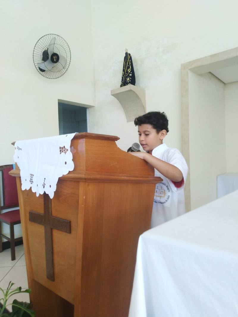 No dia 12 de maio 2024, na comunidade São Francisco de Assis, que fica localizada na Rua C, nº 301, às 09:00 horas, a celebração das crianças. Sendo feita pela Ministra da Palavra Raquel.