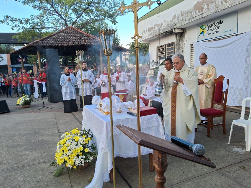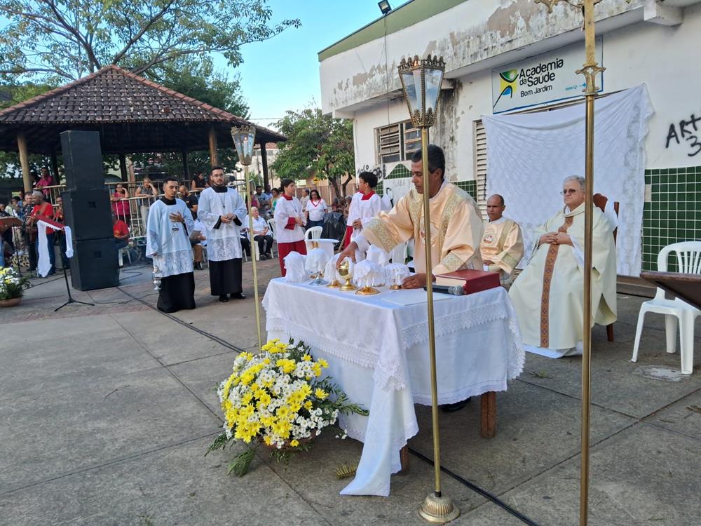 E foi pensando assim que as Comunidades da Paróquia São Geraldo Magela do bairro Bom Jardim decidiram celebrar em nível Paroquial. A Missa iniciou às 16 horas na praça central do Bom Jardim e seguida procissão em direção à Matriz São Geraldo.