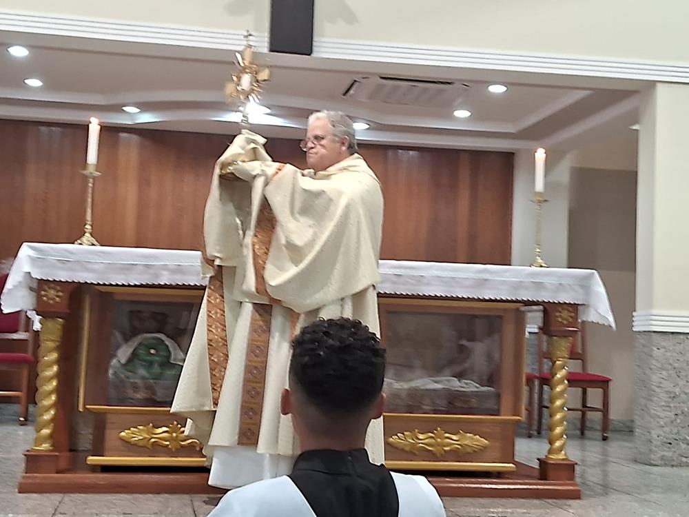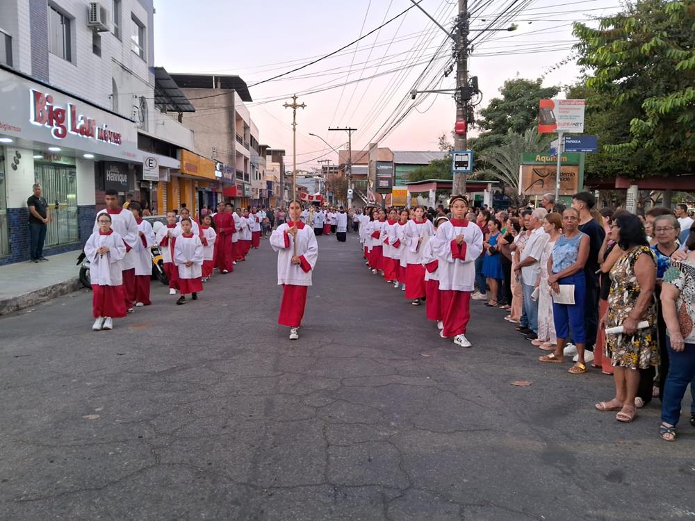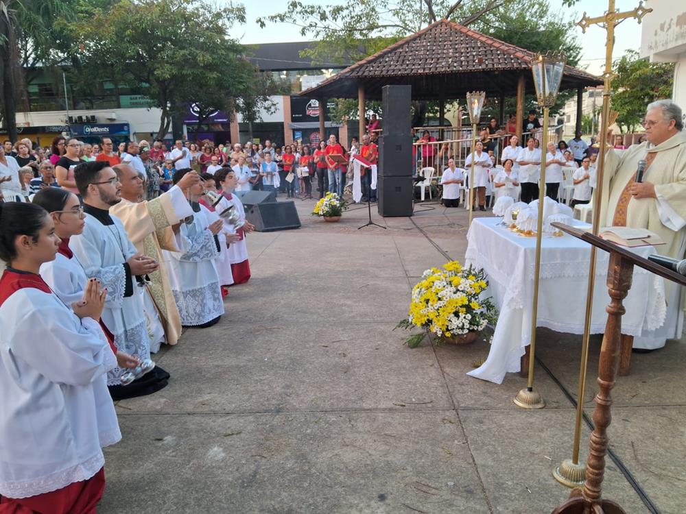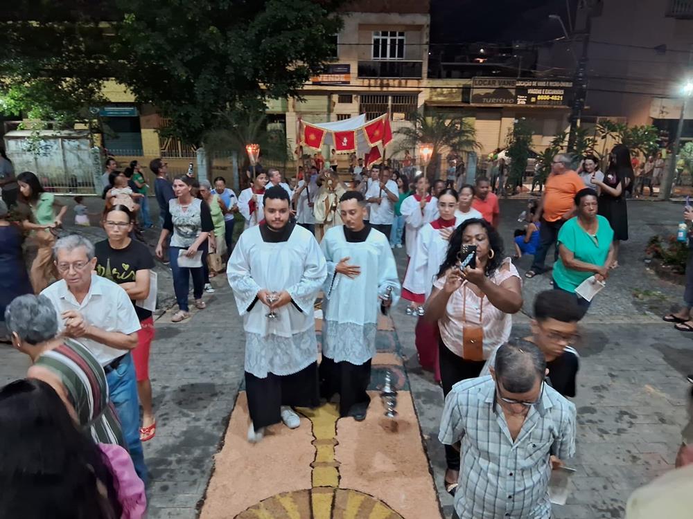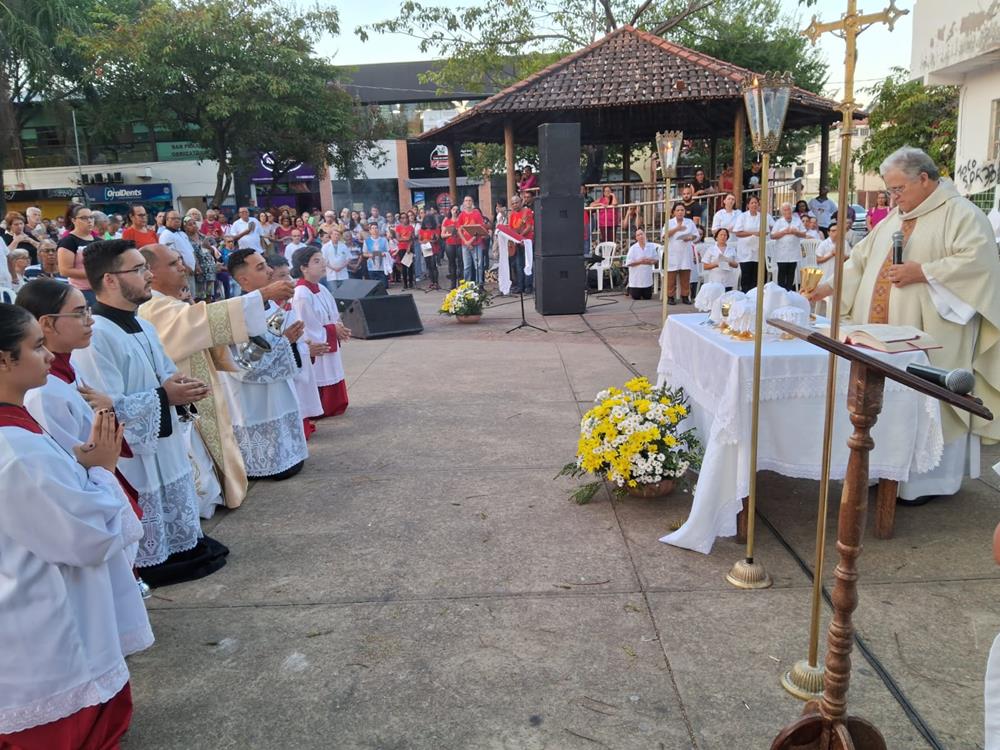 A Missa foi presidida pelo pároco, Padre Aloísio Vieira, auxiliado pelos Diáconos Henrique e Rogério. Após a Procissão, os fiéis receberam a Benção com o Santíssimo Sacramento.