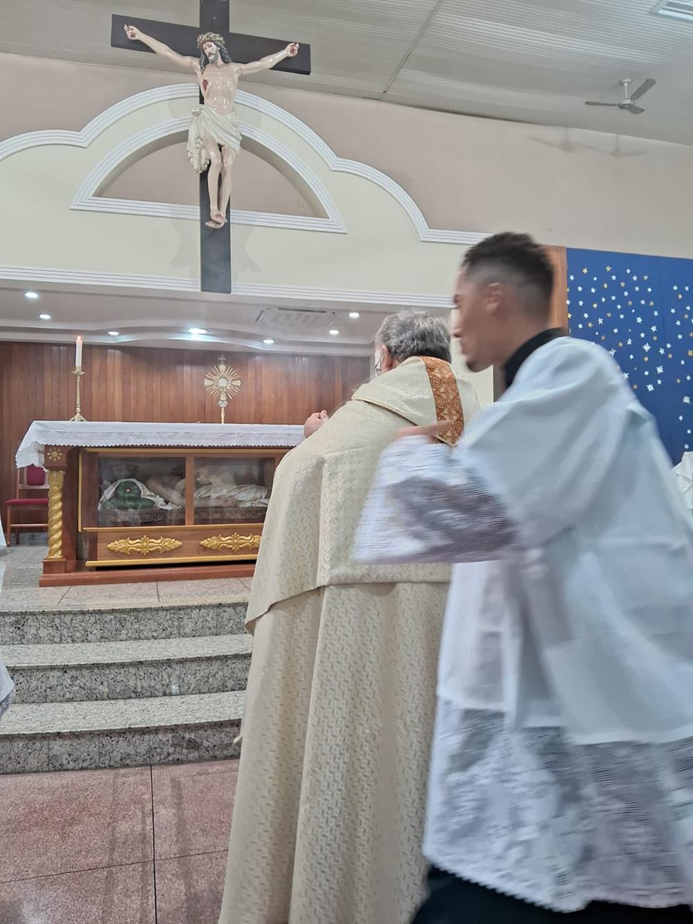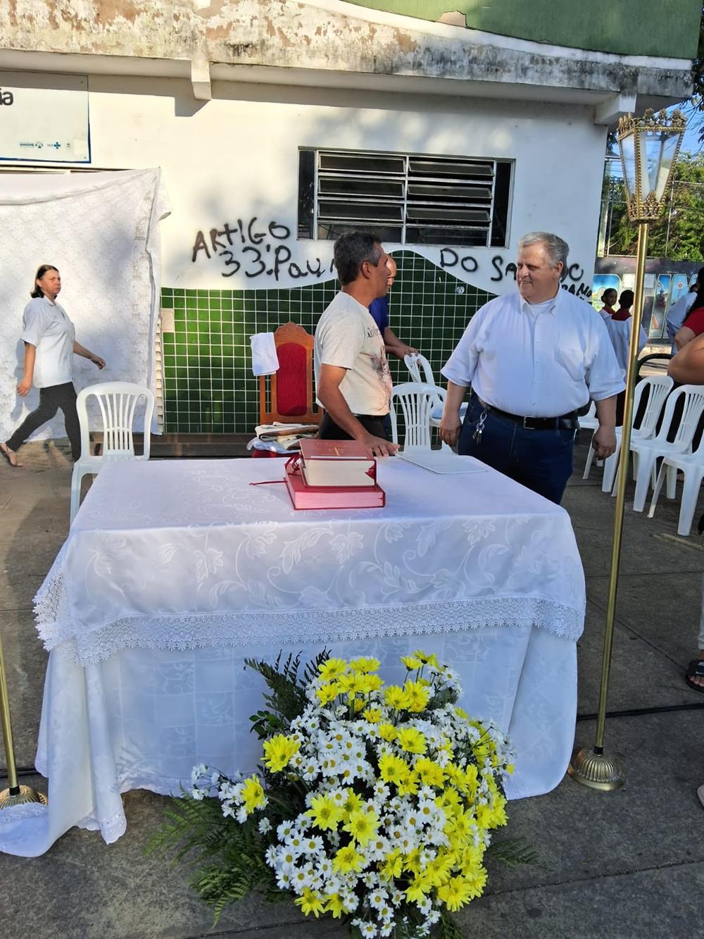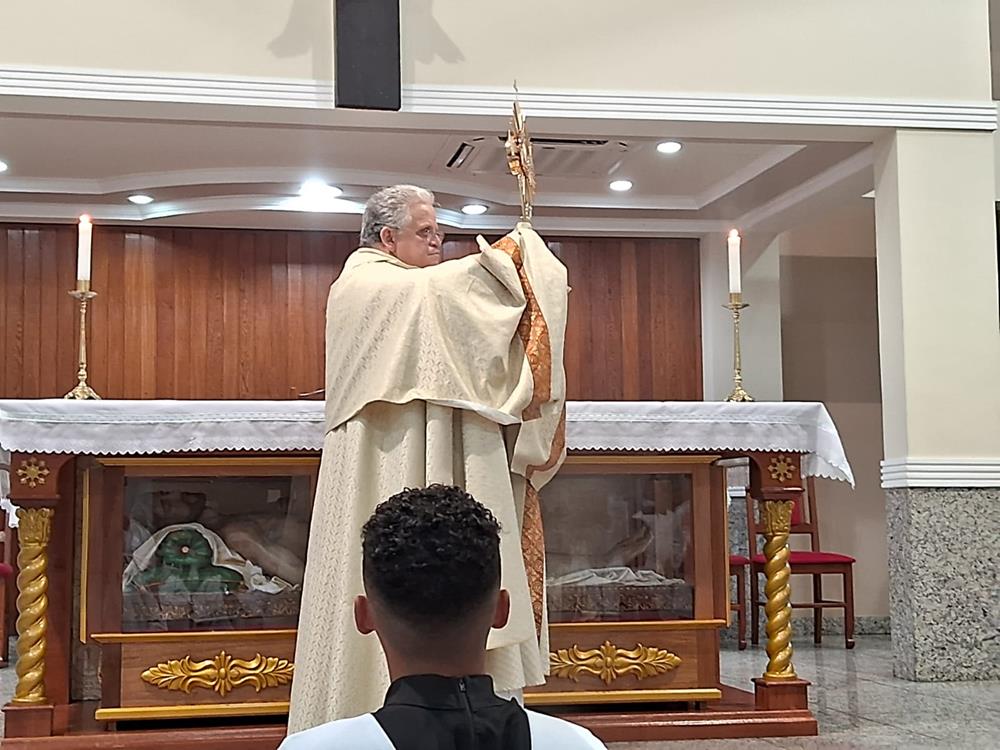 A Missa foi presidida pelo pároco, Padre Aloísio Vieira, auxiliado pelos Diáconos Henrique e Rogério. Após a Procissão, os fiéis receberam a Benção com o Santíssimo Sacramento.