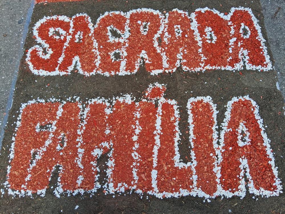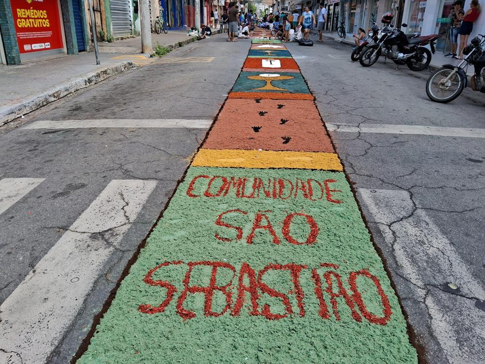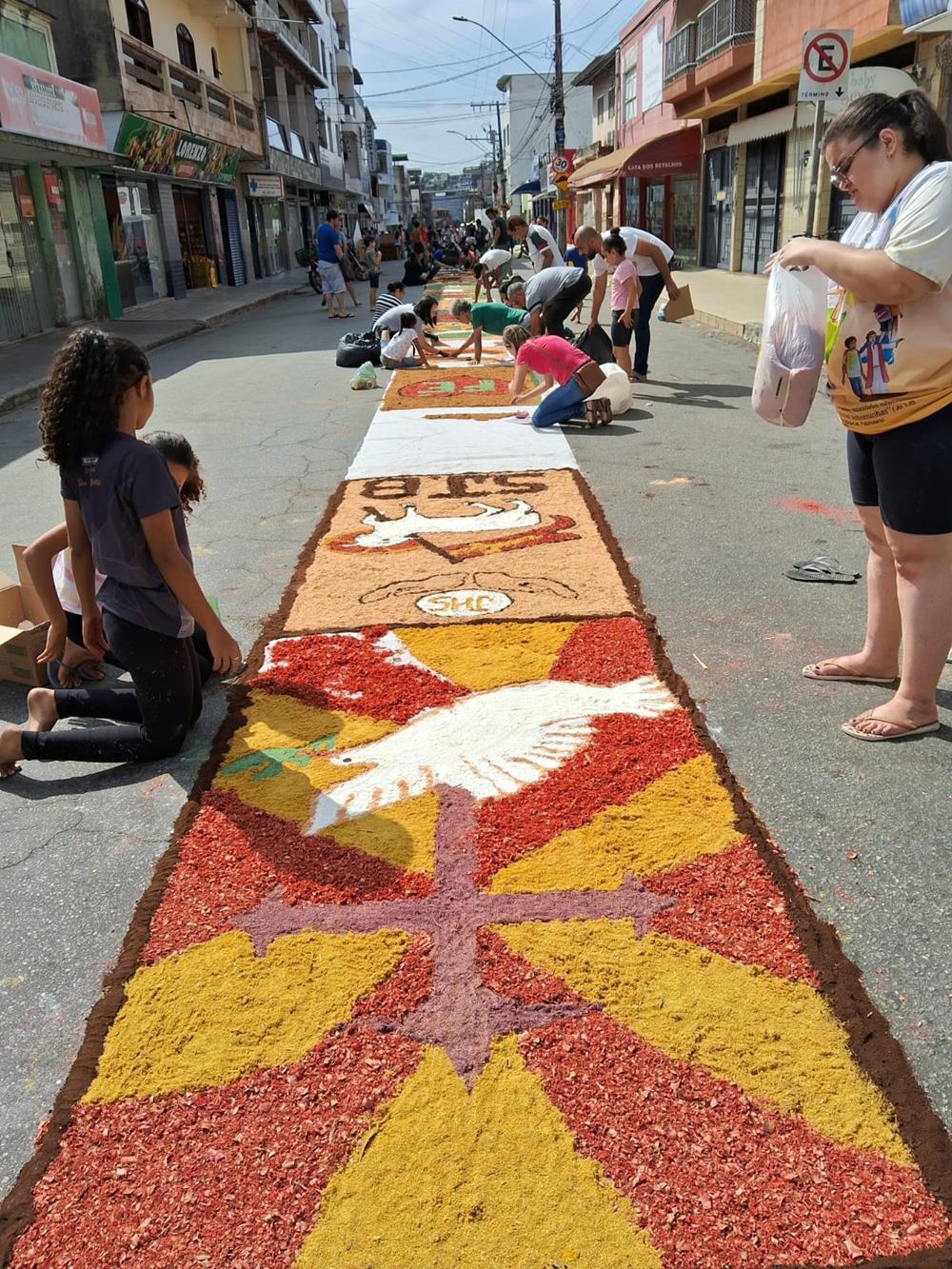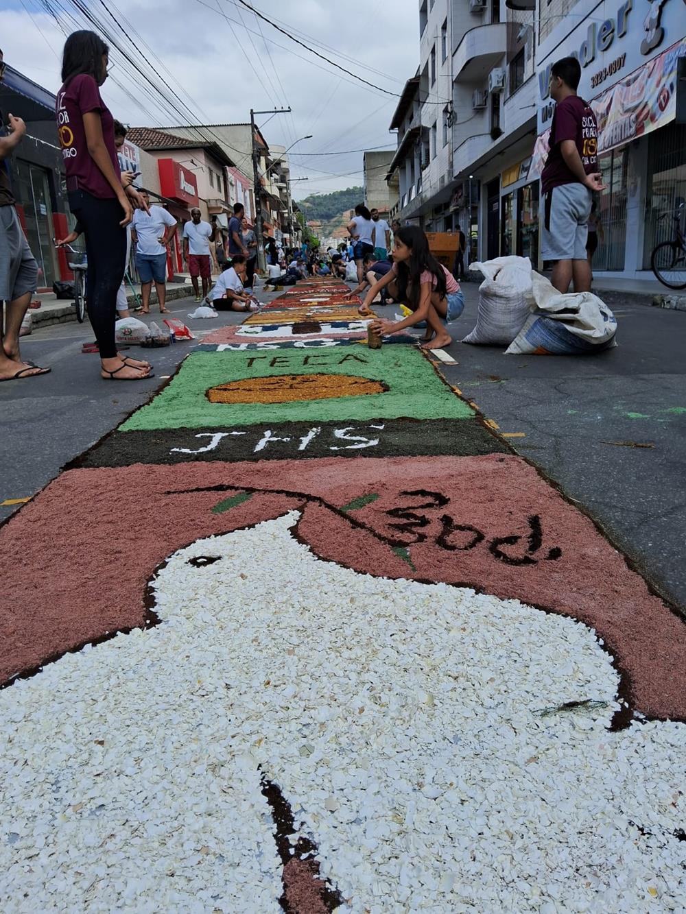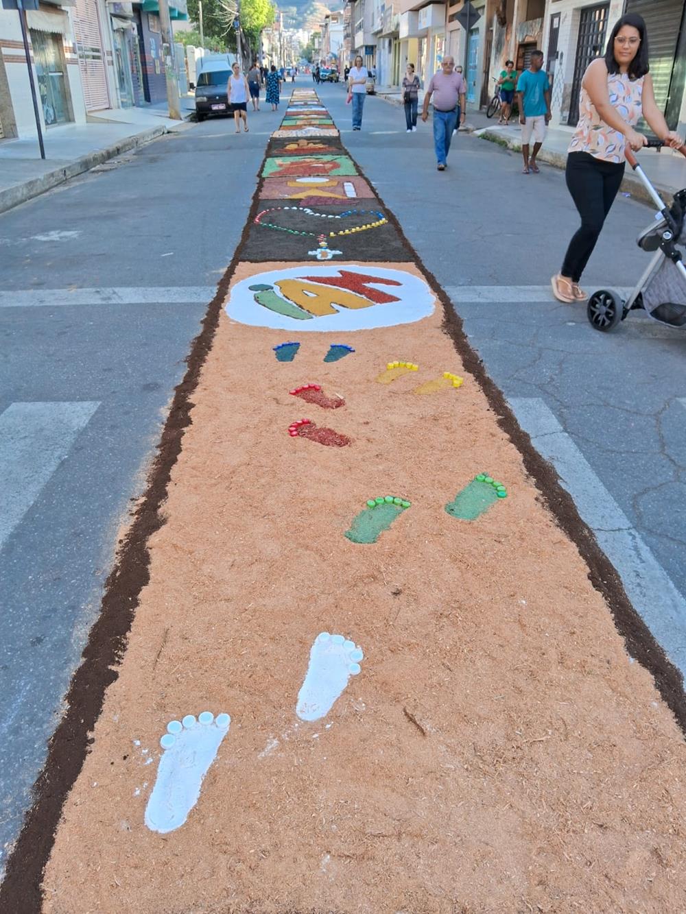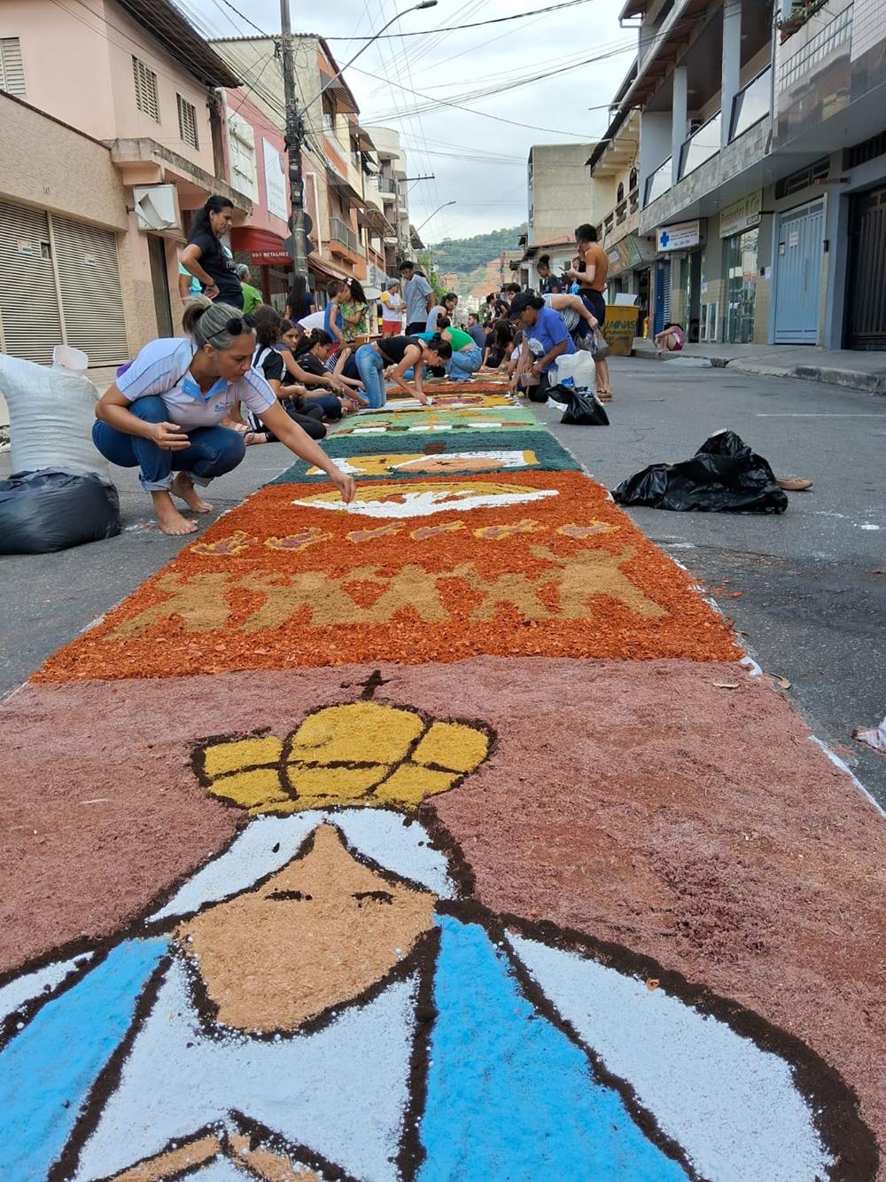 Adultos, crianças, jovens e famílias completas, estiveram a serviço de suas respectivas comunidades, para confeccionarem os tapetes para festa de Corpus Christi. De uma maneira organizada, cada tapete era concluído com alegria pelas equipes.