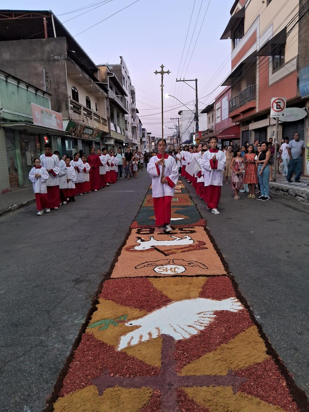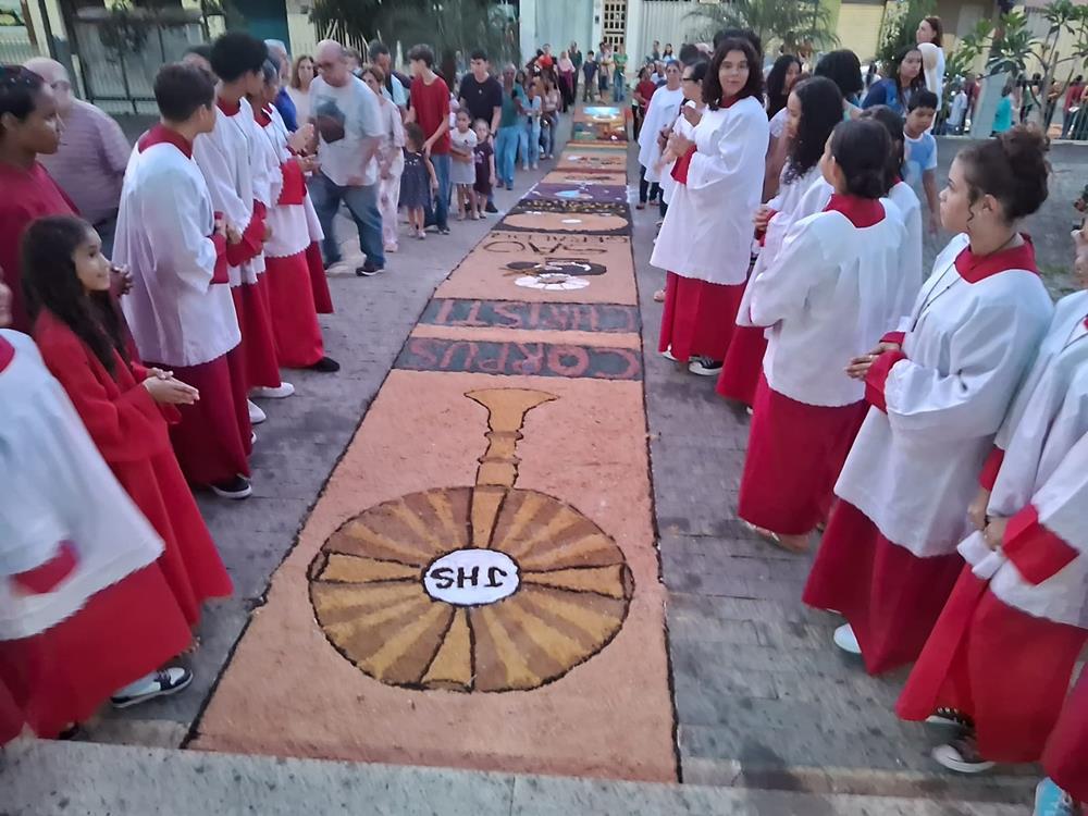 A manhã do dia da festa de Corpus Christi, Quinta-Feira dia 30 de maio, foi marcada com a presença das Comunidades, grupos, pastorais, Movimentos e Serviços da Paróquia São Geraldo na Avenida das Flores, no bairro Bom Jardim em Ipatinga (MG).
