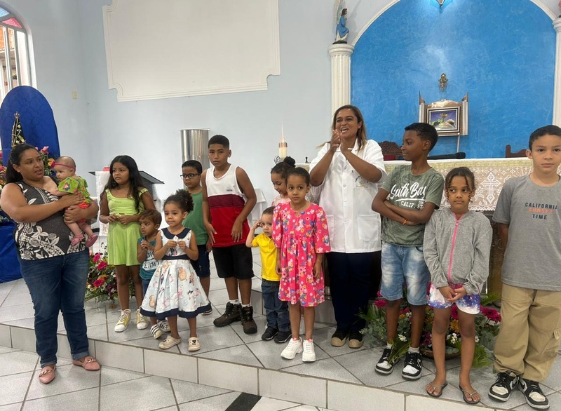No dia 08 de outubro de 2023, domingo, aconteceu na Igreja Nossa Senhora Aparecida, situada na rua Papoula n°885 bairro Bom Jardim, as 7hs uma Celebração em homenagem ao dia das Crianças, ministrada pela ministra da Palavra Daniela Alves e logo após às 8hs, no pátio da igreja, a criançada pode se divertir com um momento de lazer, promovido pelo IAM (Infância e Adolescência Missionária), Catequese e Liturgia.
