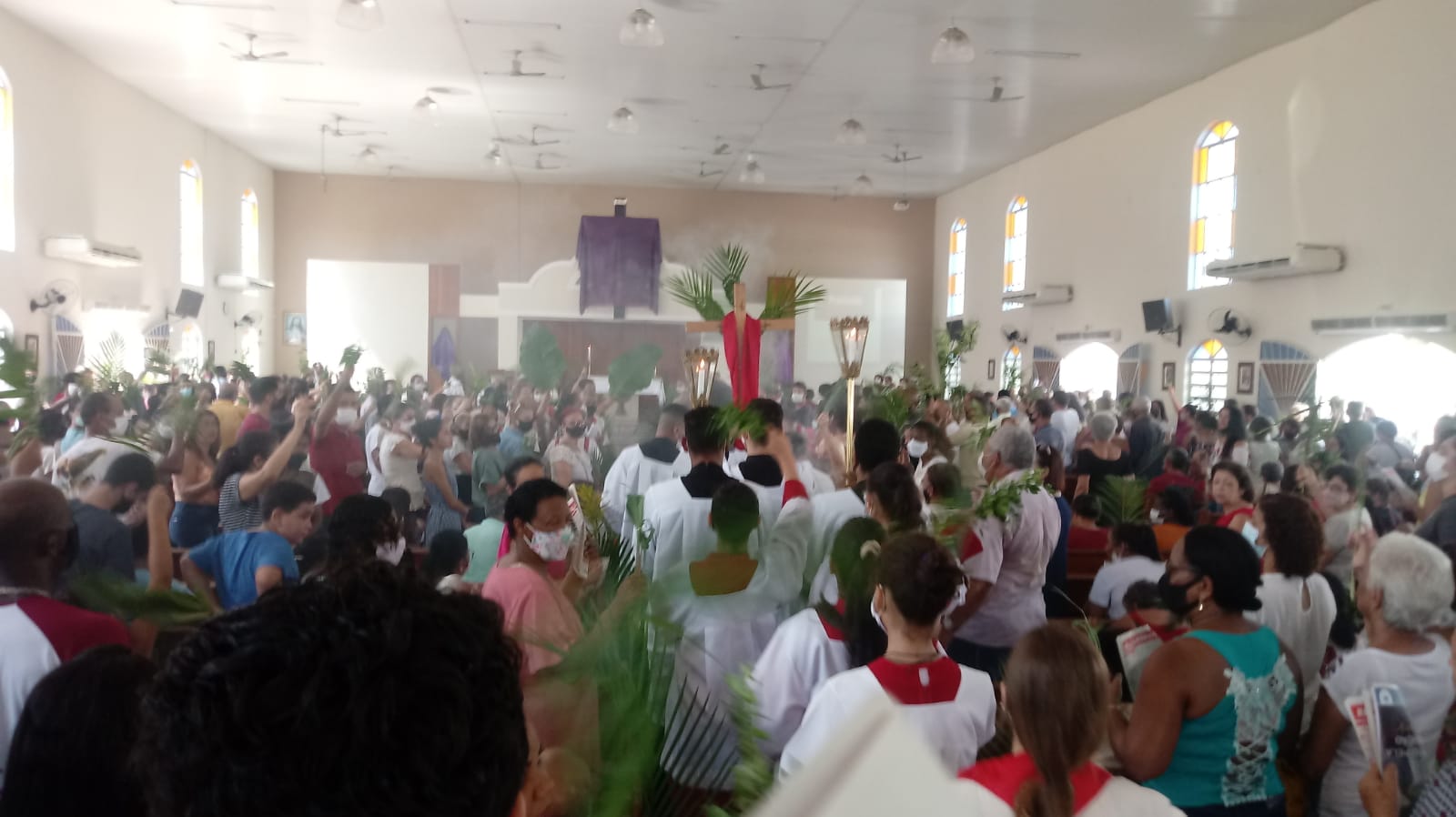 Finalmente após dois anos de pandemia do novo Coronavírus a presença do povo de Deus nas celebrações da Semana Santa dentro de um protocolo menos rígido, a Paroquia São Geraldo Magela de Ipatinga pode contar com o publico significativo de pessoas. Mas para evitar um numero maior de aglomeração e movimentação de pessoas a paroquia programou duas missas uma em cada setor pastoral da paroquia.
