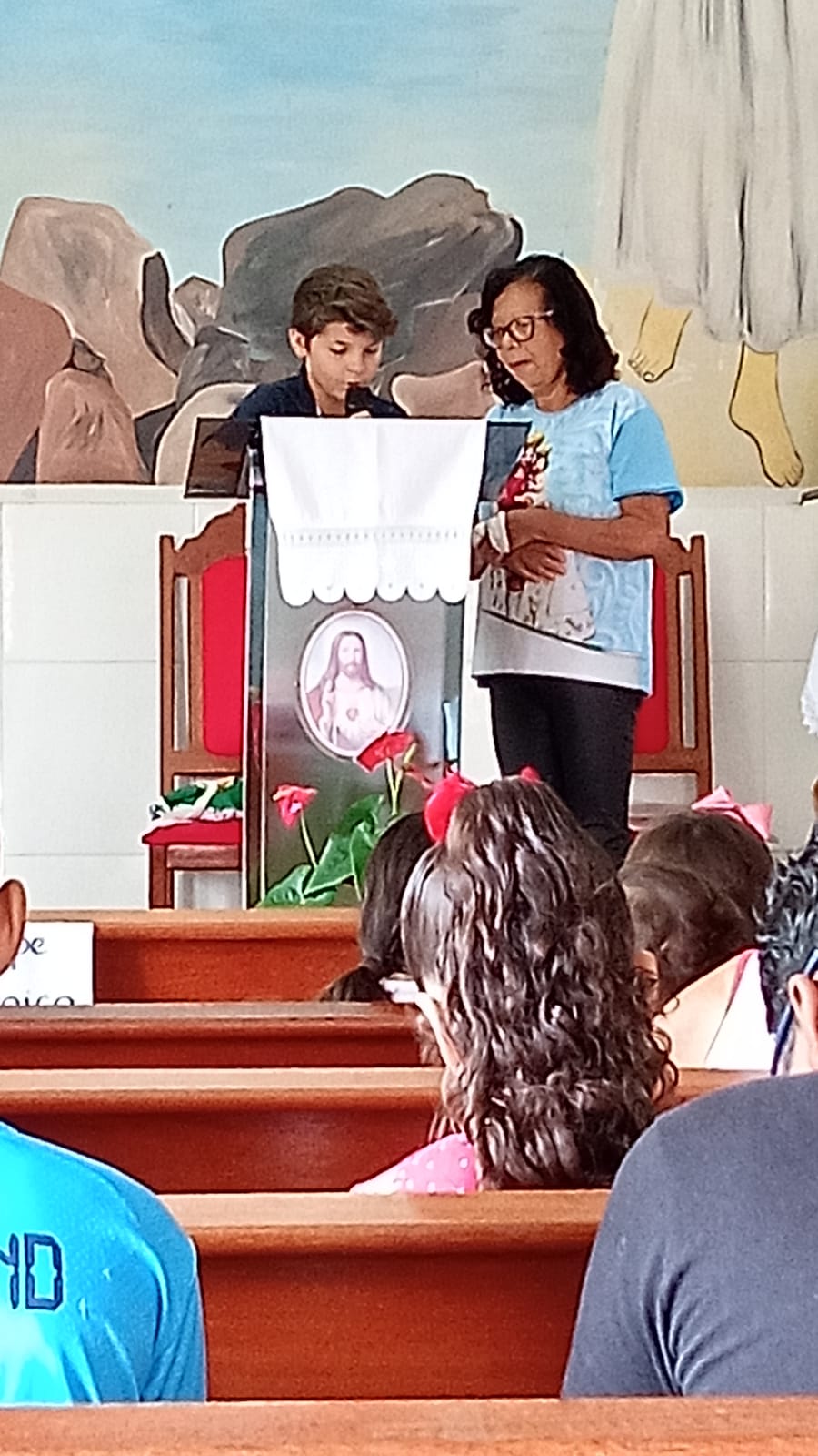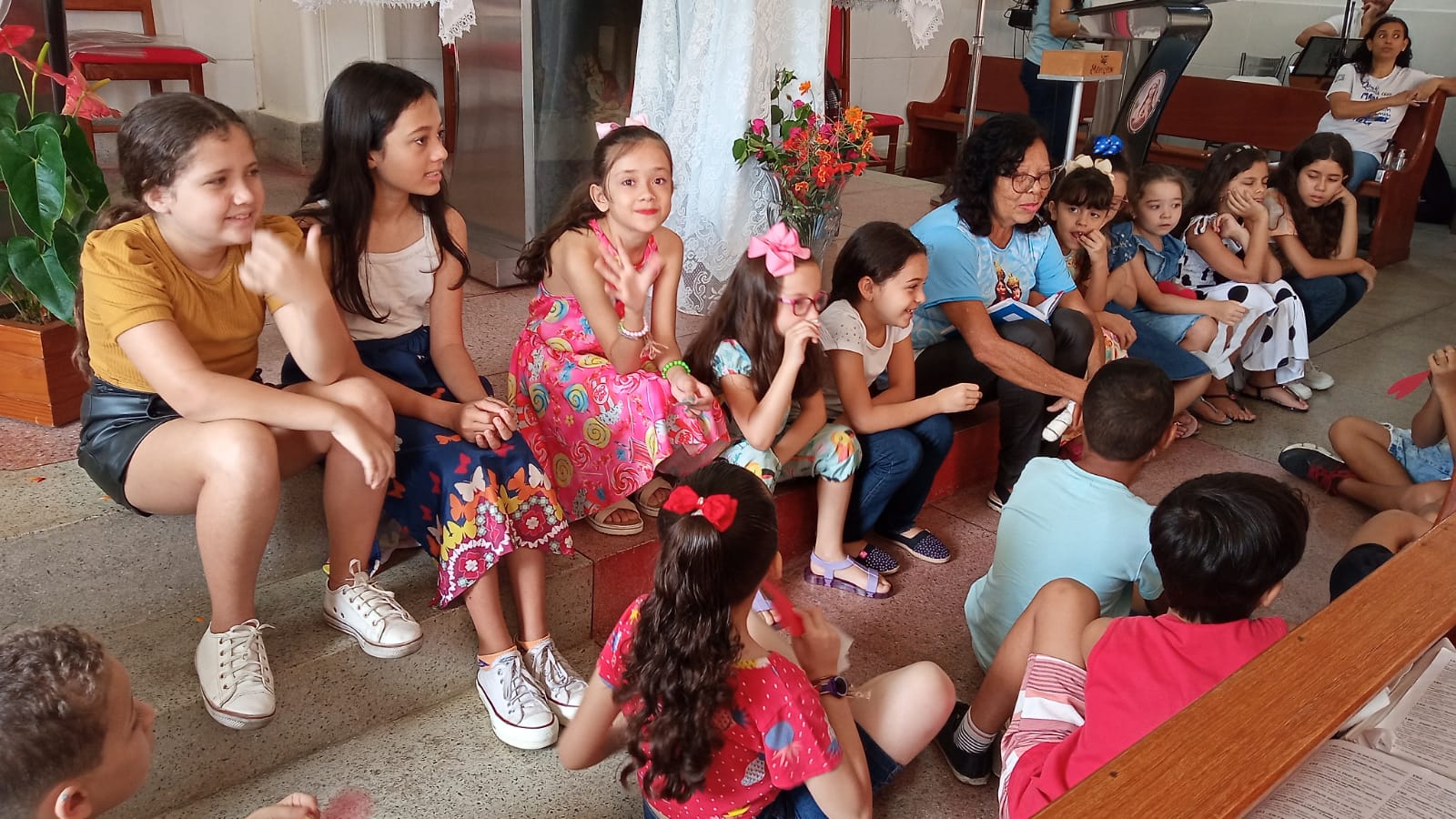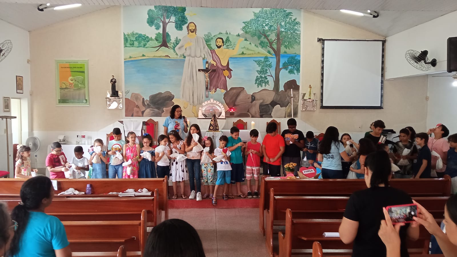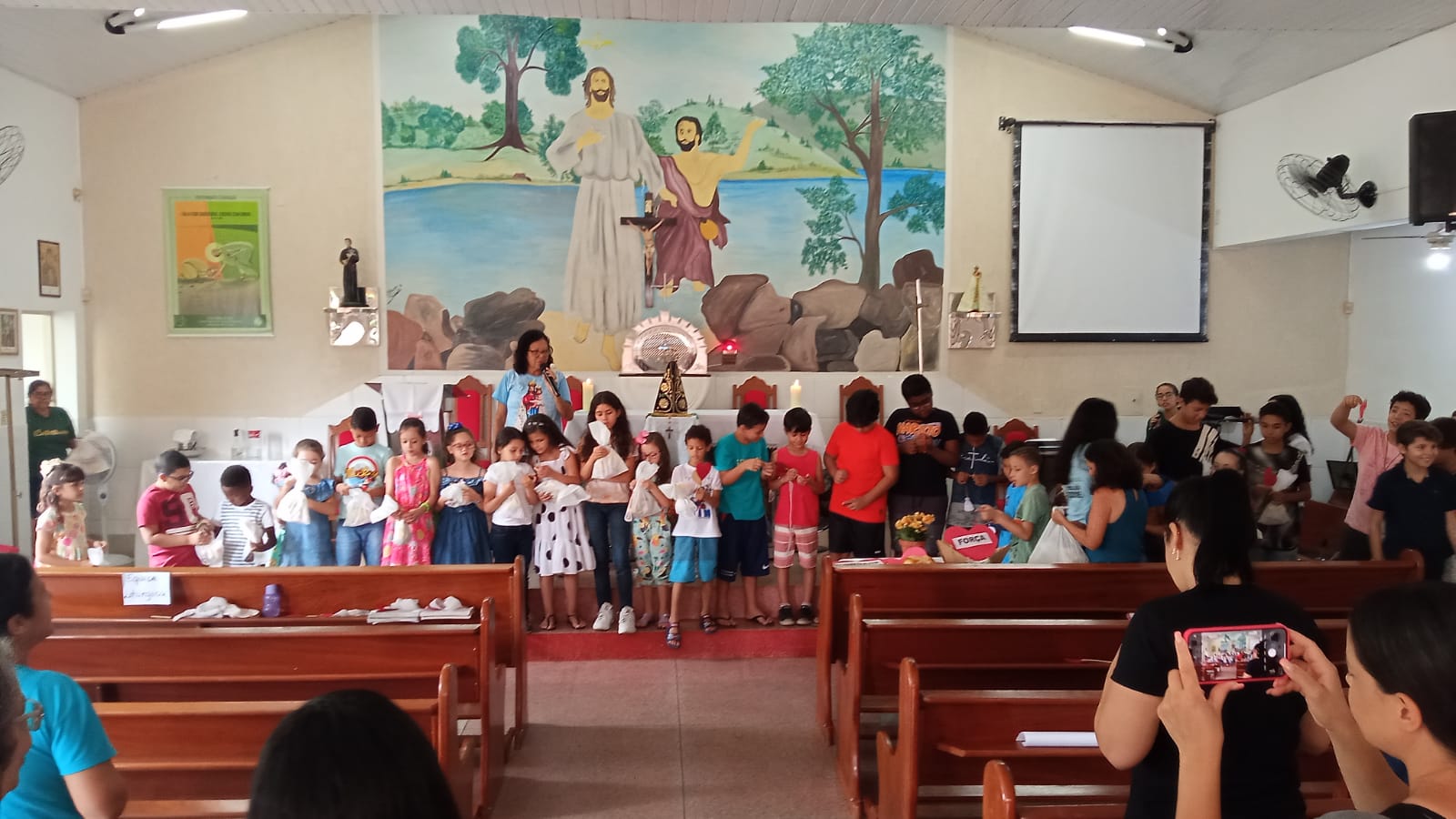 A celebração foi presidida pela Alice Dias da Pastoral da Liturgia, e contou com a presença de diversas crianças que participaram ativamente da celebração. A catequista Valéria Nepomuceno falou da importância dessa celebração: “A importância é incluir as crianças e toda família na Missa/Celebração, na linguagem delas, de forma clara e lúdica, onde possam entender a liturgia e sentir amor por estes momentos com Jesus.”
