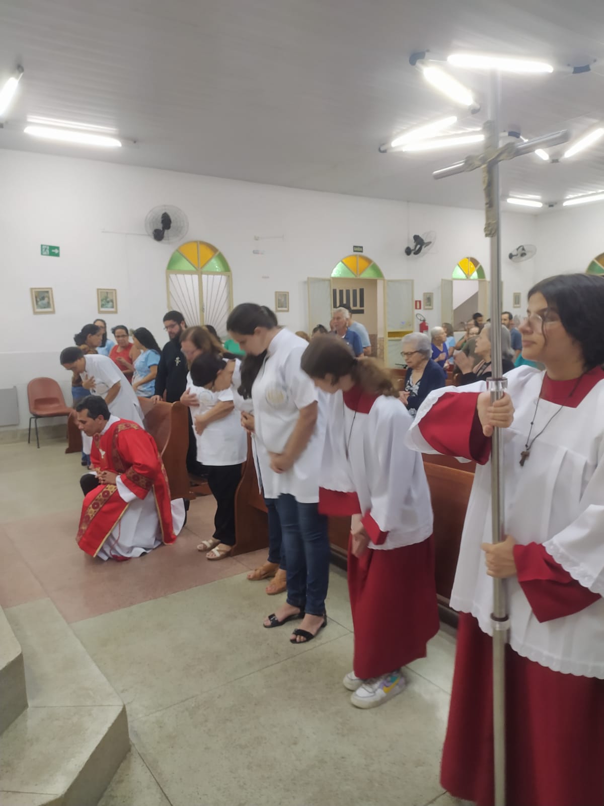 No dia 12 de agosto, depois da Missa das 18h, aconteceu tambem o Arraiá da Comunidade. Depois de anos sem realizá-lo devido a pandemia, nesse ano as pastorais da Comunidade se organizaram para que esse Arraiá acontecesse. Foram dias de preparação para adquirir os alimentos que foram ofertados, e a mobilização de algumas pessoas para ornamentação no dia do evento. Na oportunidade, tivemos o cantor Nando Rosa que animou e colocou muita gente pra dançar ao som de músicas sertanejas de raiz e da atualidade.