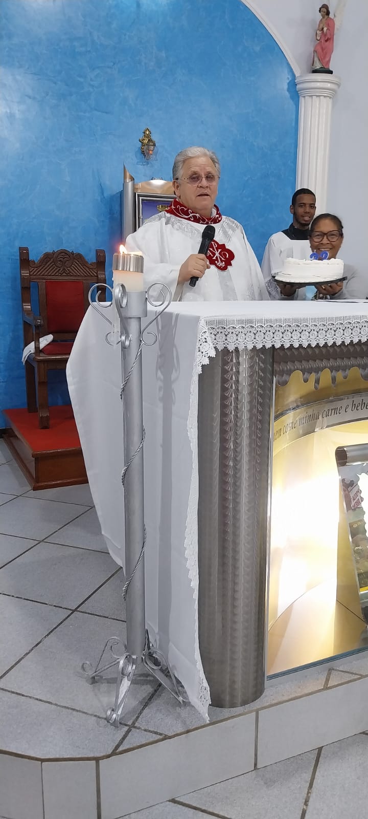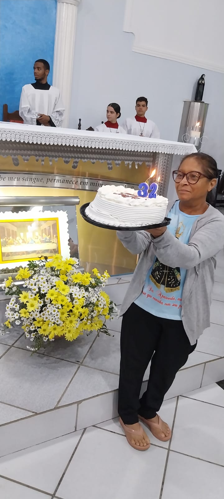 A Missa foi presidida pelo Pároco da Paróquia São Geraldo Magela, Padre Aloísio Vieira, e logo após, aconteceu uma partilha em comemoração ao trigésimo segundo aniversário, e que venham muitos outros aniversários a serem celebrados.
