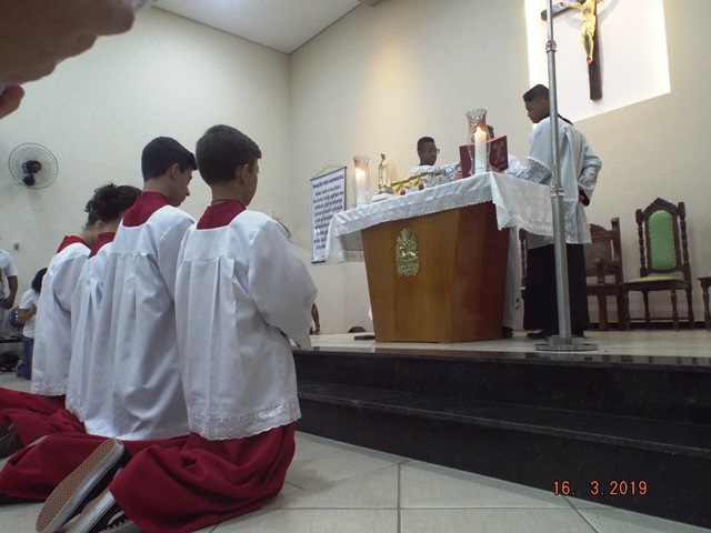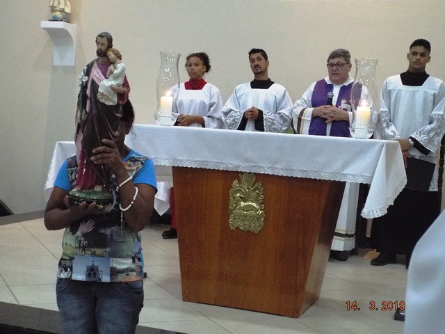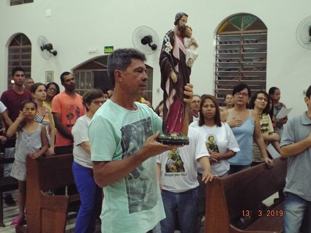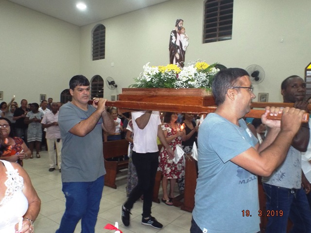 Antecedendo a solenidade, tivemos um tríduo preparatório que serviu praticamente de um retiro espiritual, pregado pelo nosso vigário padre Sergio Henrique. Na oportunidade, Pe. Sérgio apontou-nos Jesus através de São José e muito nos enriqueceu através de suas reflexões. Para a realização das celebrações, contamos com o apoio de três comunidades paroquiais que contribuíram com a festa social celebrada no sábado e muito nos auxiliaram na liturgia da solenidade na terça-feira.