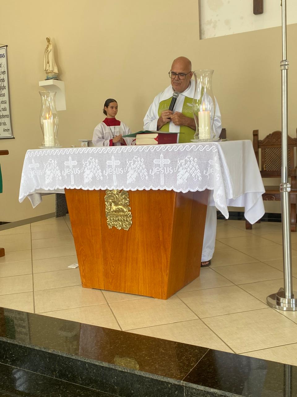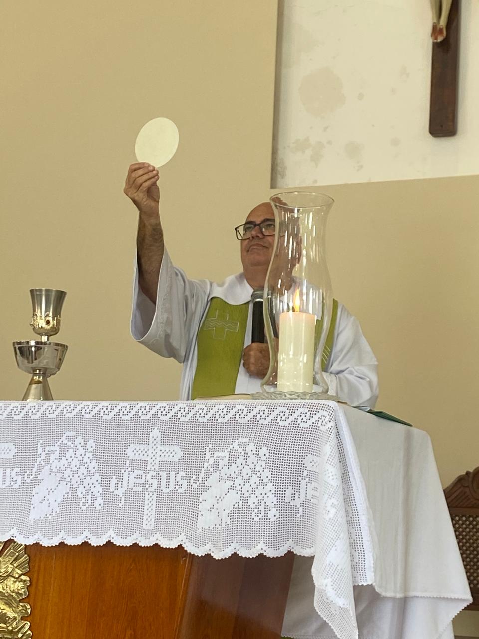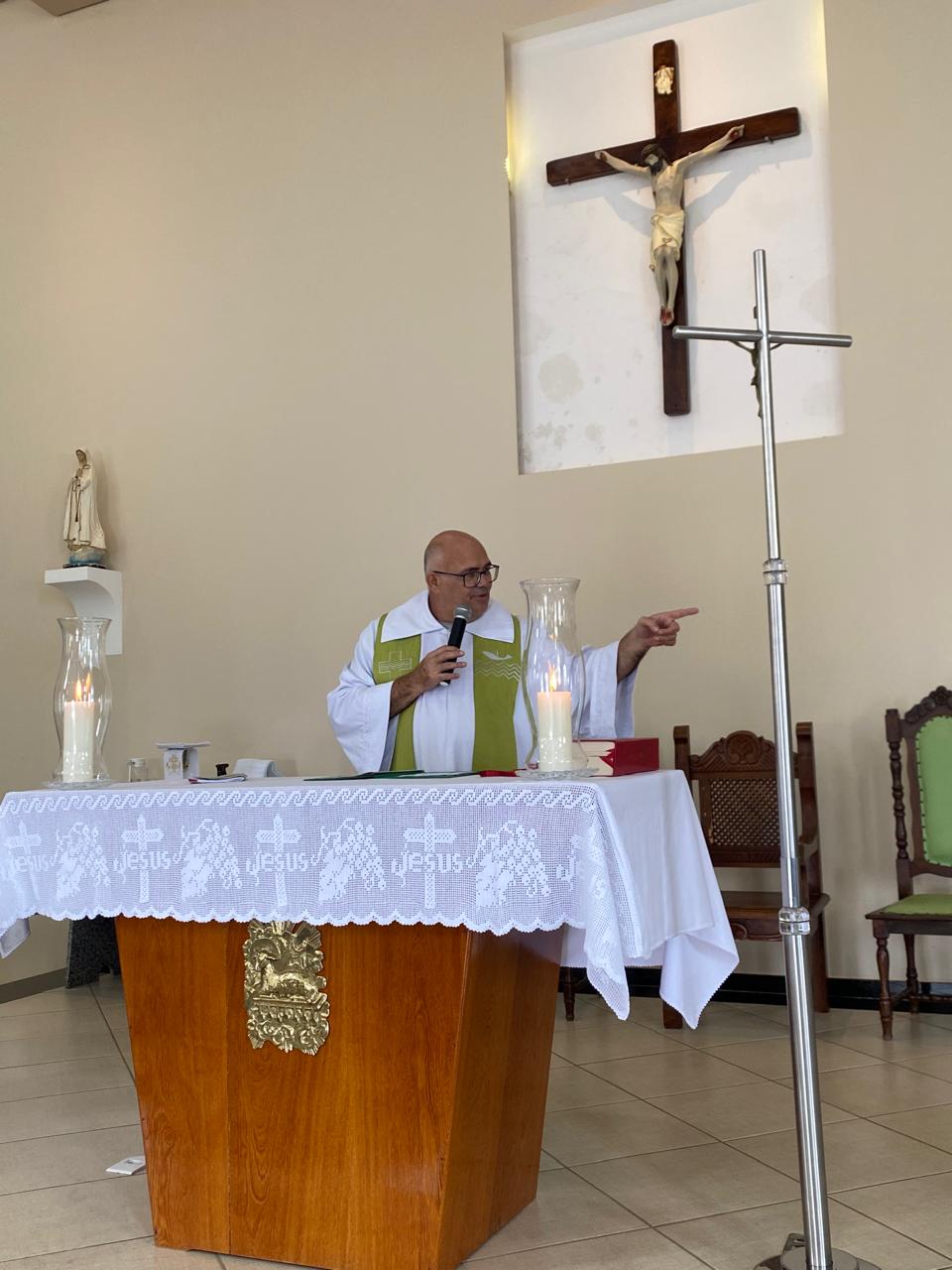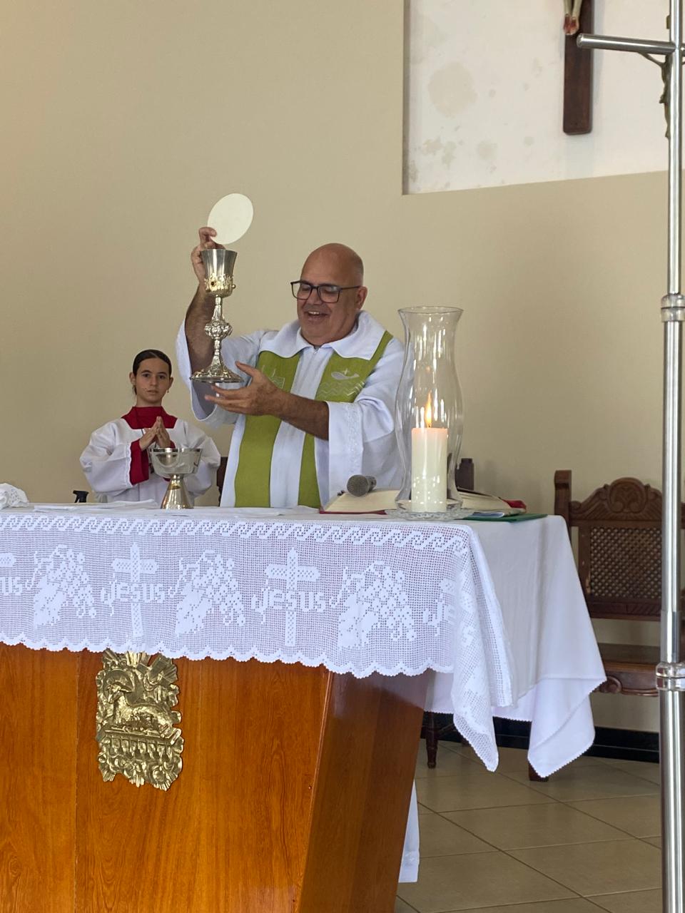 A Santa Missa, celebrada pelo vigário paroquial, padre Geraldo Morini que a luz do evangelho do dia em especial da segunda leitura (Cor 12,12-30) refletiu com os presentes a fala do apostolo Paulo dizendo ao povo de Corinto: “o corpo é um, embora tenha muitos membros, e como todos os membros do corpo, embora sejam muitos, formam um só corpo, assim também acontece com Cristo”. Assim também é uma comunidade, muitos membros mas todos legado a cabeça que é Cristo Jesus. Lembrou dos inúmeros padres que já celebraram nesta comunidade até alguns já falecidos e estão na memória do povo de Deus.