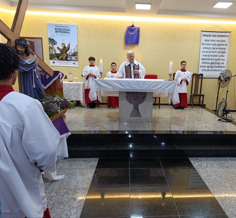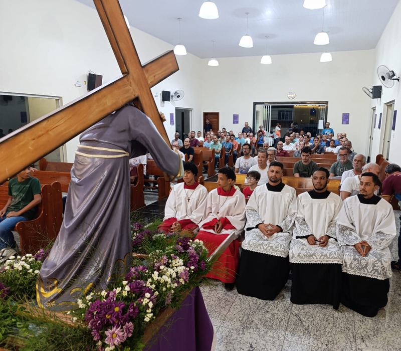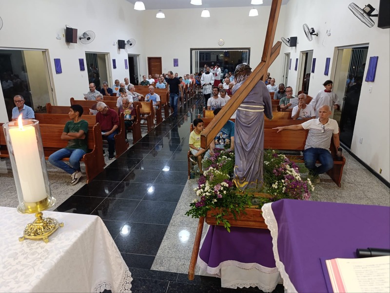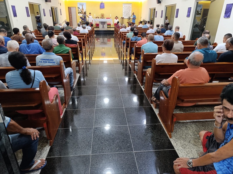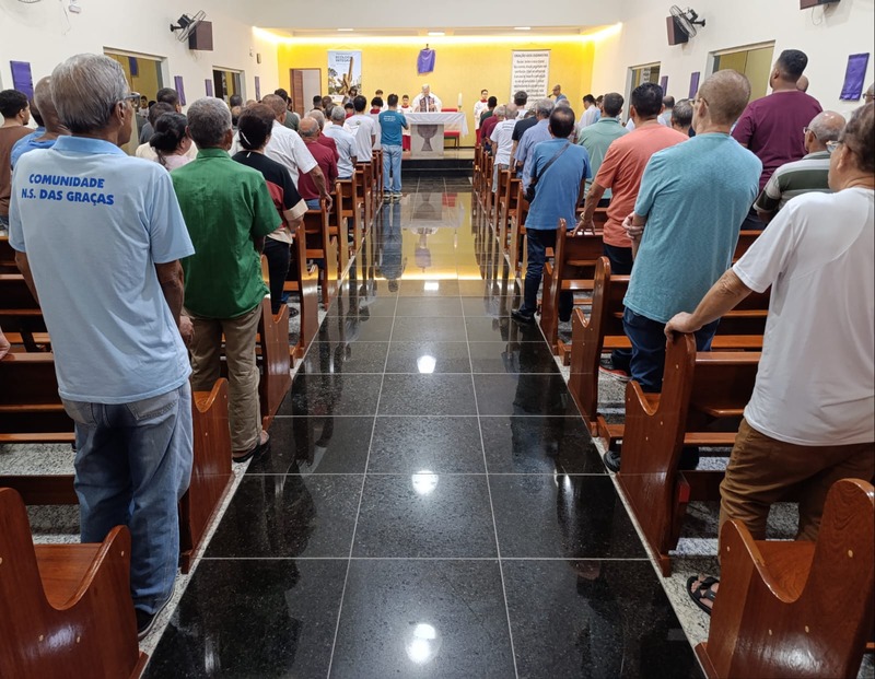Nesta terça feira da Semana Santa dia 15 de abril de 2025 às 19:30h a Matriz São Geraldo Magela, no bairro Bom Jardim, e a Comunidade São João Batista no bairro Esperança, receberam os fiéis para Celebração Penitencial para os homens, momento de profunda espiritualidade e reconhecimento que somos pecadores e necessitados da misericórdia divina para podermos celebrar bem a Páscoa.