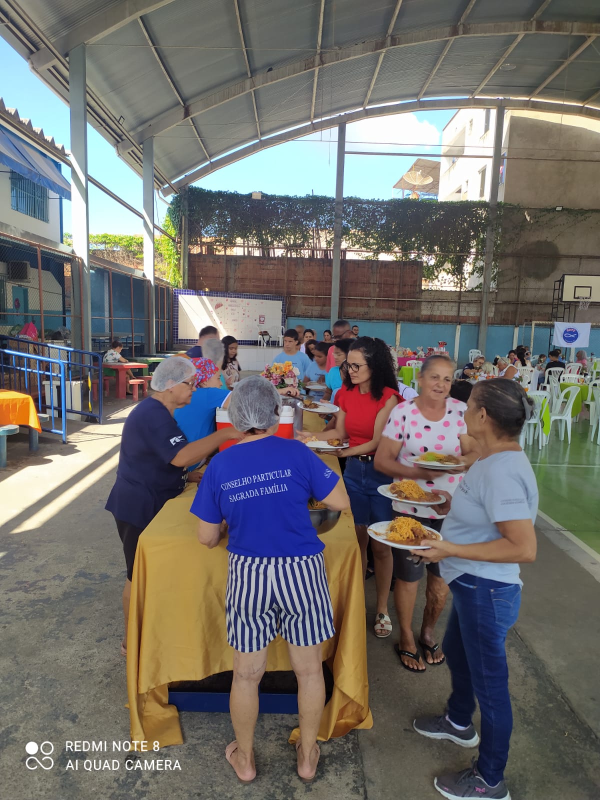 No domingo, dia 19/05/2024, das 11:00 às 15:00 horas, aconteceu na Escola Municipal Henrique Freitas Badaró que fica localizado na Rua Bétula, número 222, bairro Esperança em Ipatinga (MG) um almoço beneficente para as famílias assistidas e vicentinos do Conselho Sagrada Família.