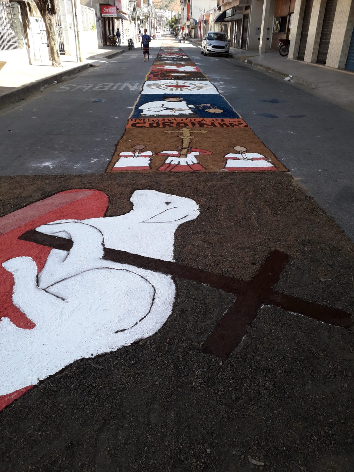 Na parte da manhã, foi realizada a confecção dos tradicionais tapetes, momento que contou com a presença e contribuição de representantes das nove comunidades da nossa Paróquia.