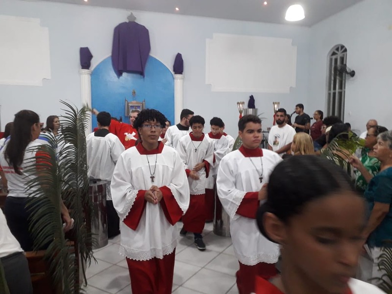 As Missas de Ramos no bairro Bom Jardim, foram presididas pelo Padre Geraldo Ildeo às 8 horas da manhã, e às 18 horas pelo Padre Dirceu Pacífico, ambos auxiliados pelo Diácono Rogério. No bairro Esperança, a Missa de Ramos foi presidida pelo Vigário Paroquial, Padre Geraldo Morini de Almeida e com o auxílio do Diácono Henrique.