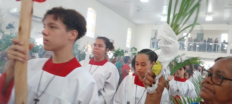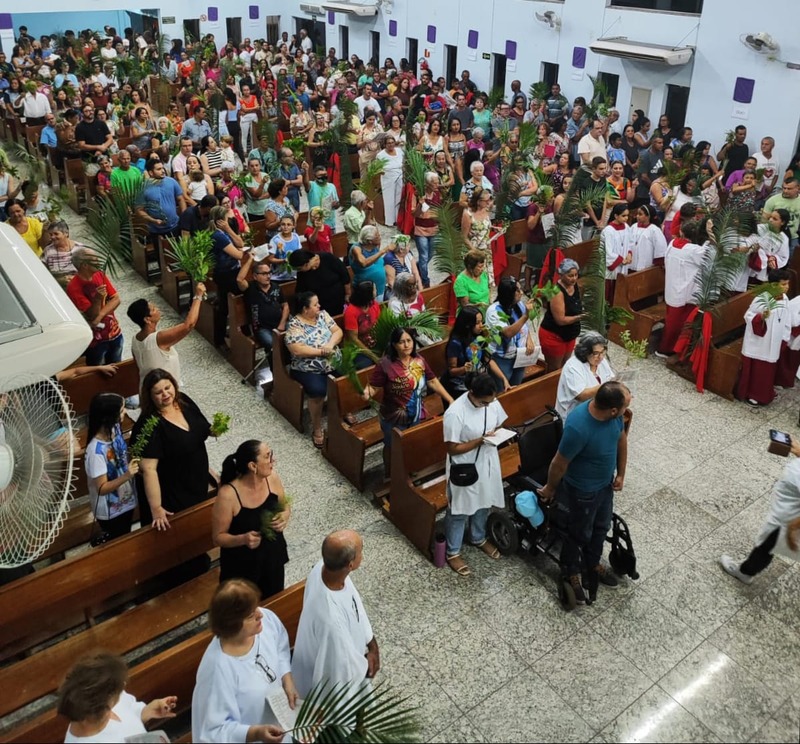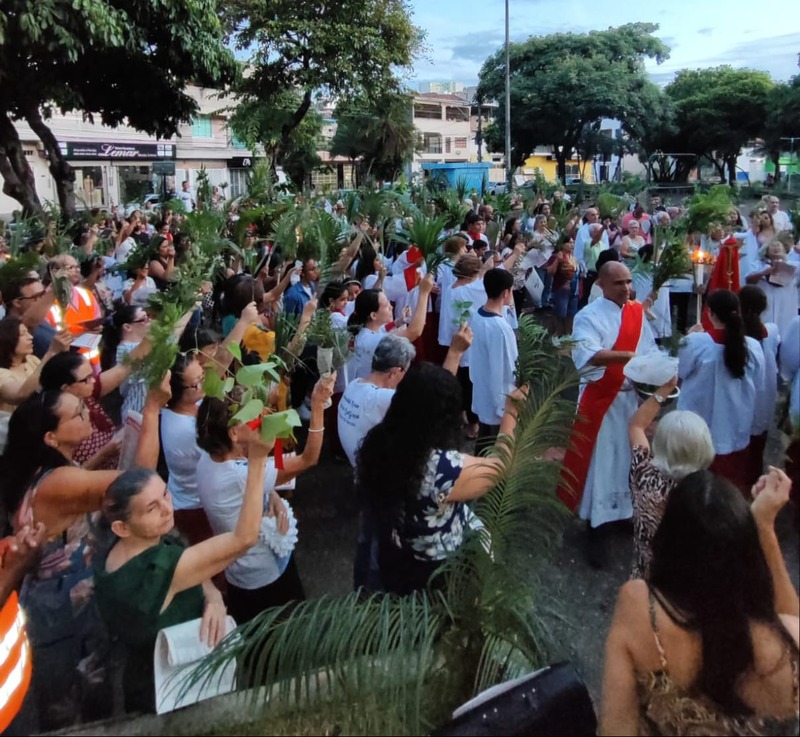 Os Fiéis da Paróquia São Geraldo Magela, da cidade de Ipatinga, celebraram no dia 24 de março de 2024, o Domingo de Ramos, com muitas pessoas em procissão pelas ruas do bairro Bom Jardim e Esperança. O início da festa de Ramos, começou às 8 e 18 horas na Praça Central do Bom Jardim e às 18 horas no Esperança.