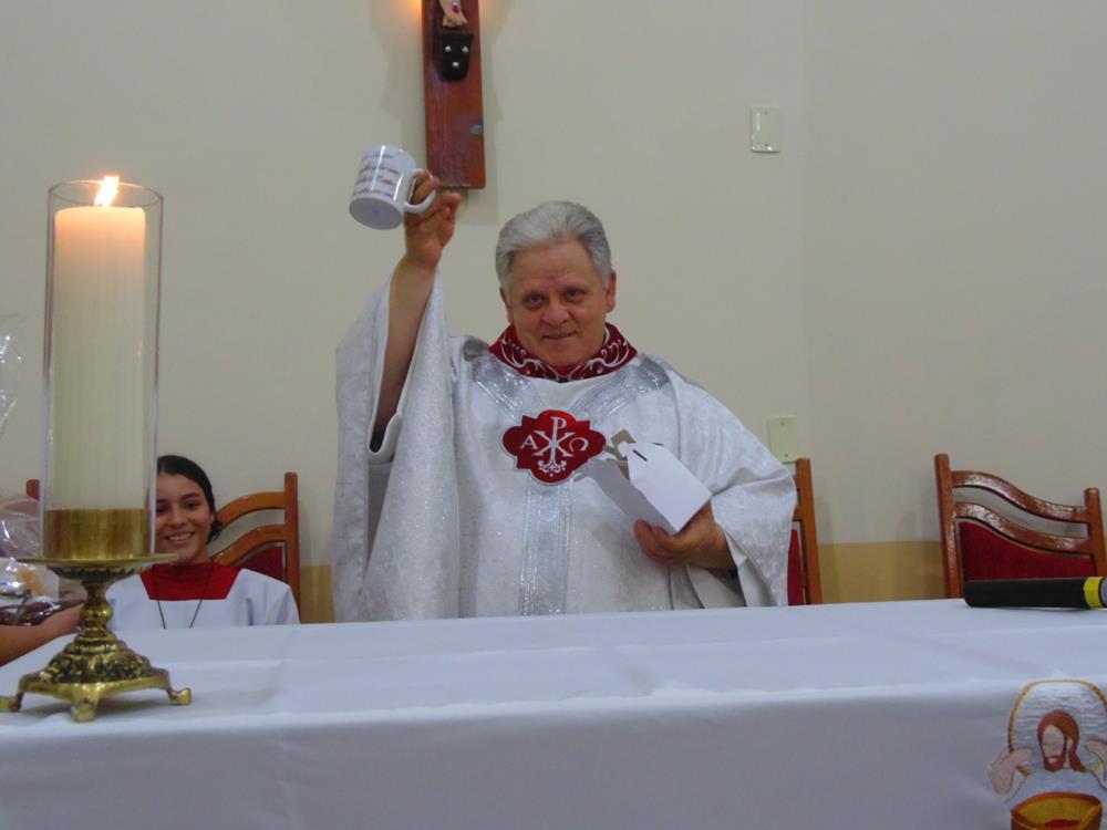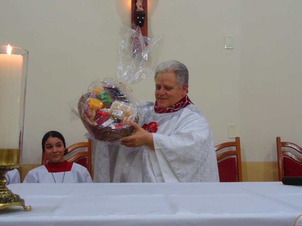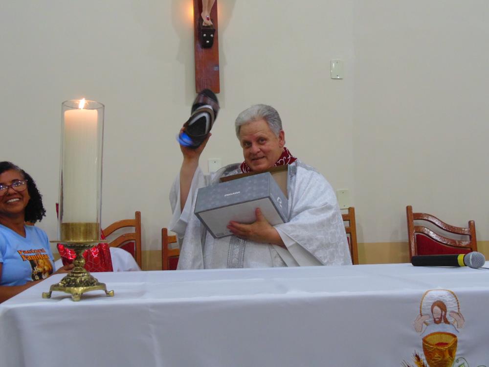 Neste dia também foi dado glorias a Deus pelo aniversario de 32 anos de vida sacerdotal do padre Aloísio Vieira com direito a presentes e confraternização.
