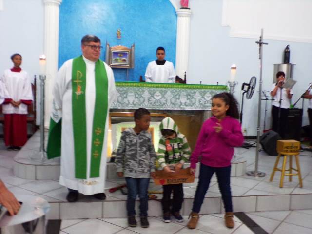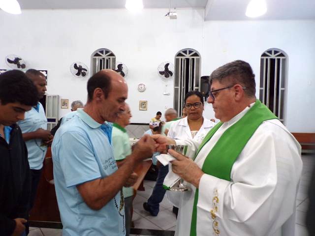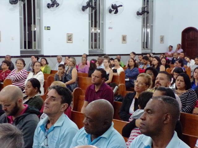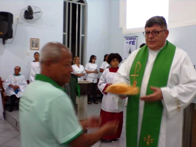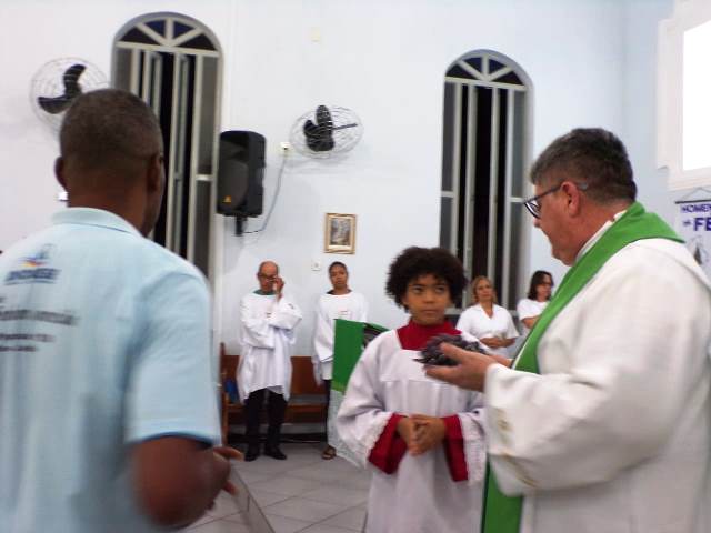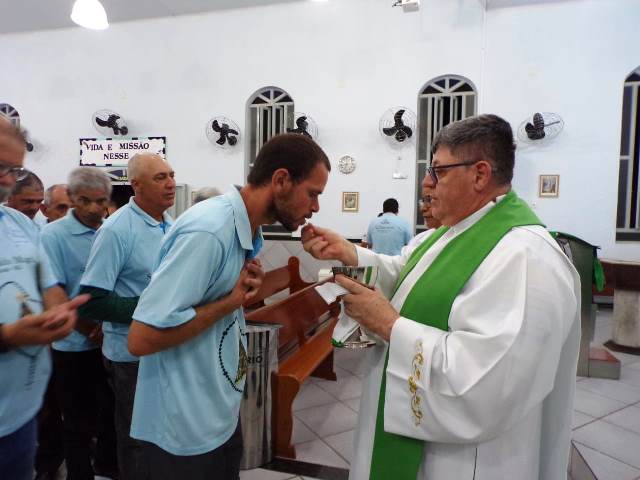 Padre Sérgio Henrique presidiu a Santa Missa ressaltando em sua homília que: “o terço dos homens é um grande movimento da Igreja formado por homens, não por homens que não tem nada a fazer… mas por homens de fé, que se unem toda semana para juntos rezar o terço, e através do terço muitas vidas e acima de tudo famílias ser restauradas, encorajando-os a serem perseverantes na oração e a serem exemplos para tantos outros homens que ainda não participam deste movimento e que não conhece o poder da oração do Santo Terço”. No encerramento da Santa Missa foi realizada uma confraternização.