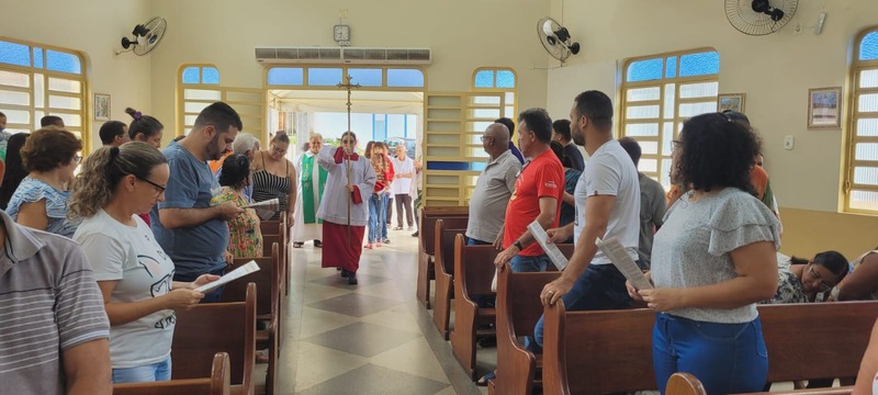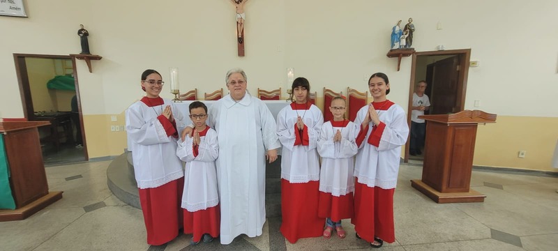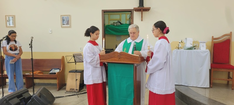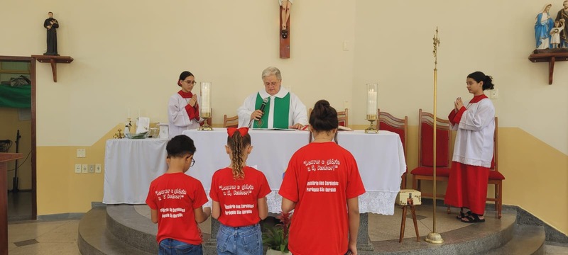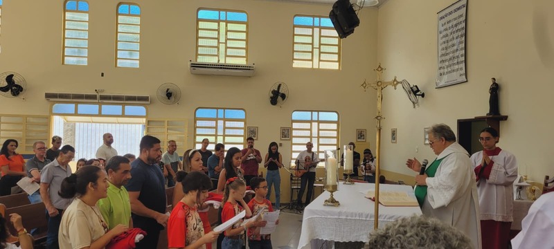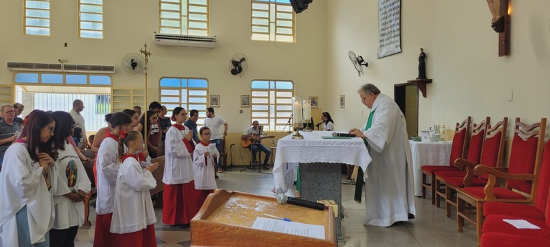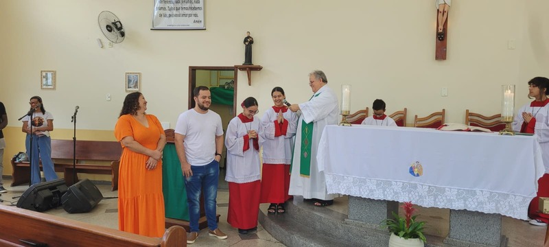 No dia 14/01/24 às 08:30h na comunidade Sagrada Família foi celebrada a missa de investidura dos coroinhas; e apresentação da nova coordenação do CPC da comunidade. A missa foi presidida pelo padre Aloísio Vieira e os coroinhas que receberam a investidura foram: Maria Luíza Soares Emerick, Ana Júlia Alves de Oliveira, João Lucas Vidal Venâncio. As novas coordenadoras da comunidade são Neida Aparecida e Maria Rita Vidal e secretária Maria Alice Pereira.