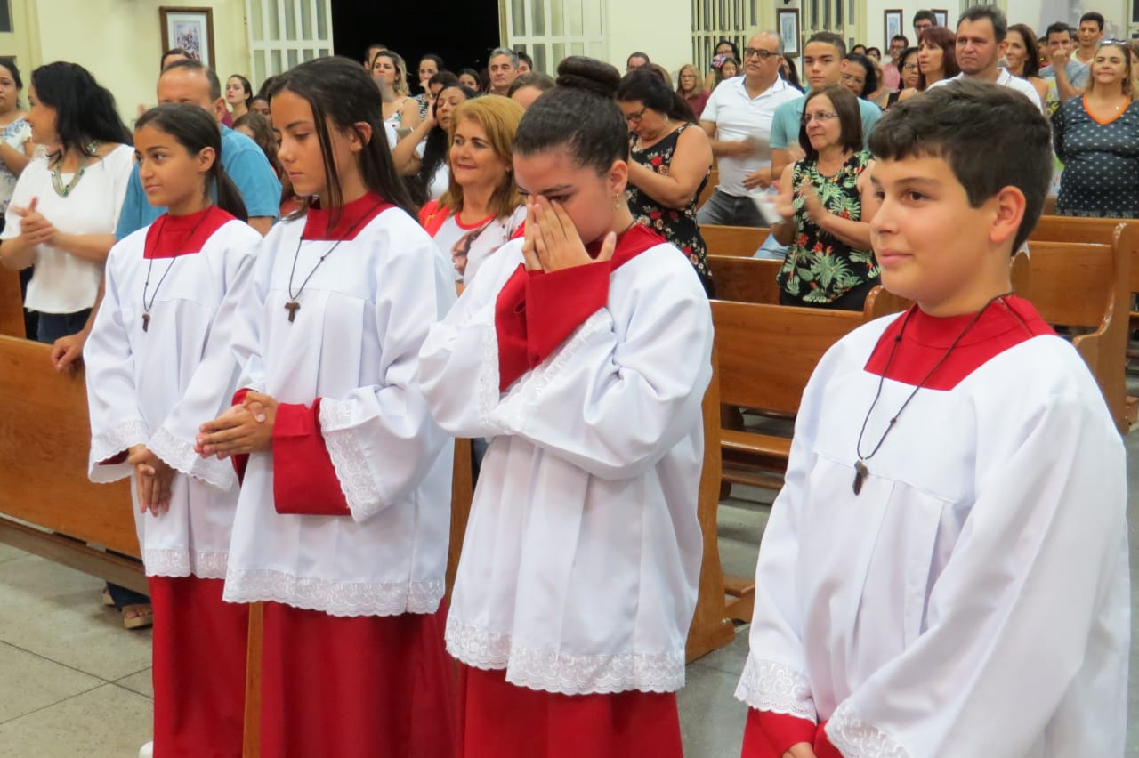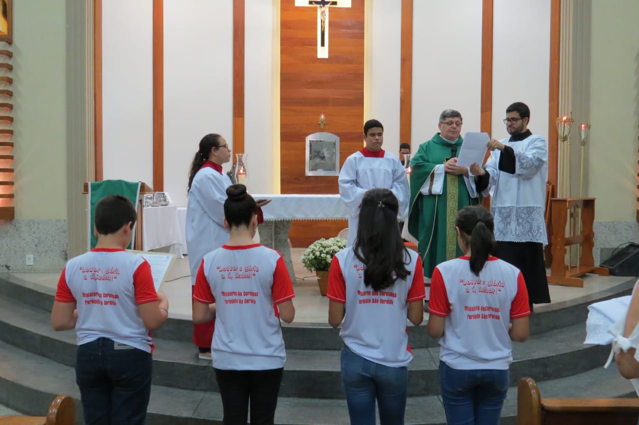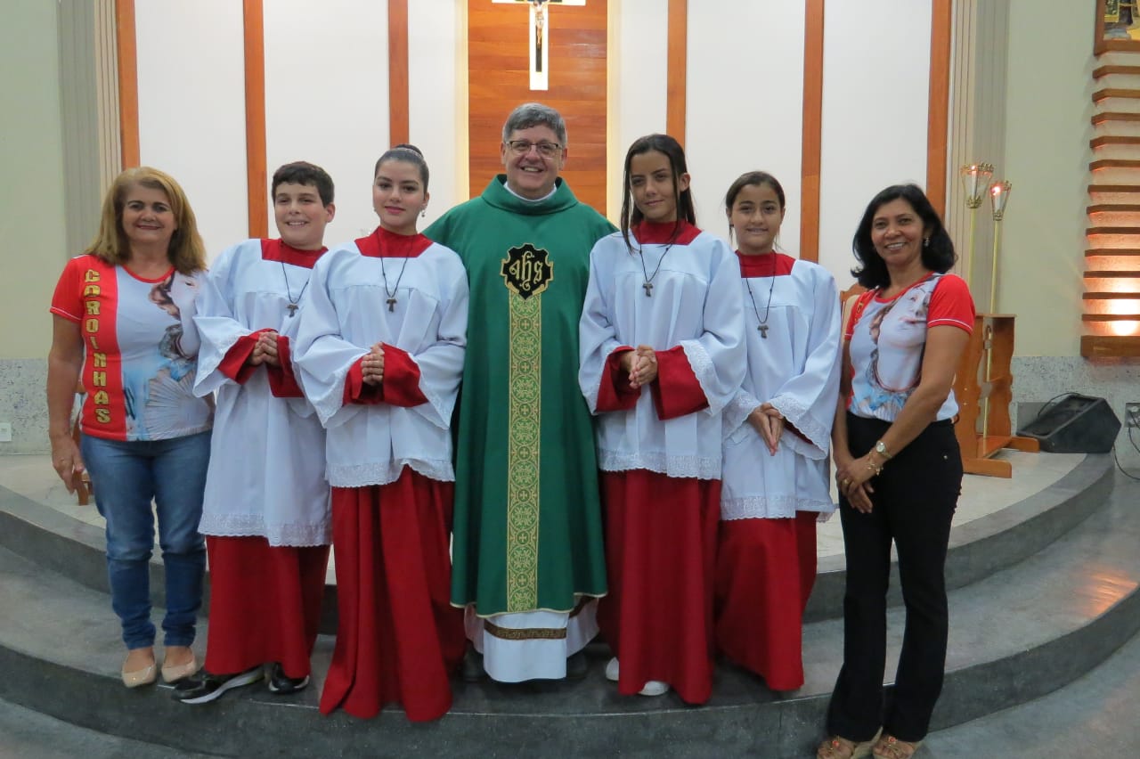 No dia 30 de setembro, às 18 horas, na Igreja São Lucas (Com. Atos dos Apóstolos), foi realizado o envio de quatro novos coroinhas. A Missa foi presidida por padre Sérgio Henrique, que nos enriqueceu com sua homilia e logo em seguida realizou o rito de envio dos coroinhas, que receberam de seus pais as vestes que serão usadas durante a atuação nas missas. Os coroinhas enviados são Carla Figueiredo Faria, Letícia Figueiredo Faria, Karina Alves Figueiredo e Marcelo Ferreira Gonzaga.