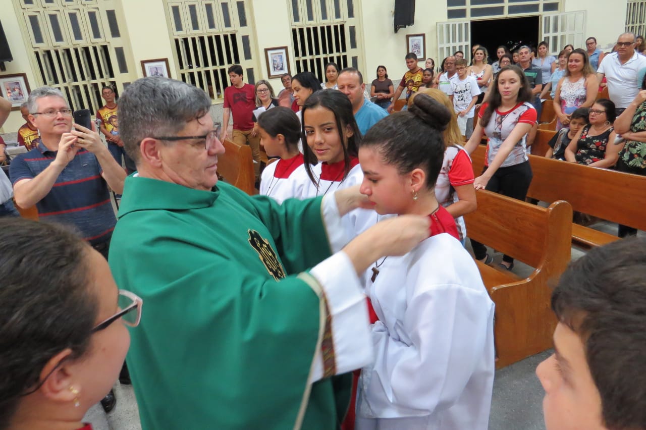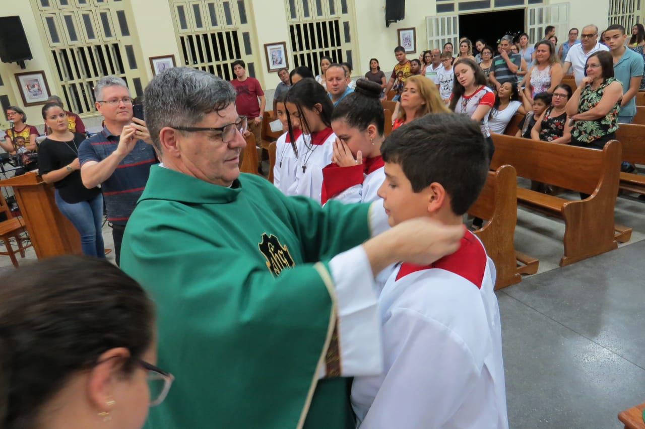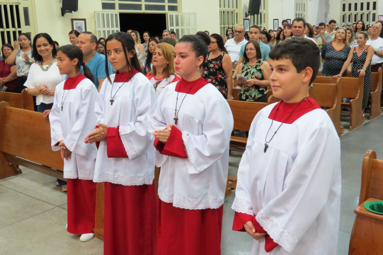 No dia 30 de setembro, às 18 horas, na Igreja São Lucas (Com. Atos dos Apóstolos), foi realizado o envio de quatro novos coroinhas. A Missa foi presidida por padre Sérgio Henrique, que nos enriqueceu com sua homilia e logo em seguida realizou o rito de envio dos coroinhas, que receberam de seus pais as vestes que serão usadas durante a atuação nas missas. Os coroinhas enviados são Carla Figueiredo Faria, Letícia Figueiredo Faria, Karina Alves Figueiredo e Marcelo Ferreira Gonzaga.