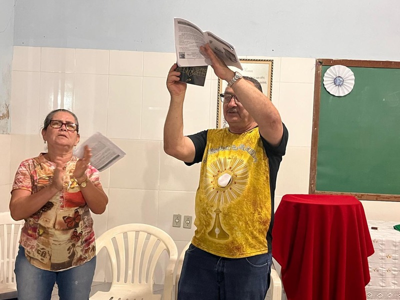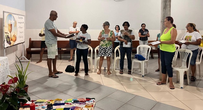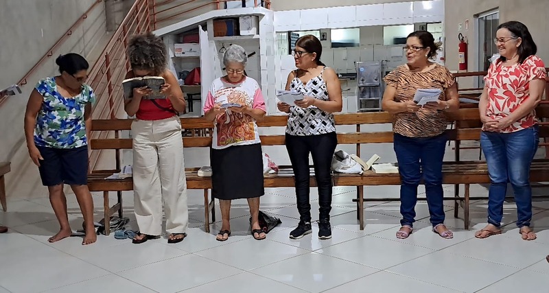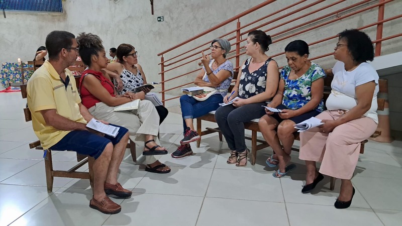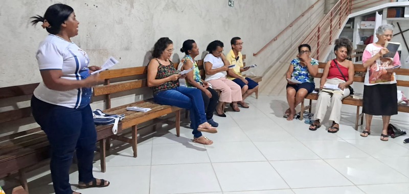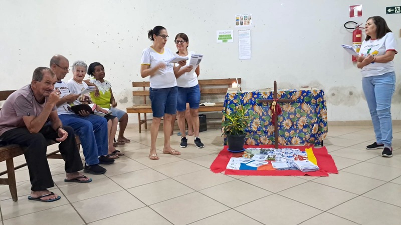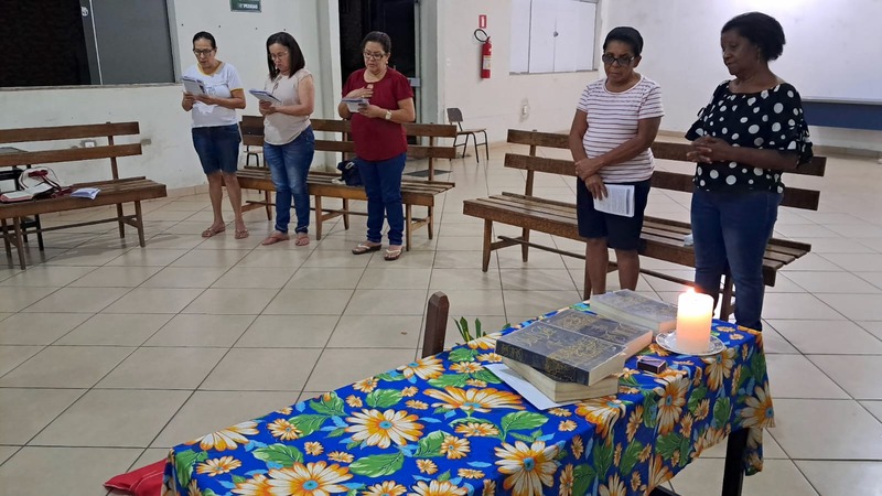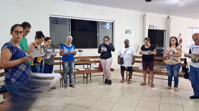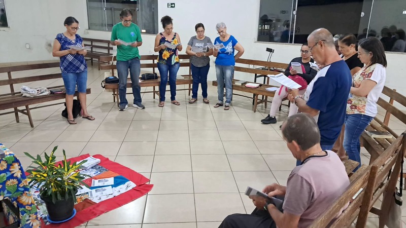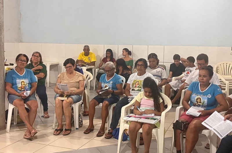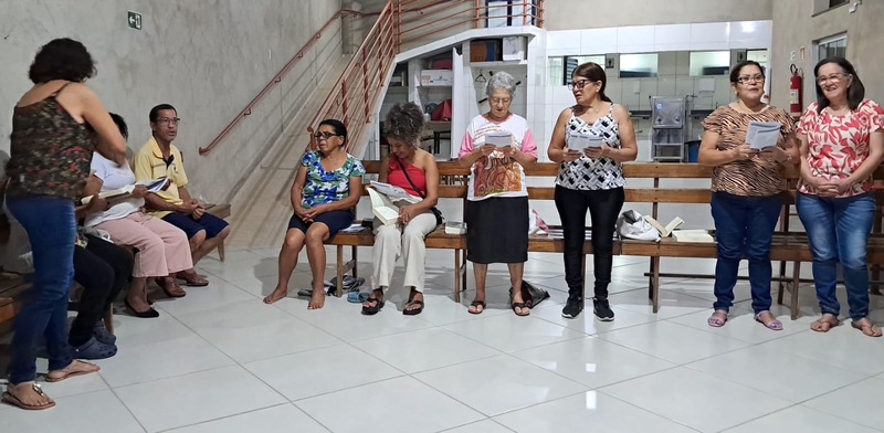 Seguindo uma unidade paroquial, o encontro foi realizado através de leituras, reflexões e dinâmicas. Esses encontros realizados nas Comunidades, tem uma grande importância para os participantes, porque desperta um sentimento de pertença ao Reino de Deus através do aprofundamento da Palavra da Sua Palavra.