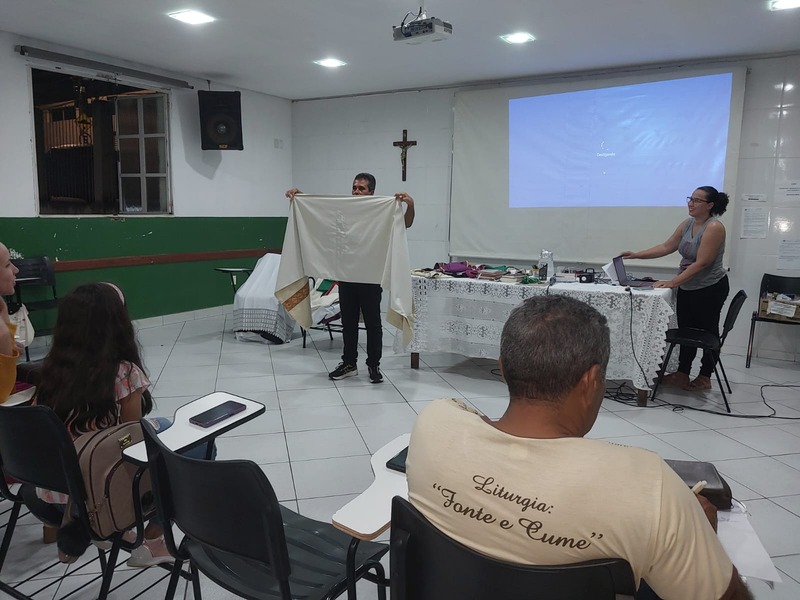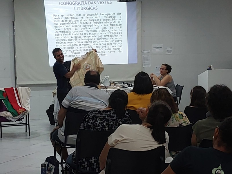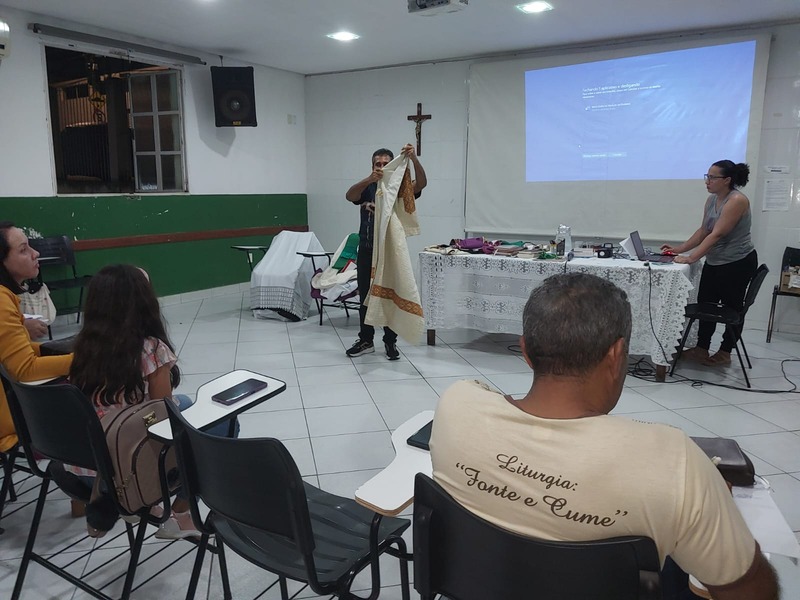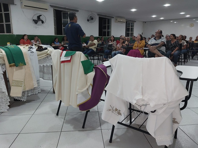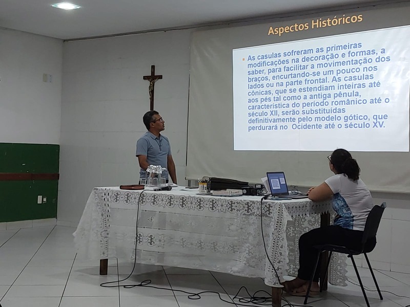 As riquezas dos conteúdos que foram mostrados no encontro, mostraram que nada dentro da Igreja Católica é tirado do nada, e sim de uma forte herança eclesial, que conduziu, conduz e conduzirá o povo através de uma liturgia convicta na busca de mostrar o sentido Divino da Fé através das vestes litúrgicas. A formação foi assessorada pelo Diácono Márcio Rogério.