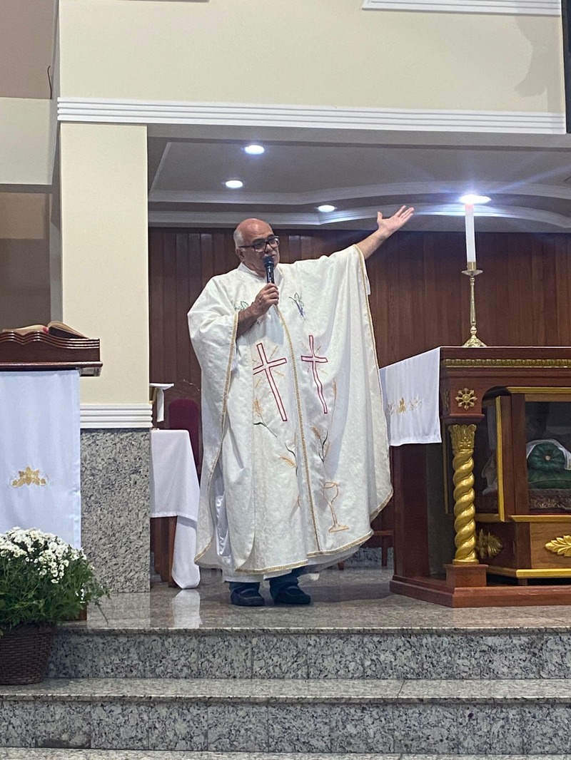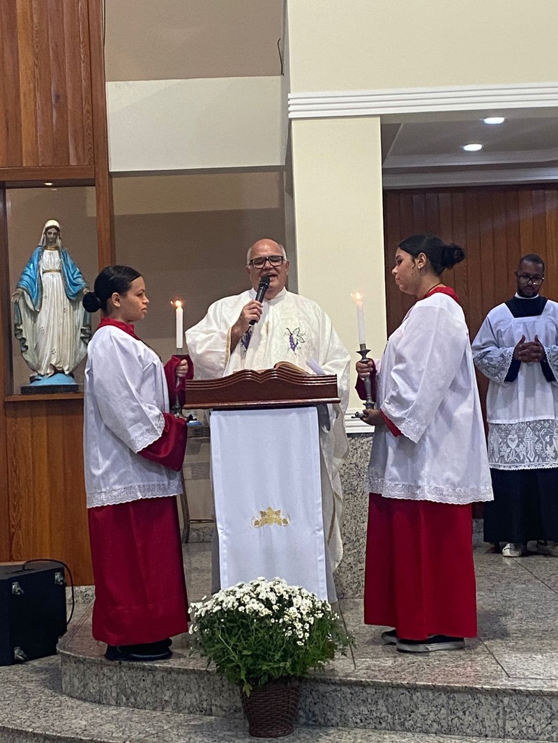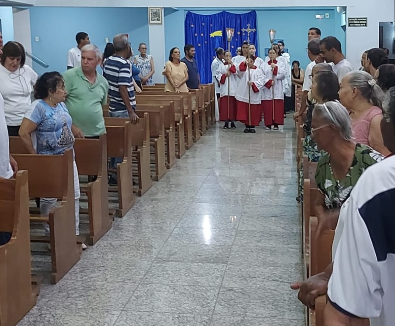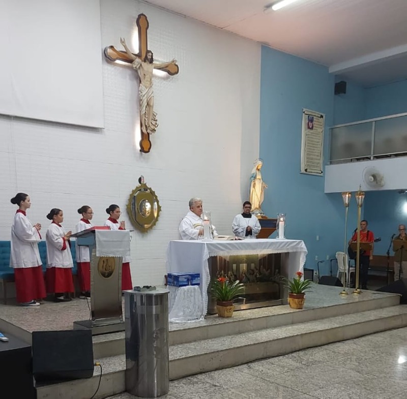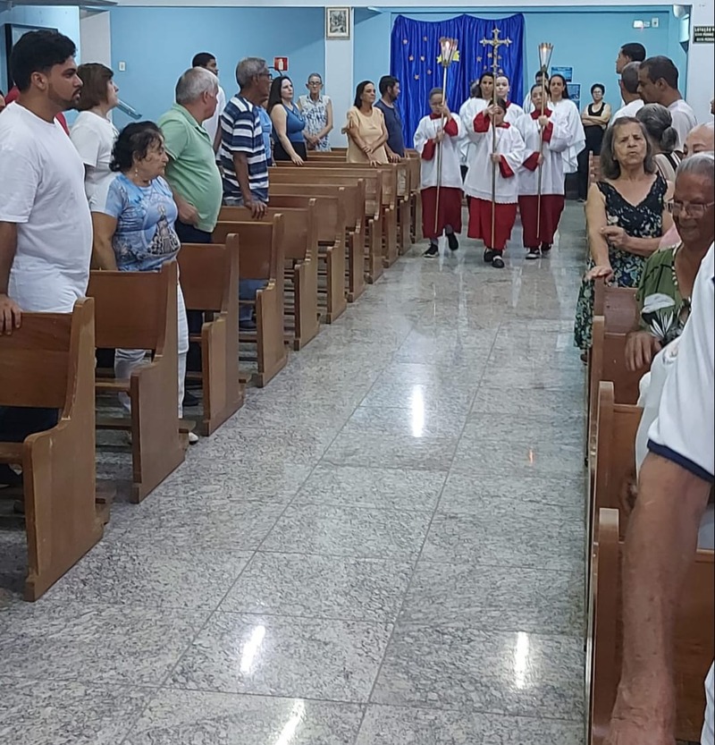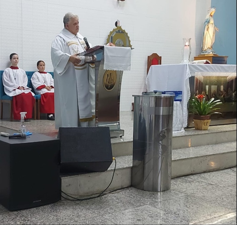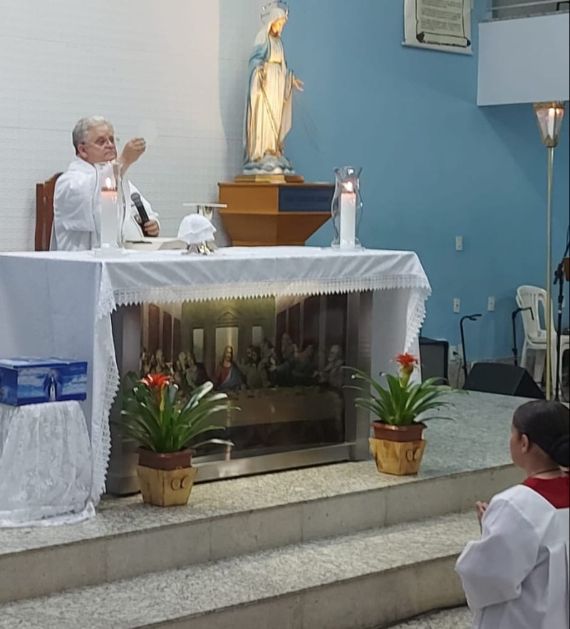 A Santa Missa no Bom Jardim foi presidida pelo Vigário Paroquial, Padre Geraldo Morini e no Esperança pelo Pároco Padre Aloísio Vieira.
