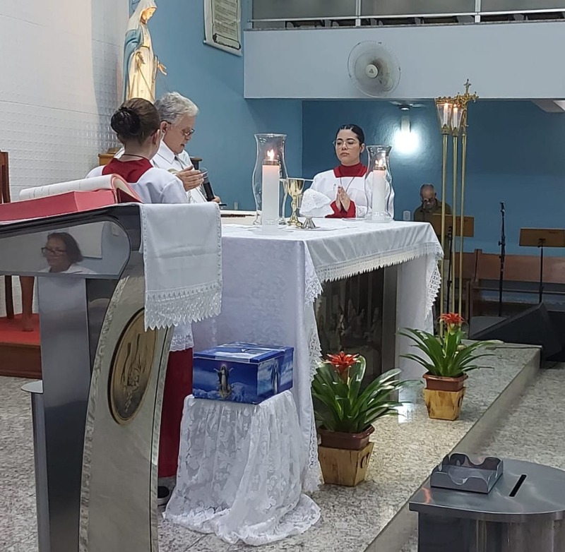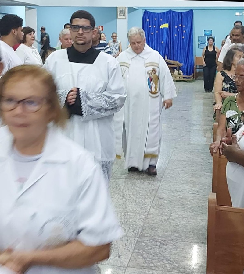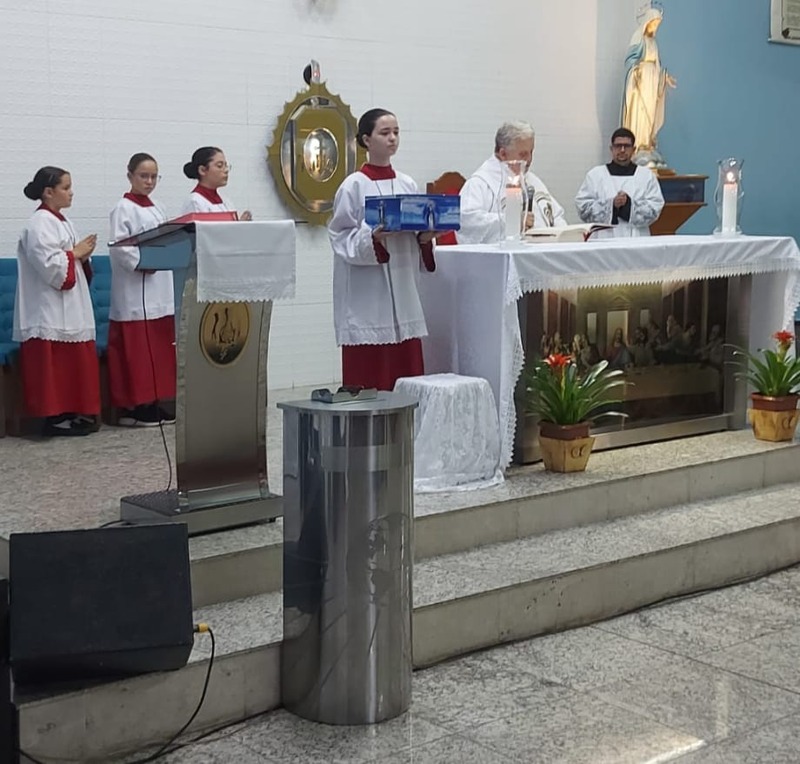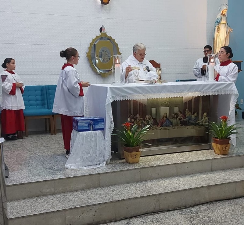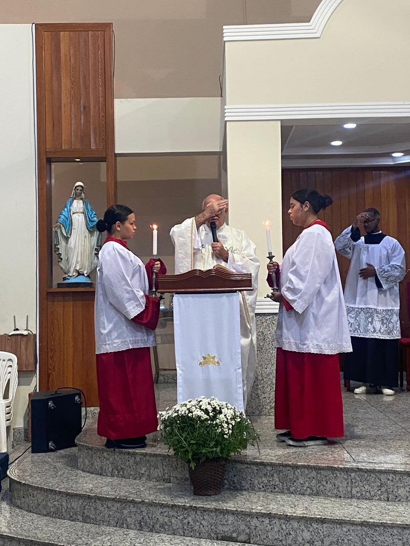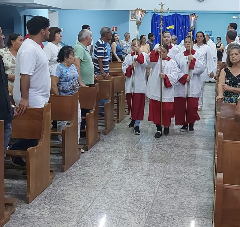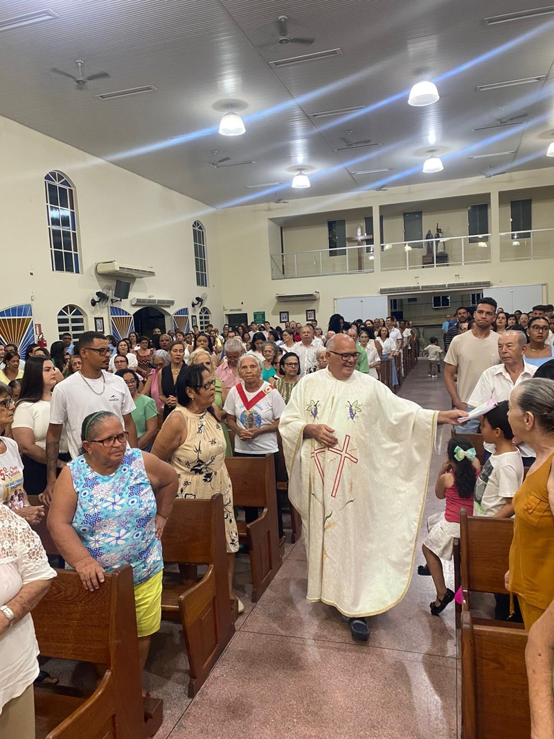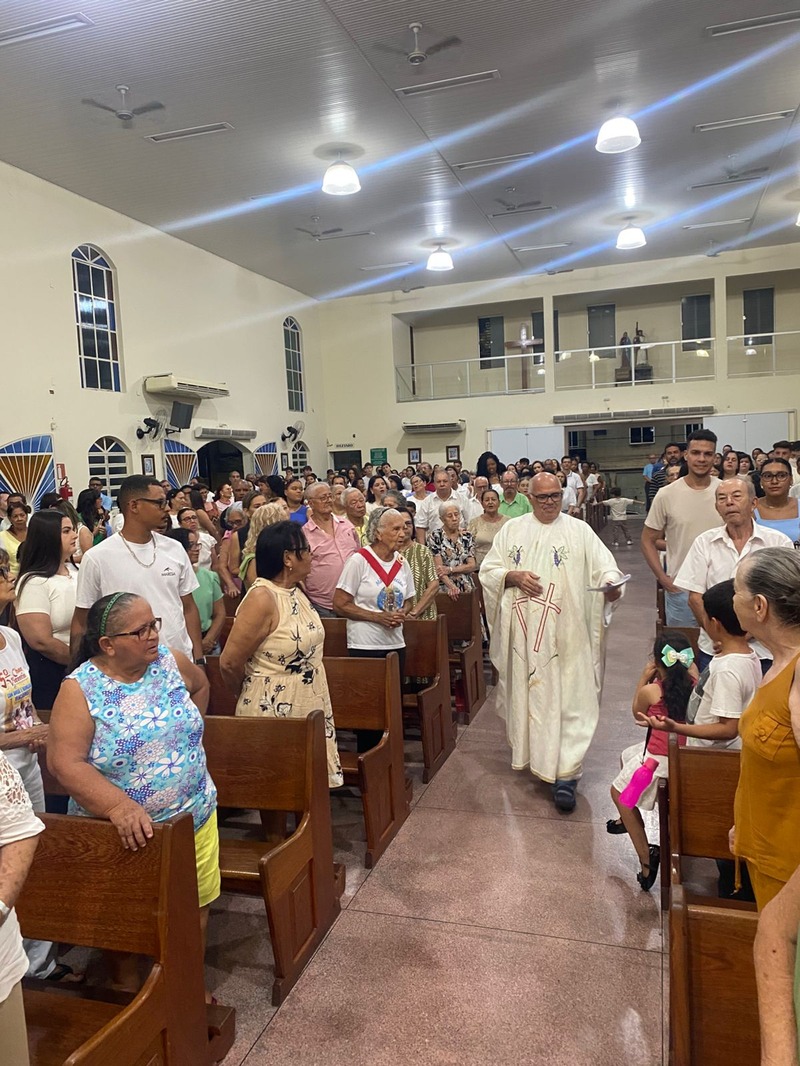 A Santa Missa no Bom Jardim foi presidida pelo Vigário Paroquial, Padre Geraldo Morini e no Esperança pelo Pároco Padre Aloísio Vieira.