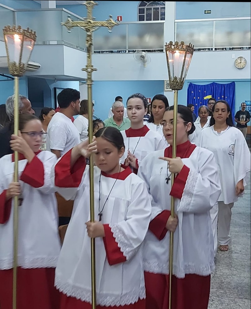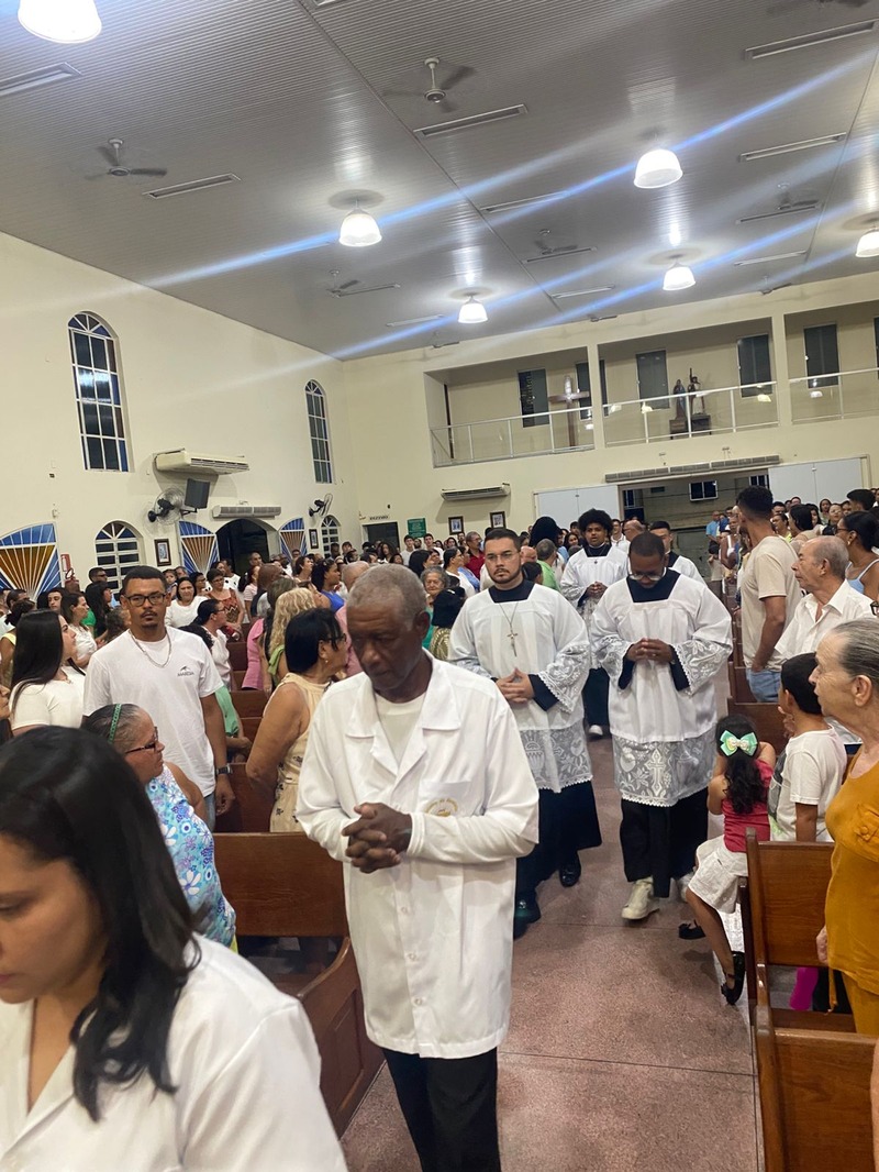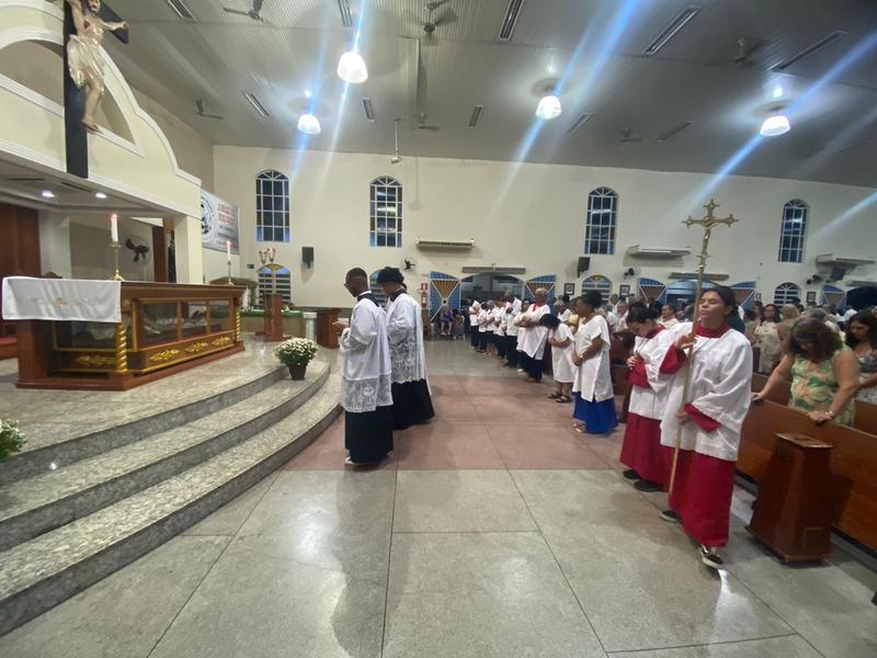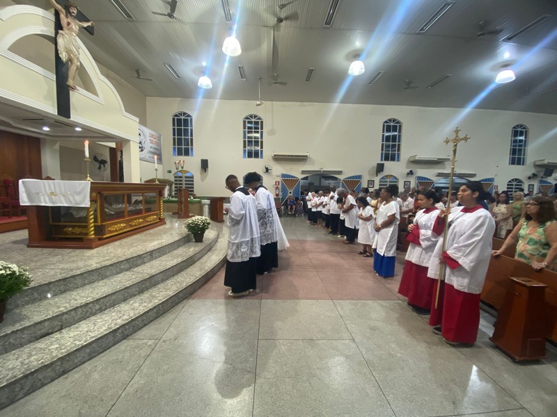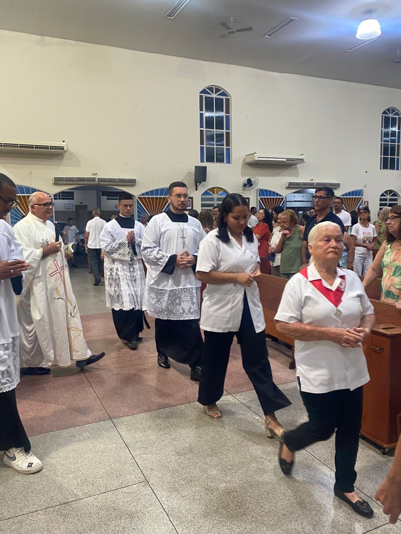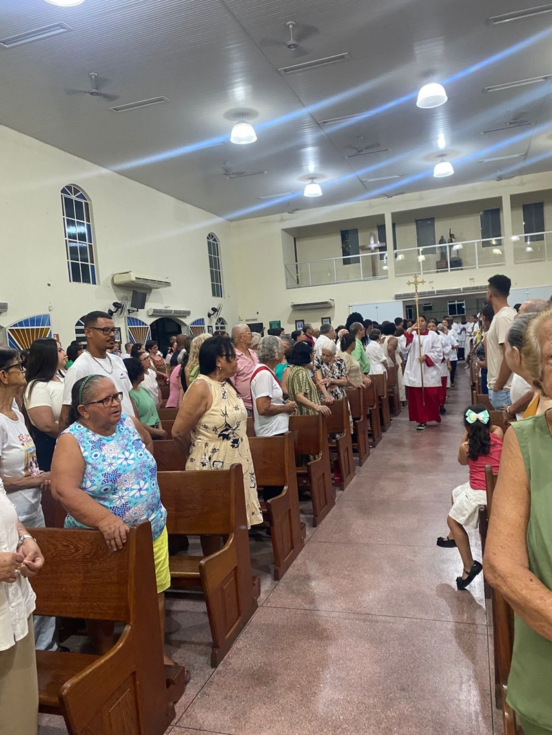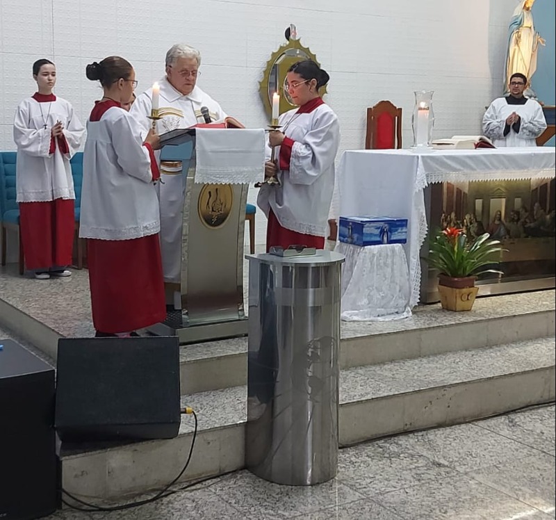 A Santa Missa no Bom Jardim foi presidida pelo Vigário Paroquial, Padre Geraldo Morini e no Esperança pelo Pároco Padre Aloísio Vieira.
