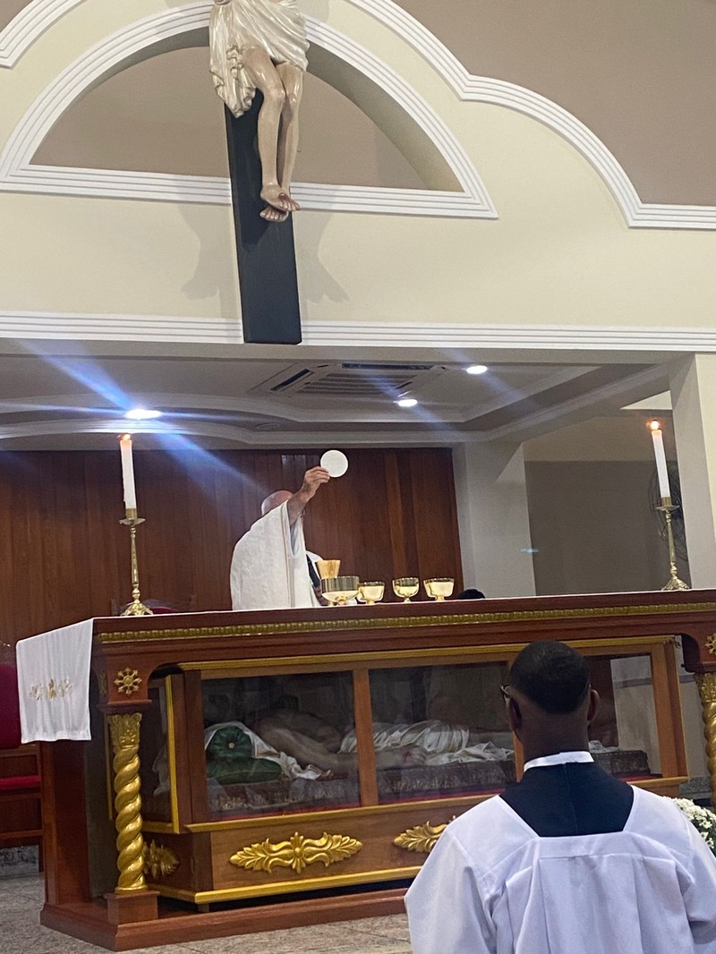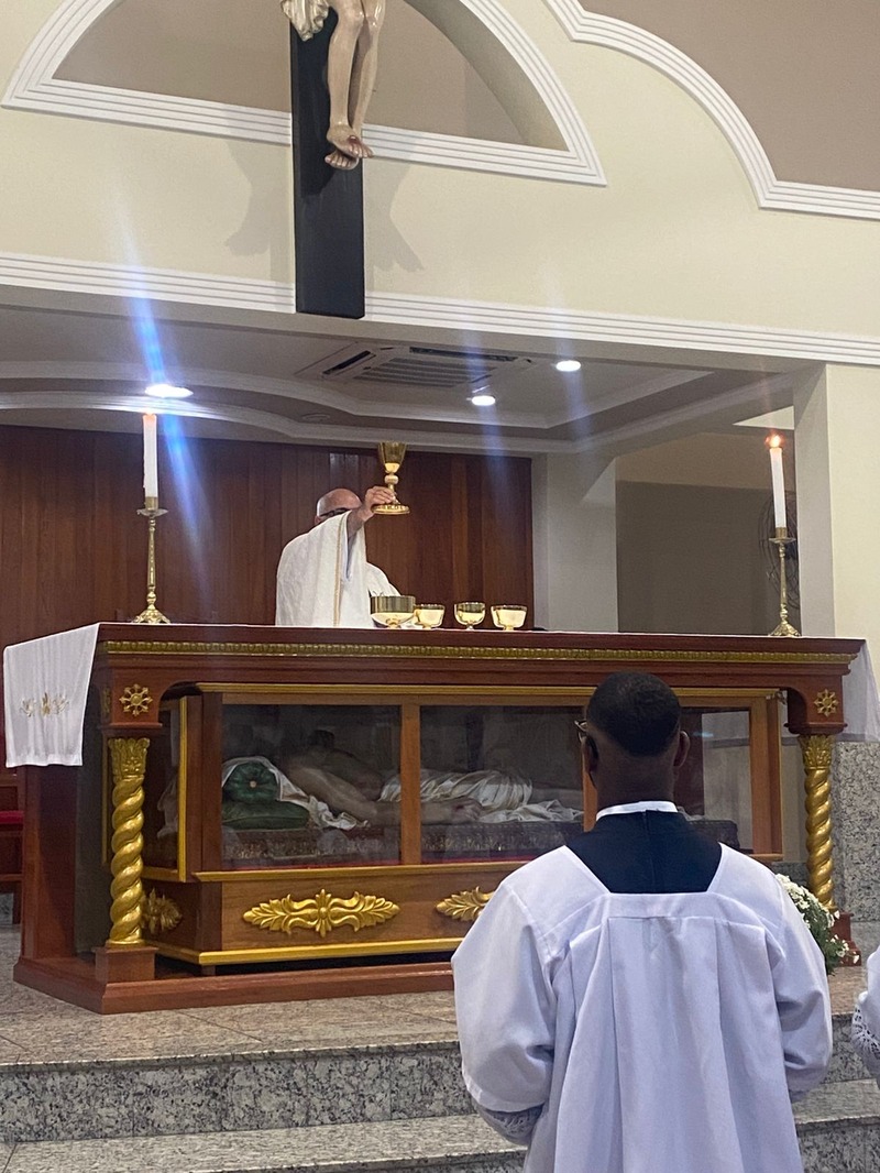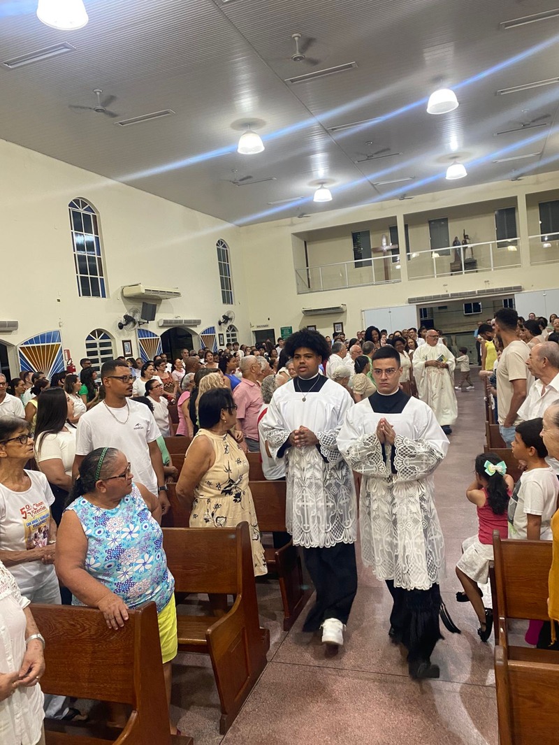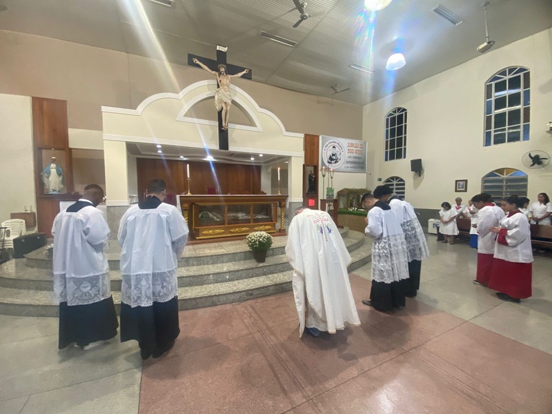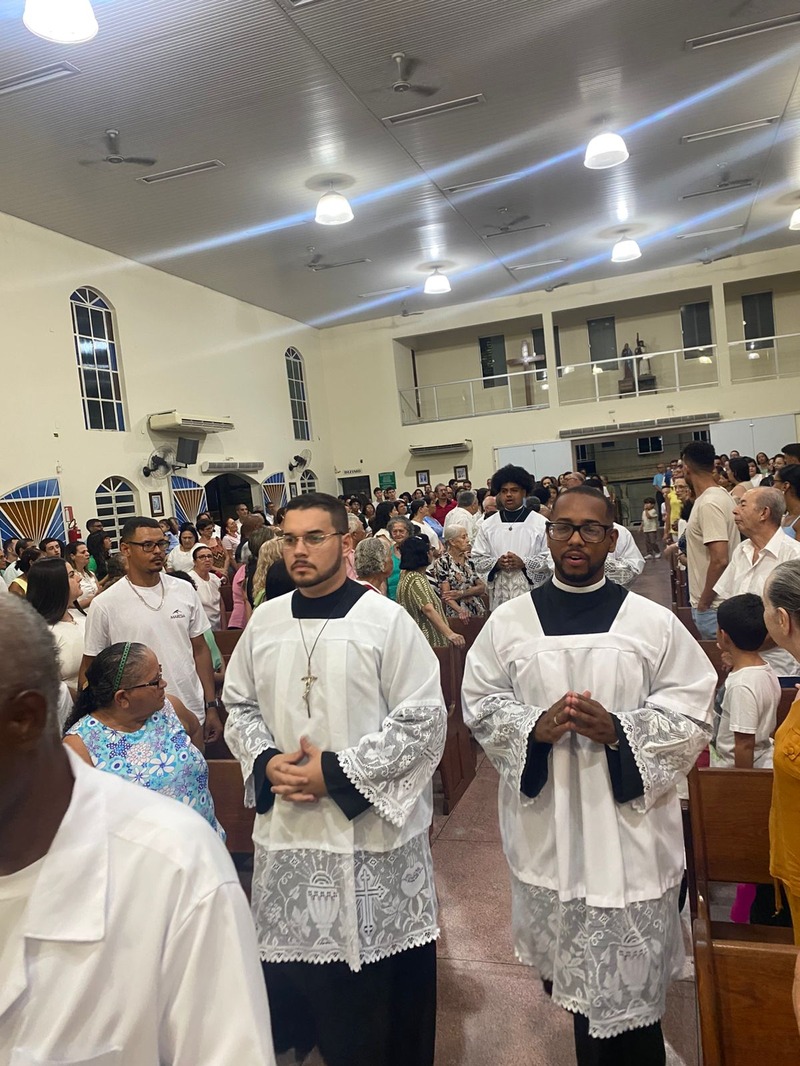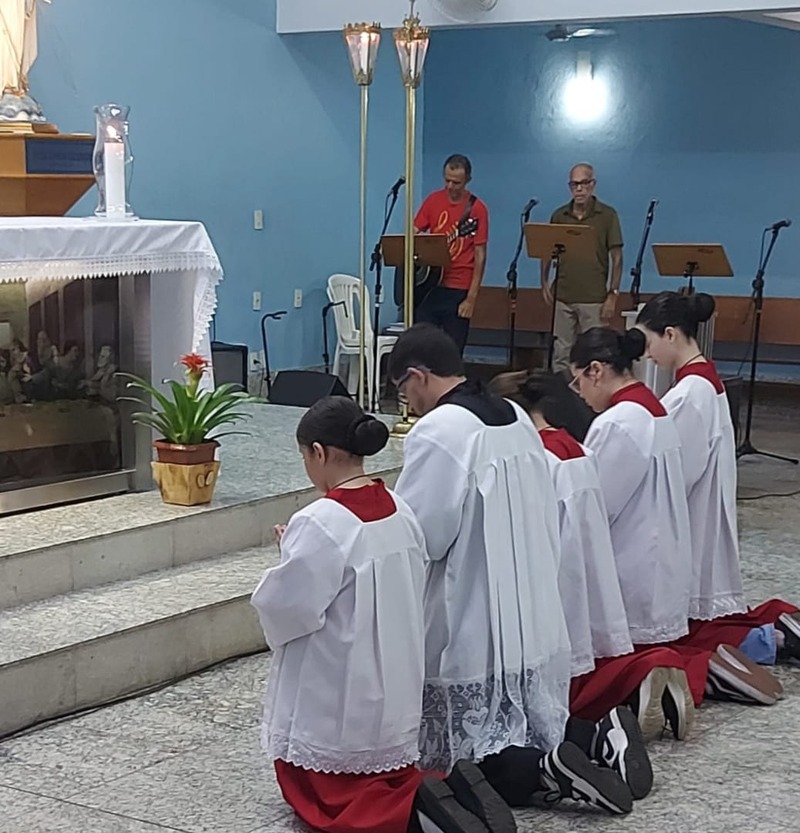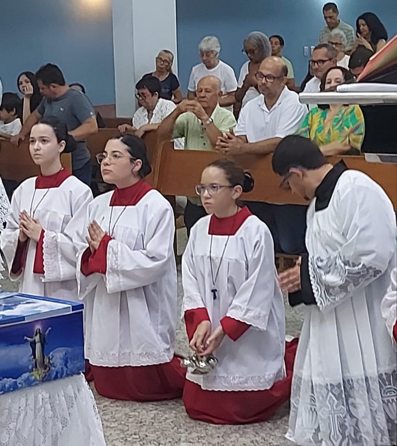 A Santa Missa no Bom Jardim foi presidida pelo Vigário Paroquial, Padre Geraldo Morini e no Esperança pelo Pároco Padre Aloísio Vieira.