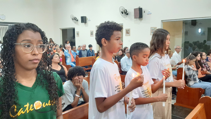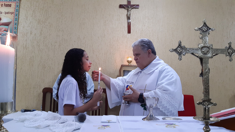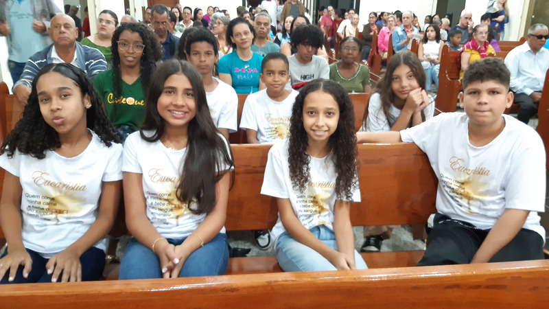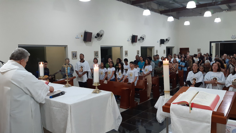 Acompanhados pela catequista Cíntia, familiares e padrinhos, os catequizandos que receberam este sacramento de iniciação cristã foram: Maria Alice Valadares de Assis, Emanuel Felipe Menezes Monteiro Pires, Thiago de Paula Miranda, Matheus Rodrigues Damasceno, Maria Eduarda Muniz Bartolomeu, Micaely Veridiana Ribeiro e Lara Martins Gomes.