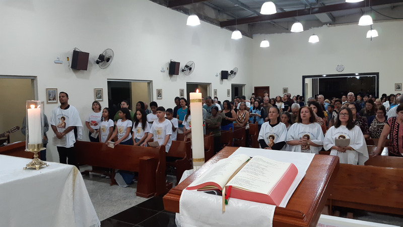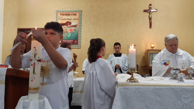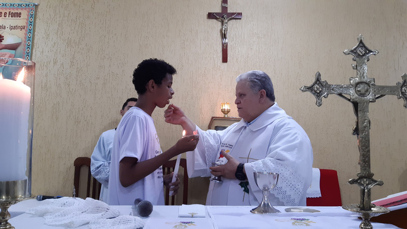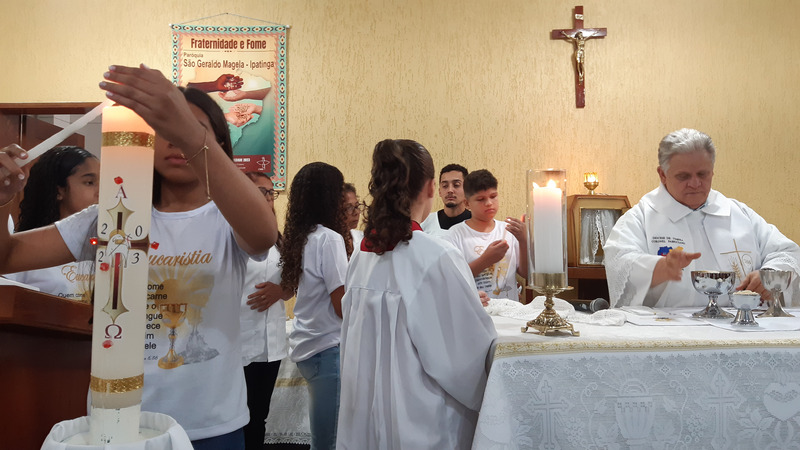 Durante a Solenidade da Ascensão do Senhor, celebrada pelo pároco, padre Aloísio Vieira, aconteceu na Comunidade São João Batista – Paroquia São Geraldo Magela em Ipatinga-MG, a Primeira Eucaristia para 07 catequizandos.