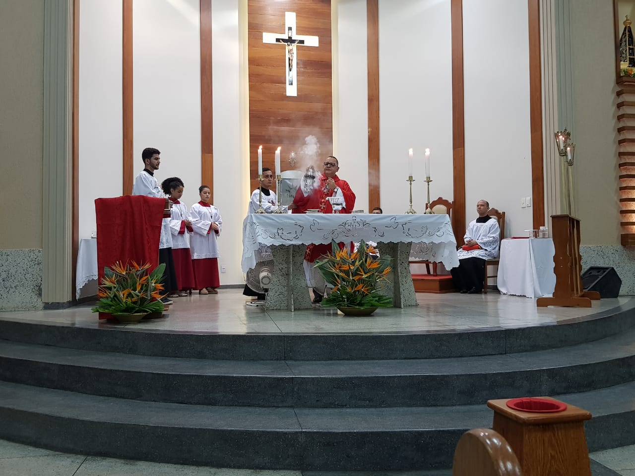 Domingo, dia 27, na Missa das 18h, celebramos a festa de São Lucas. Durante a homilia, padre Hideraldo destacou que convertido pelo Apóstolo Paulo, Lucas conheceu o cristianismo e em suas narrativas (Evangelho de São Lucas e livro dos Atos dos Apóstolos) ele conta a história da natividade de Jesus, e detalhes da vida de Maria, o que sugere que apesar de não ter convivido com o Cristo, São Lucas conviveu com a Santa Maria. Também é atribuído à São Lucas o primeiro registro artístico (pintura) da Virgem Maria. São Lucas é considero padroeiro dos médicos, artesãos e solteiros.