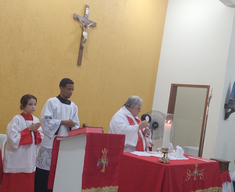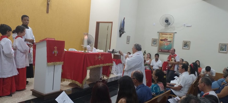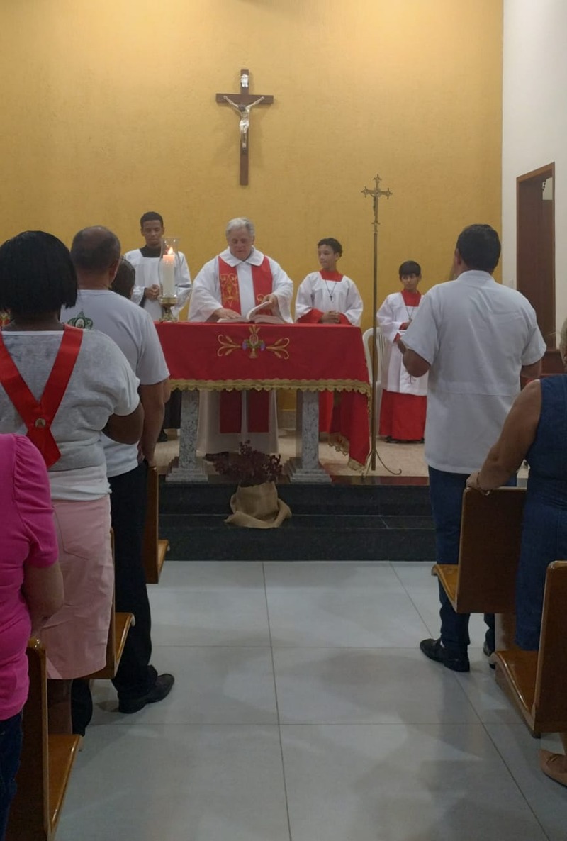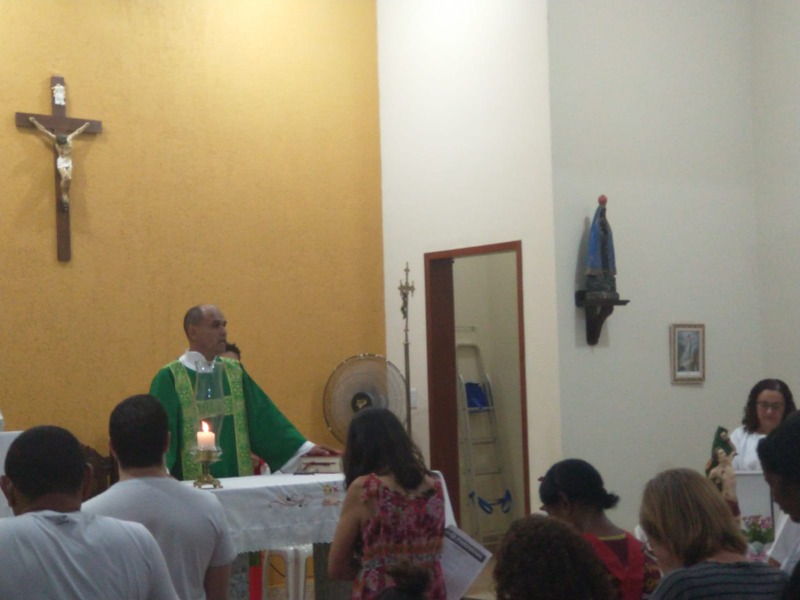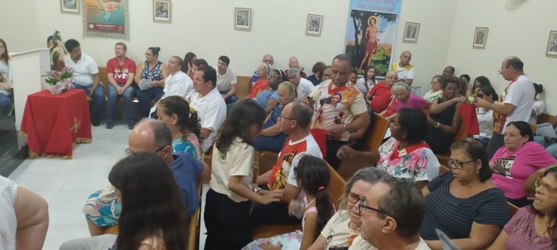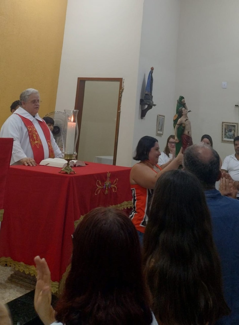 A comunidade São Sebastião recebeu devotos de várias Comunidades neste período de festa. Na homilia Padre Aloísio falou um pouco sobre a história de São Sebastião. Em sua reflexão e finalizando a pregação, nos disse que esse é o testemunho de vida que São Sebastião deixou para todos, “a fé é testada na provação, na dificuldade e na luta”.